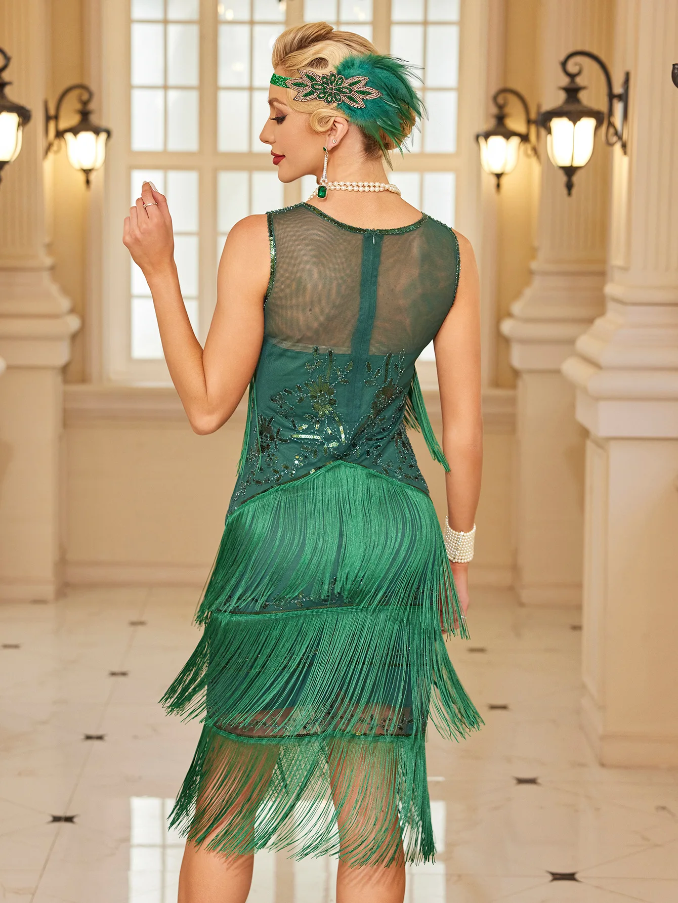 1pc Vintage 1920S Inspired Sleeveless Elegant Flapper Dress With Pringe Decor Lady Dress
