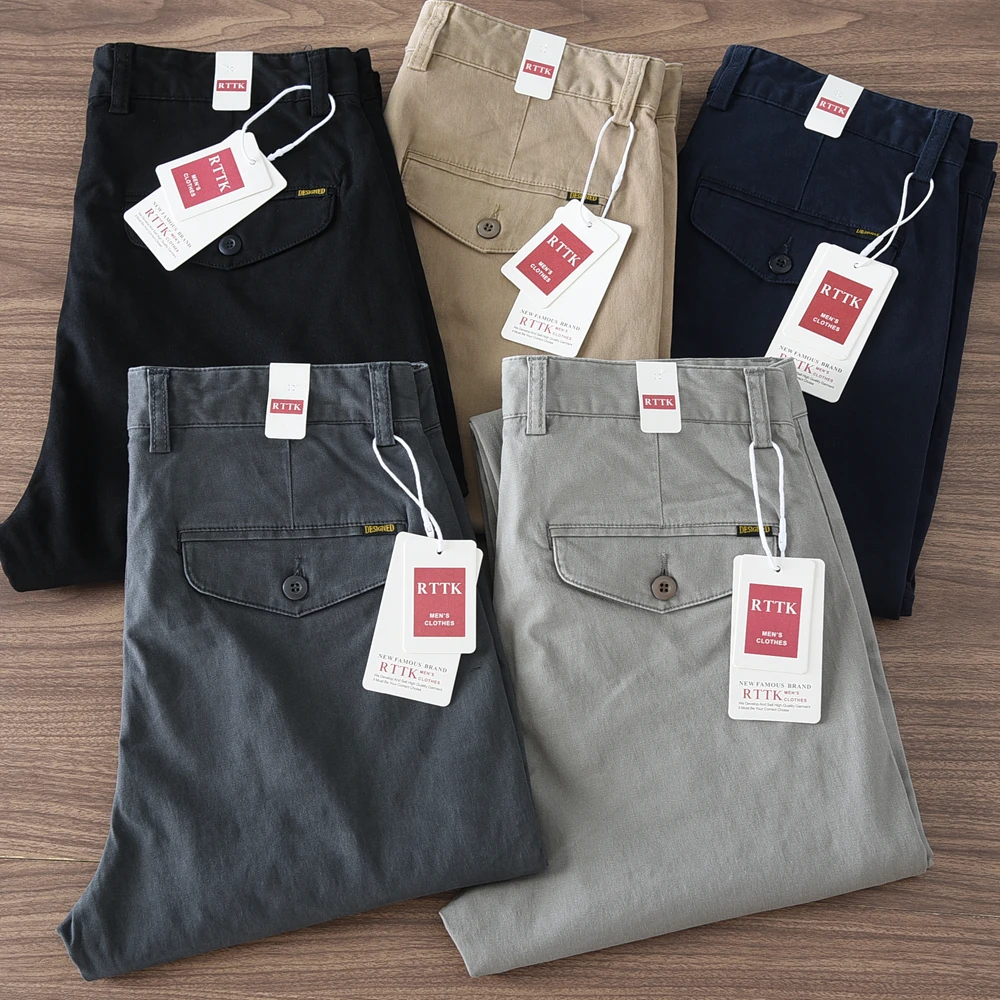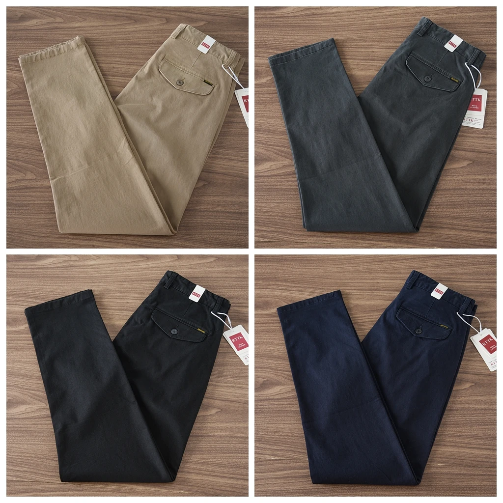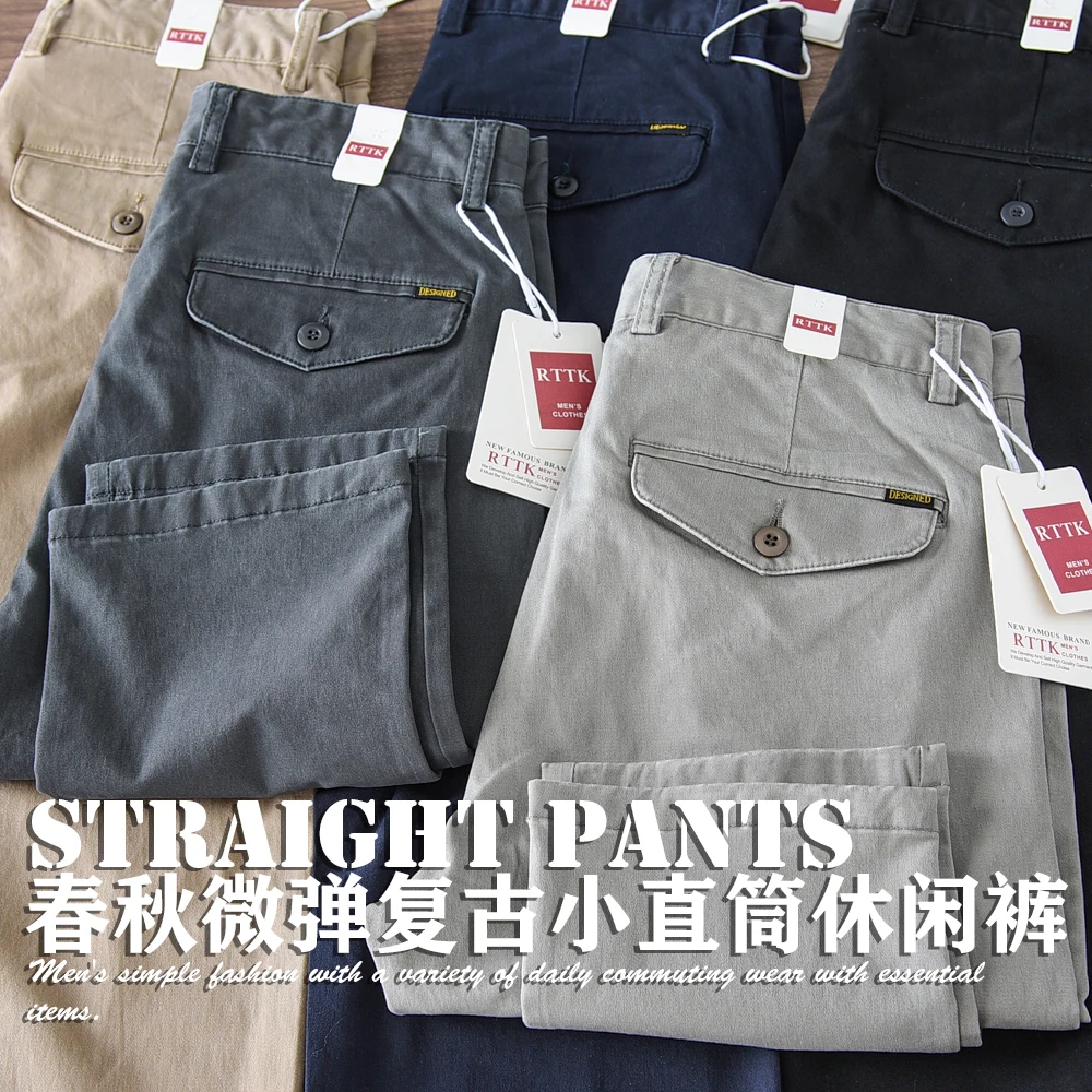2024 Spring and Autumn New American Retro Woven Twill Cargo Pants Men’s Simple 97% Cotton Washed Slim Straight Casual Trousers