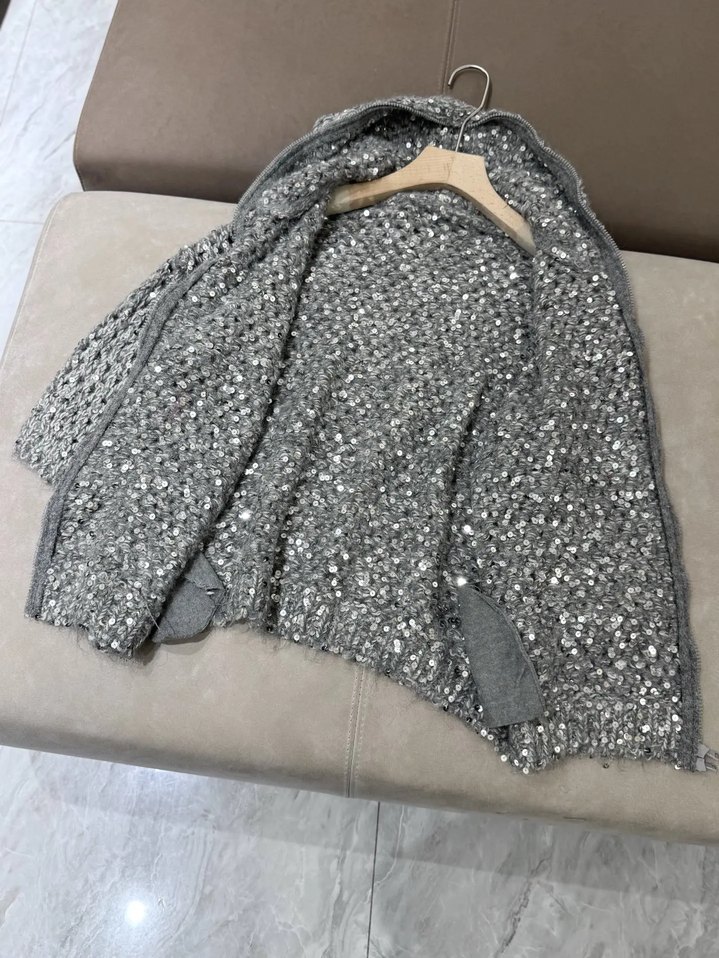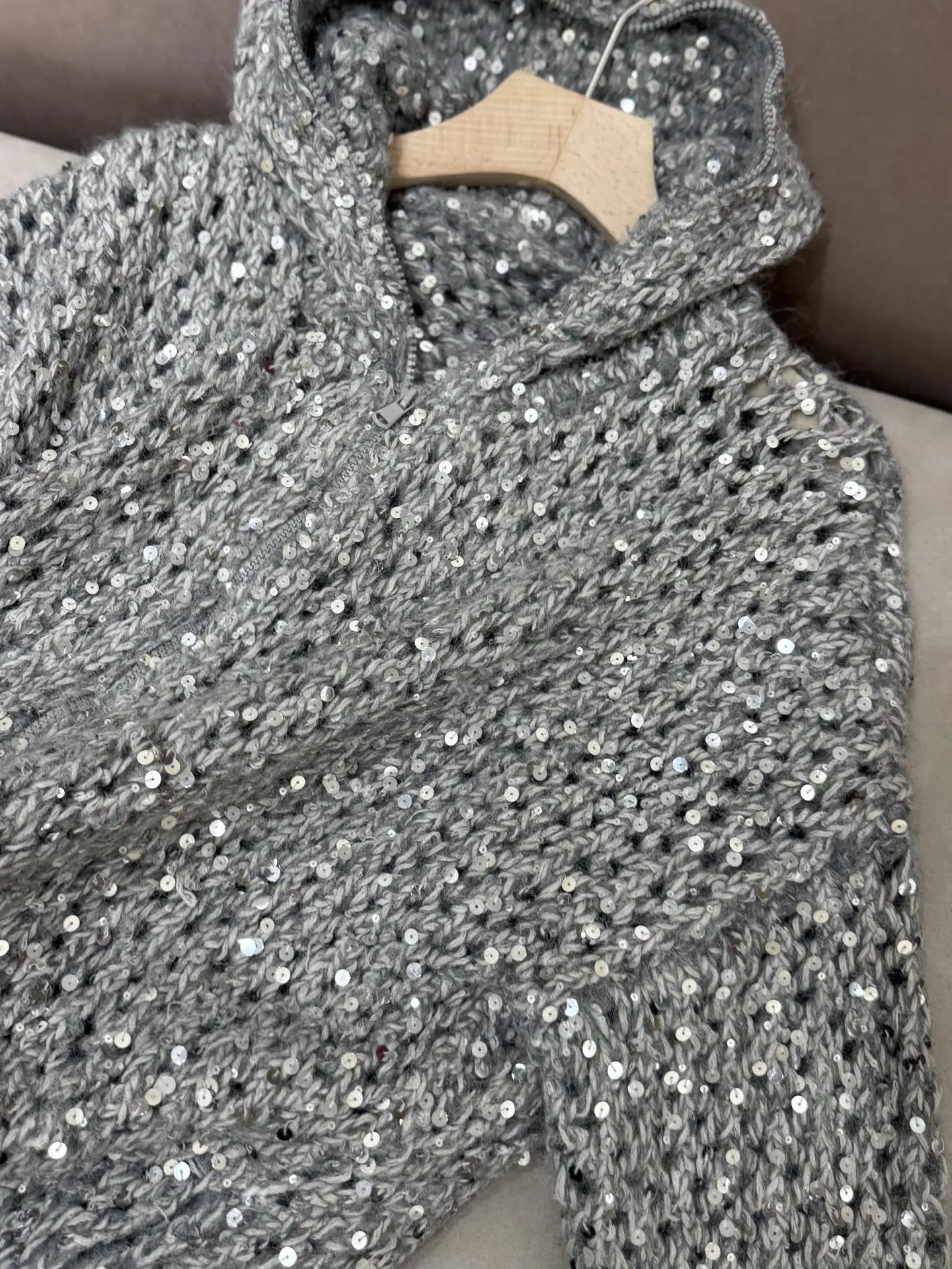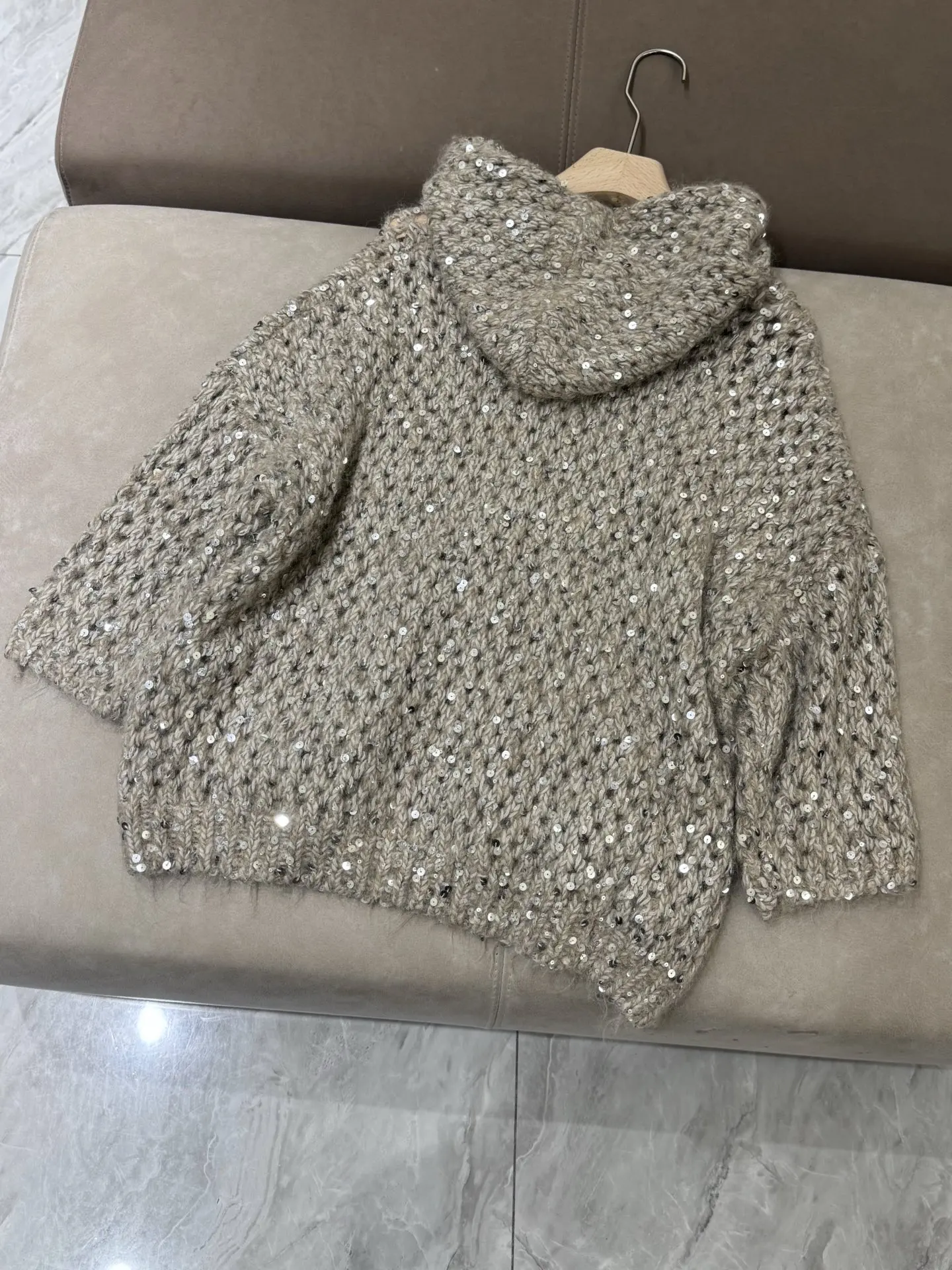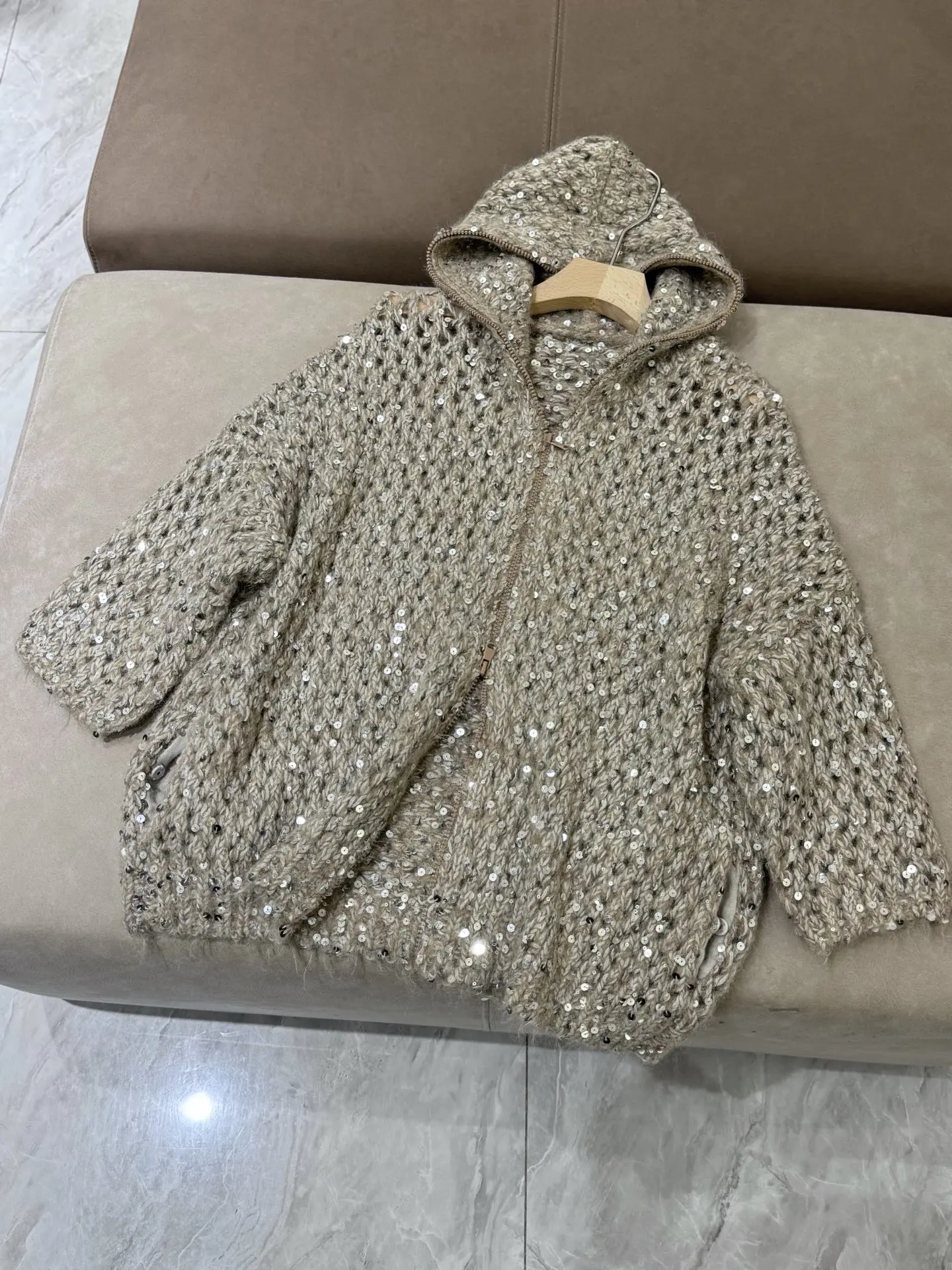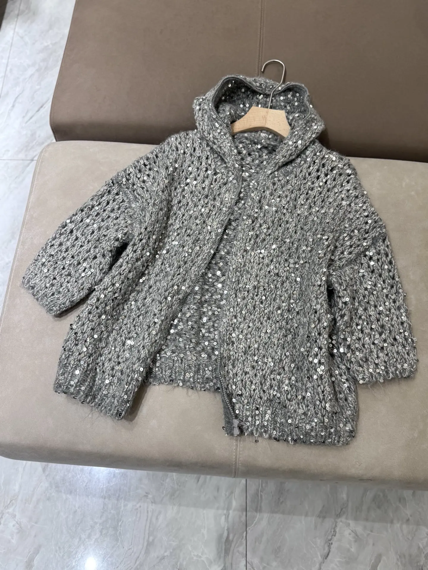 2025 Autumn And Winter New Wool Sequin Hooded Comfortable And Fashionable Cardigan Tops Jacket For Women