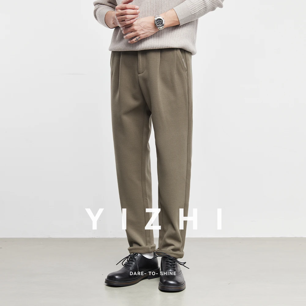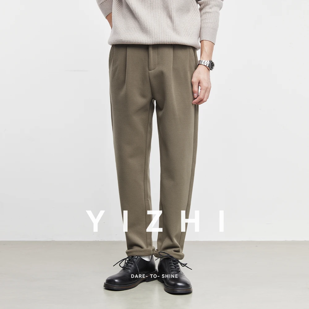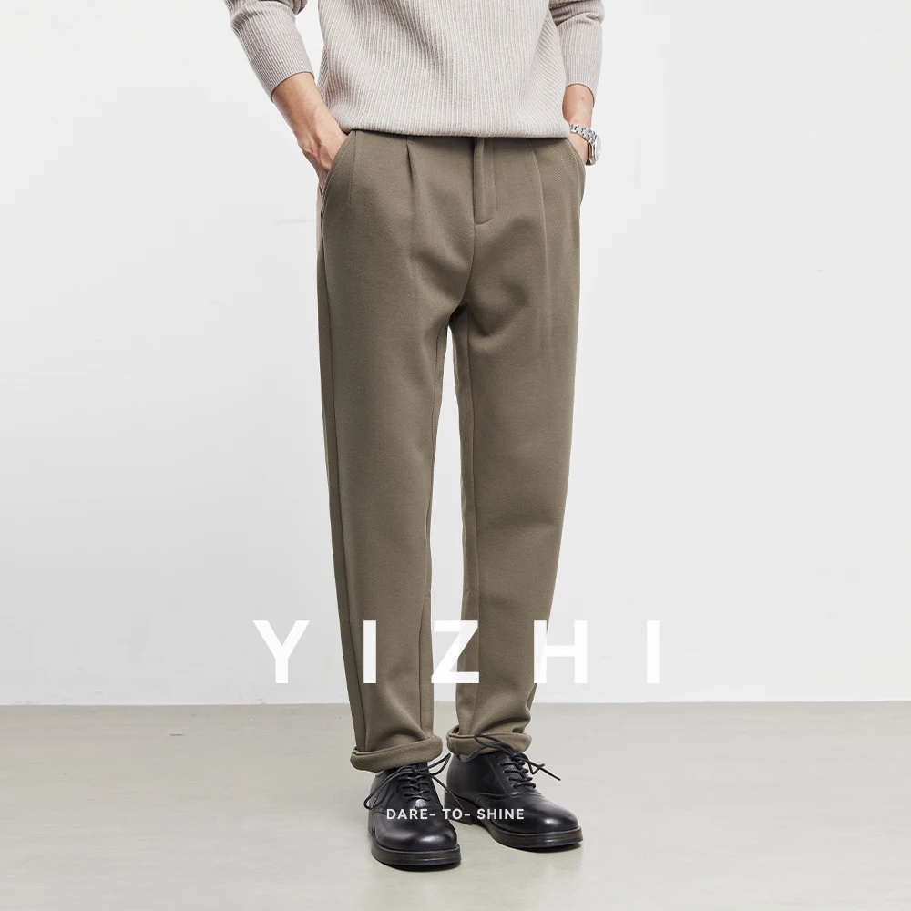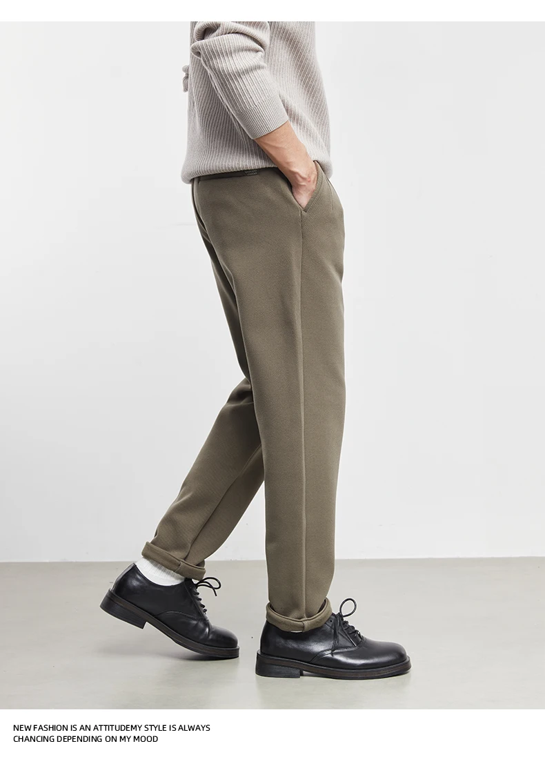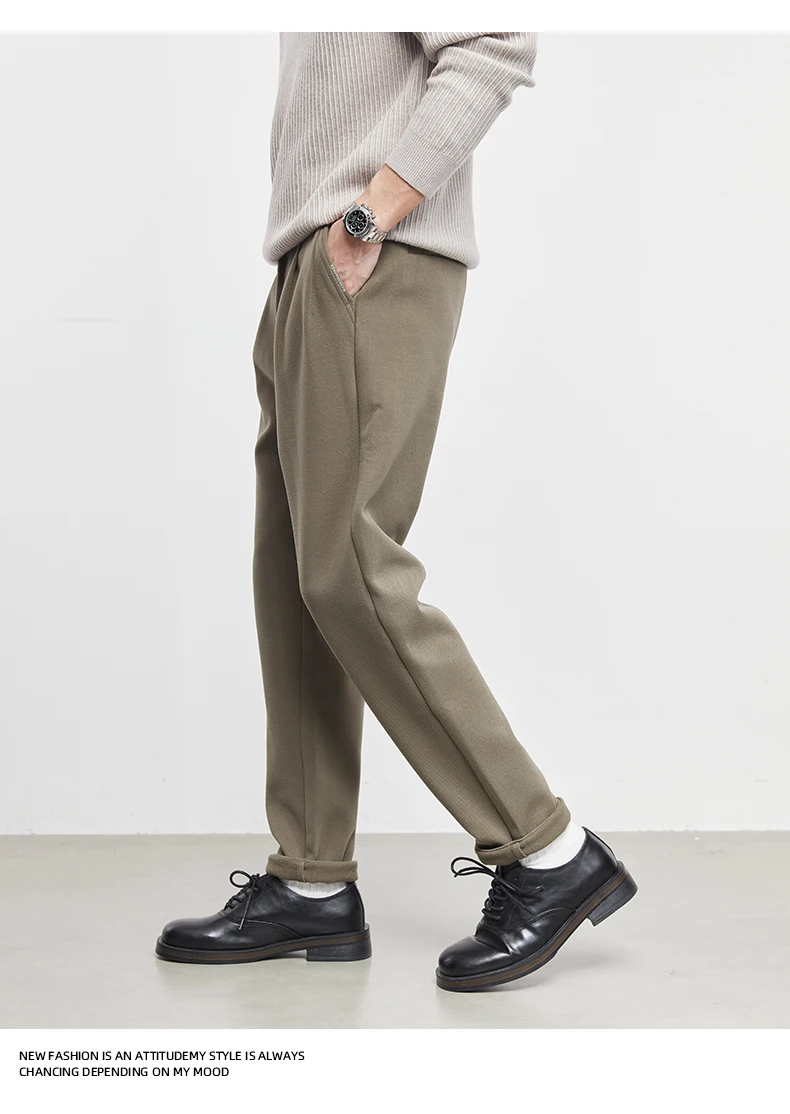 2025 Autumn Winter New Thickened Business Casual Pants Stylish Men’s Suit Pants Loose Straight-Leg Tapered Pants