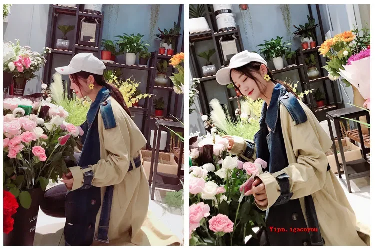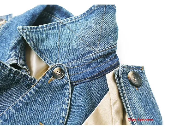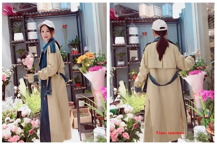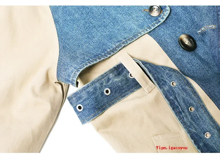 Be the first to review “2025 Spring Autumn Fashion Long Denim Splice Trench Coat Women Double Breasted High Quality Windbreaker Female Loose Outerwear” Cancel reply