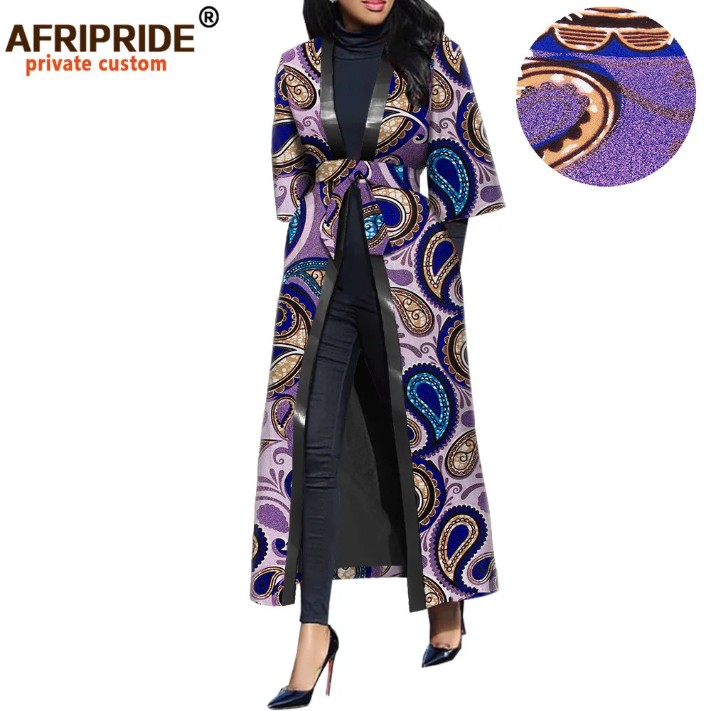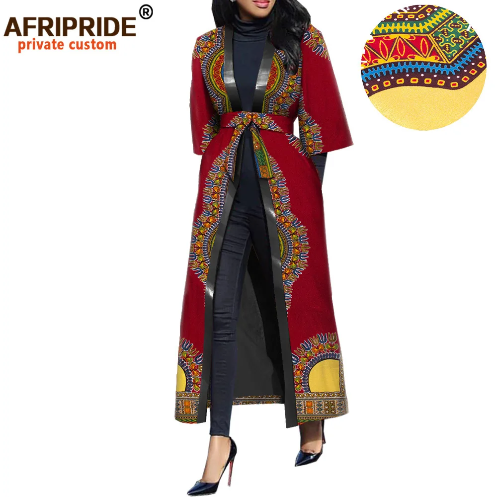 2025New Arrival African Wax Casual Coat for Women AFRIPRIDE Three Quarter Sleeve Ankle Length Women Coat with Sashes A1824009