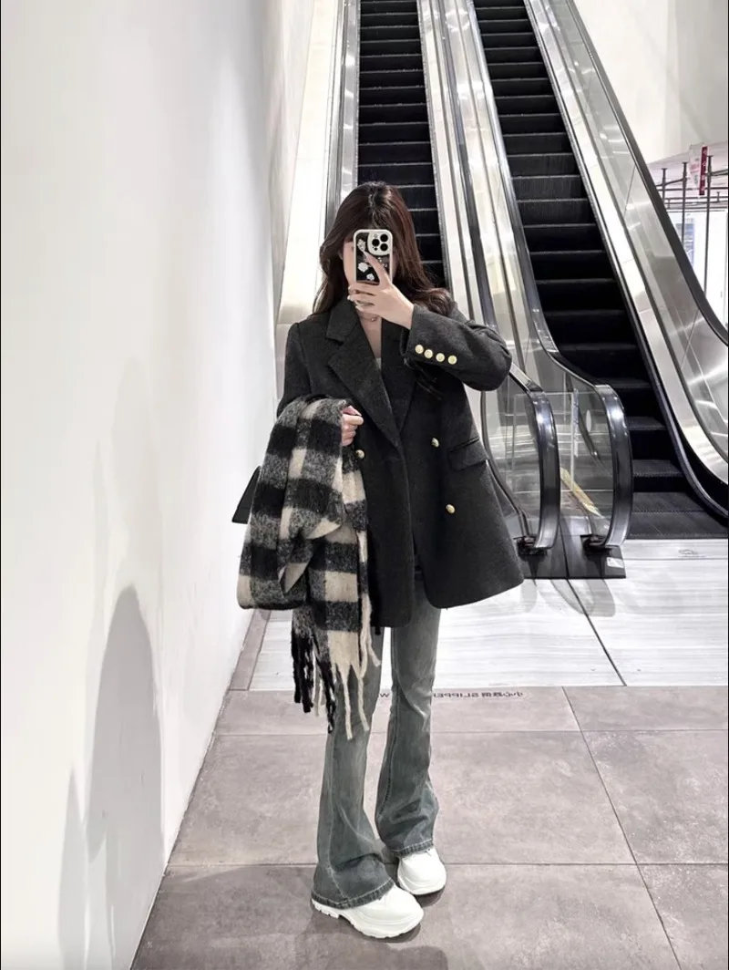 Be the first to review “2026 Korean Dark Grey Wool Suit Jacket Women Woolen Blazers Autumn Winter Vintage Double-breasted Casual Tops Lady Office Coats” Cancel reply