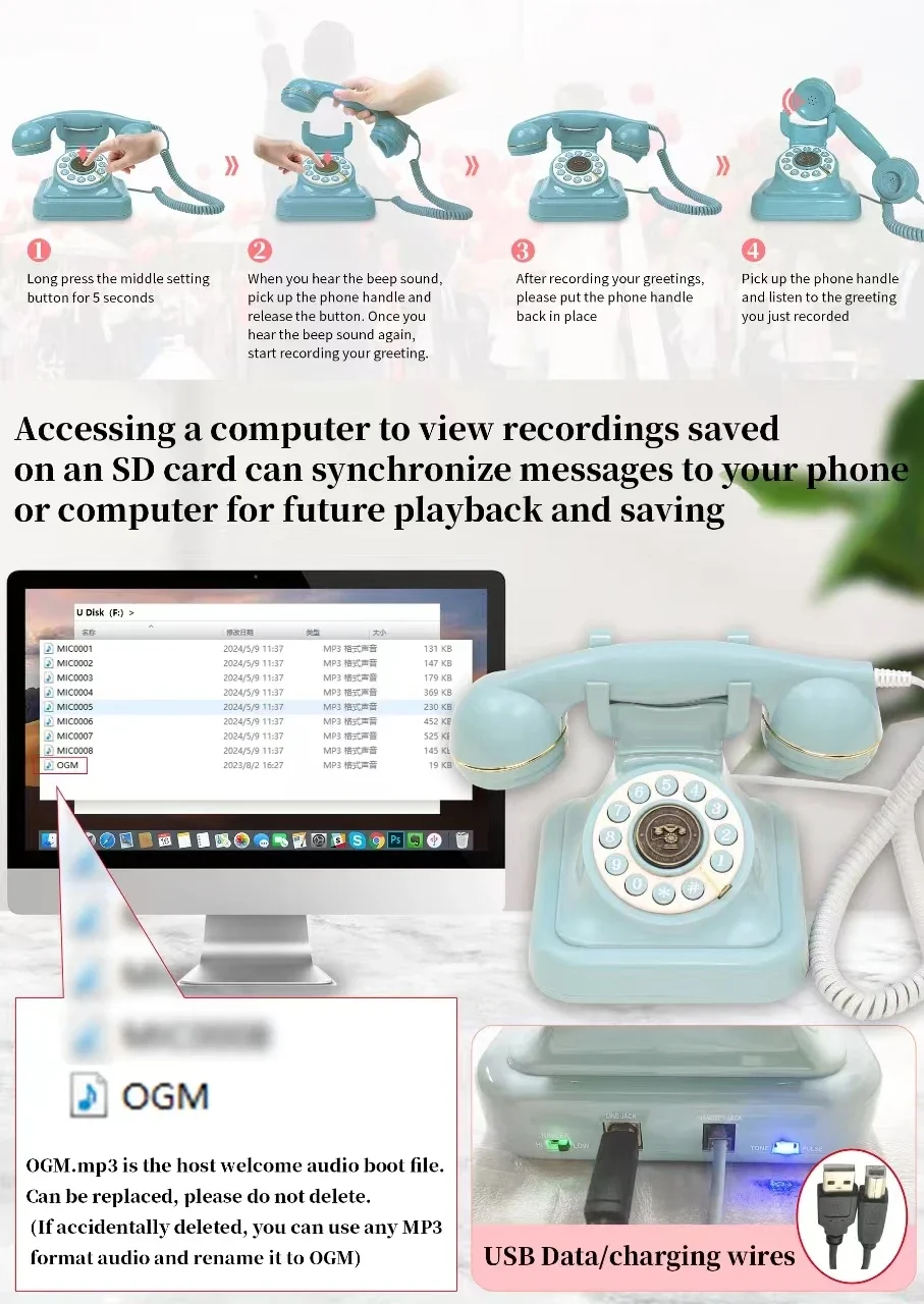 32GB memory retro style wedding party birthday wishes collection voice message phone guest recording guest phone