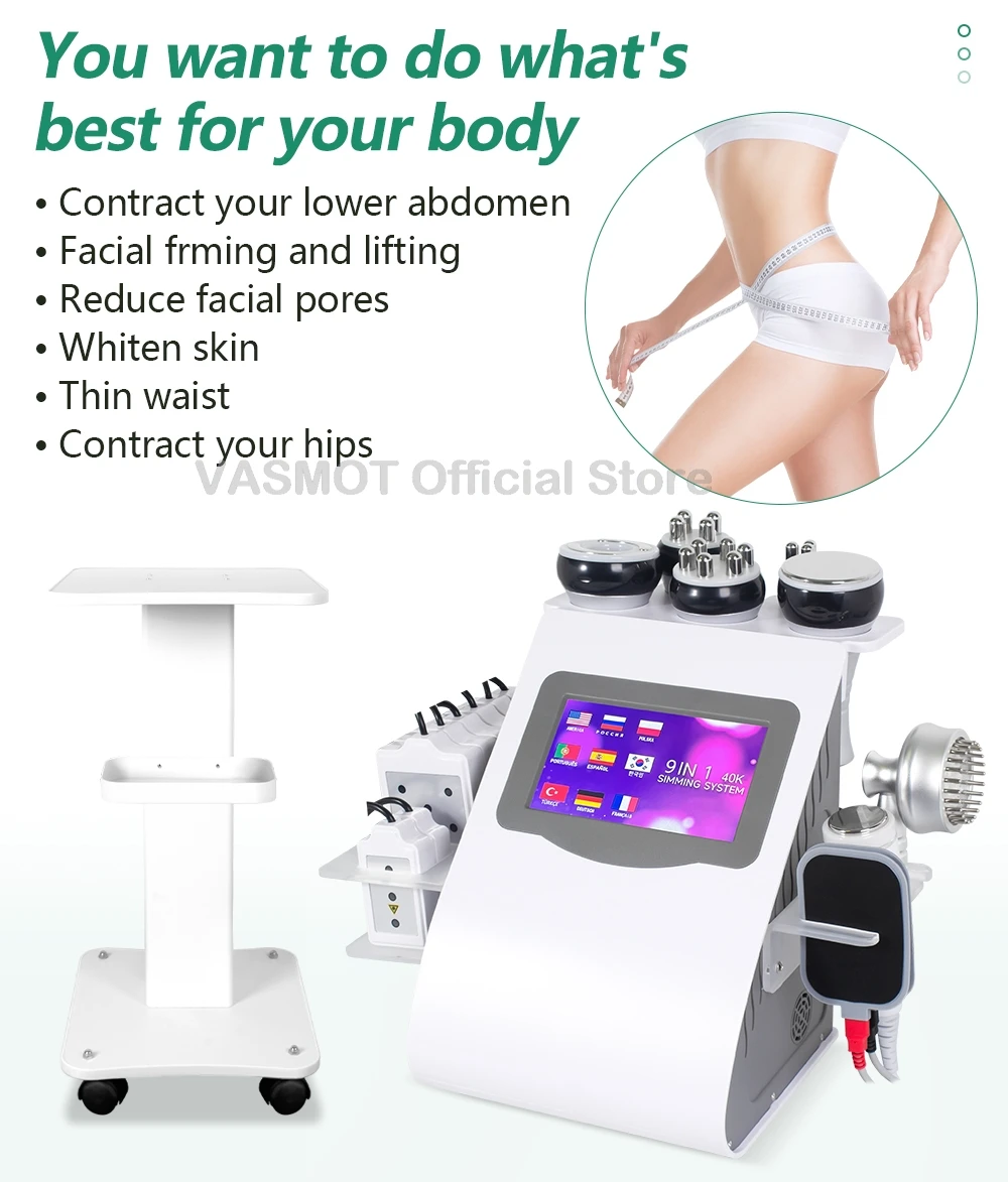 6/9IN1 Ultrasonic Cavitation Machine Vacuum Lifting Facial Anti-wrinkle Anti-cellulite Body Slimming Machine 40K Beauty Device
