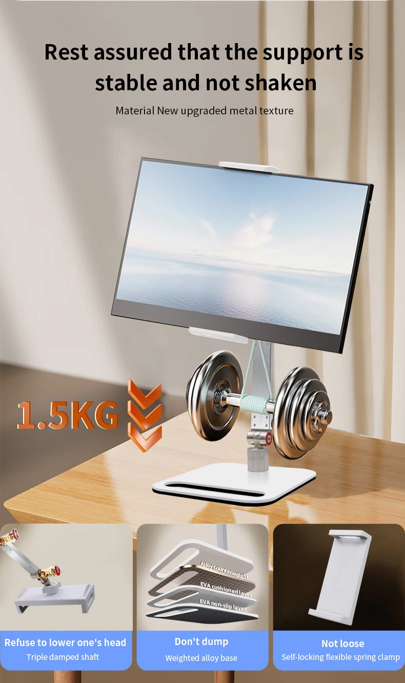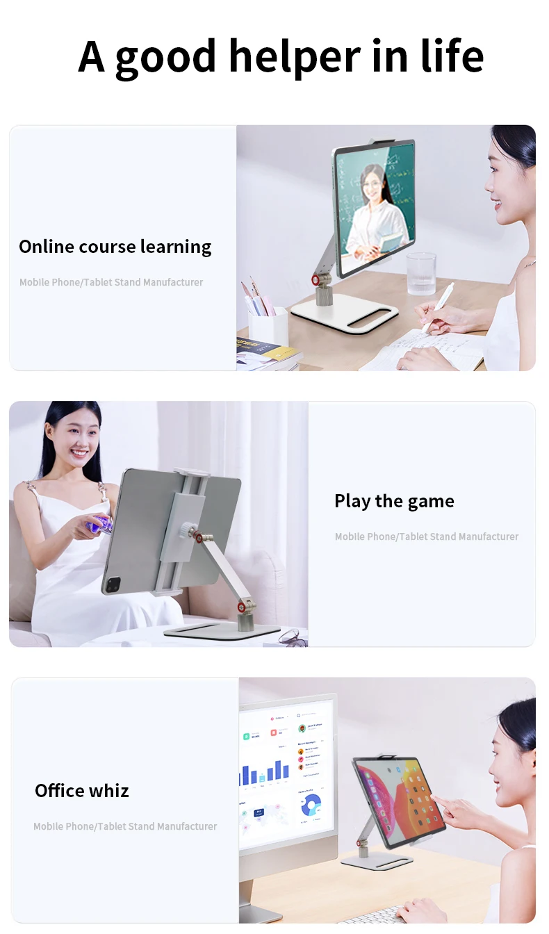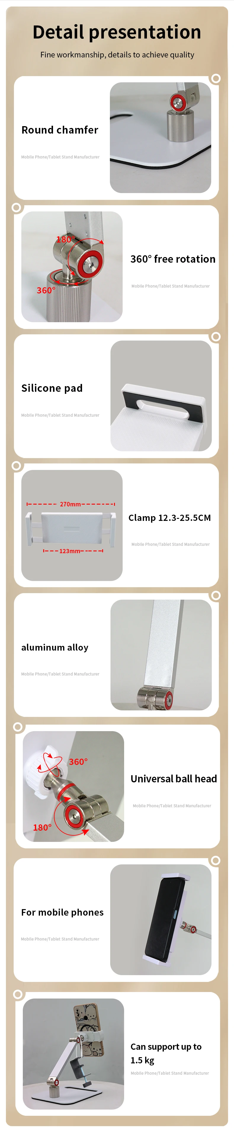 2025 New Simple Foldable Adjustable Rotating Phone & Tablet Stand Mobile & Desktop Video Hand Holders for Table Use Wide compatibility Our mount is compatible with all 4-13 inch electronic devices, including mainstream mobile devices such as smartphones and tablets. The clamp can be extended from 14-25cm to accommodate devices of various sizes. (With a sturdy metal structure and reasonable center of gravity design, even heavier devices with cases can be placed stably without the need for additional weight to ensure stability during use.) Free Your Hands Whether you’re working at a desk, relaxing at home, or engaging in video interactions, our adjustable desktop stand frees your hands, helping you find the perfect viewing angle to enjoy movies, live streams, TikTok, vlogs, or support your device while studying or working to access information, eliminating hand fatigue with every use. Easy to install & excellent customer service No tools required—the stand features a foldable design, ready to use upon unfolding. When folded, it has a compact size (package dimensions: 20x16x6 cm), making it easy to carry and space-saving. For any defects, including structural loosening, damaged or missing parts, or even if you simply don’t like it, please contact the seller directly: Dongguan Boxiang Electronic Technology Co., Ltd. We offer a 13-month warranty, 100% refund or replacement for quality issues, and dedicated 1-on-1 customer service to resolve issues quickly and effectively. We also provide and customization services. Durable high-quality materials Combining high-quality metal with ABS material ensures a longer service life, excellent durability, and a stable structure that does not wobble. (The metal stand, paired with a scientifically designed structure, offers superior load-bearing performance, ensuring safe placement of devices and meeting practical and durable usage requirements.) Flexible desktop stand The stand supports 360-degree rotation and 150-degree angle adjustment, allowing you to easily change any viewing angle; the multi-directional rotation design provides the stand with higher flexibility, meeting the needs of different usage scenarios. Whether it’s vertical placement, horizontal placement, or dual-screen interaction, it can be easily adapted, bringing you a more personalized usage experience.
