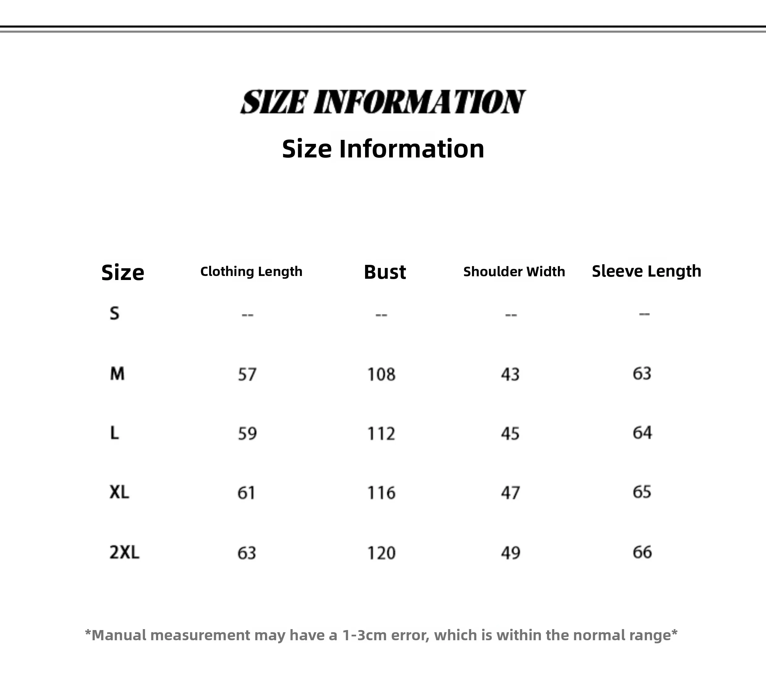 *Due to different measurement methods, there may be 1-3cm error in the size dataï¼›