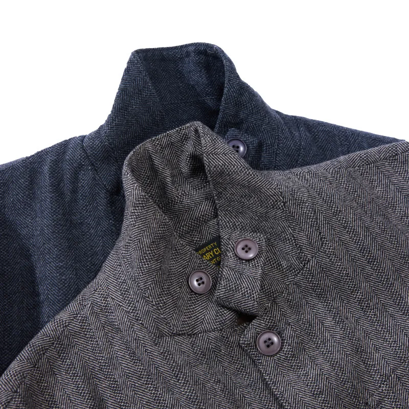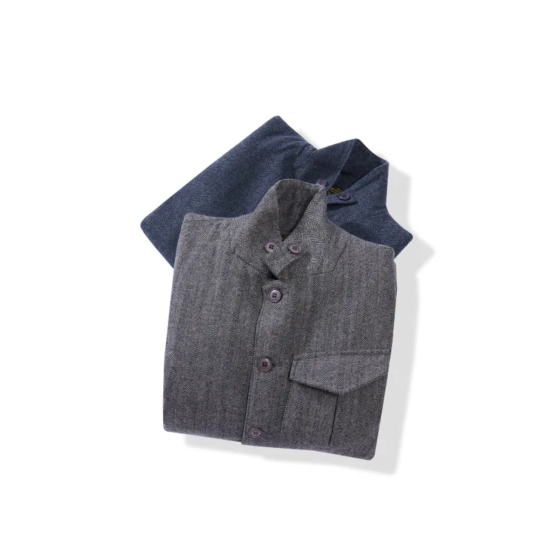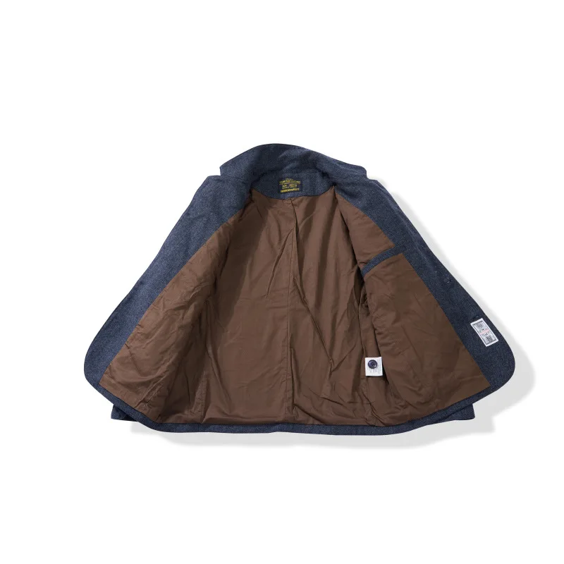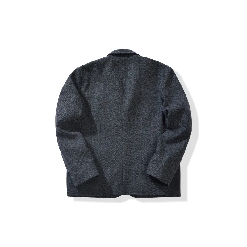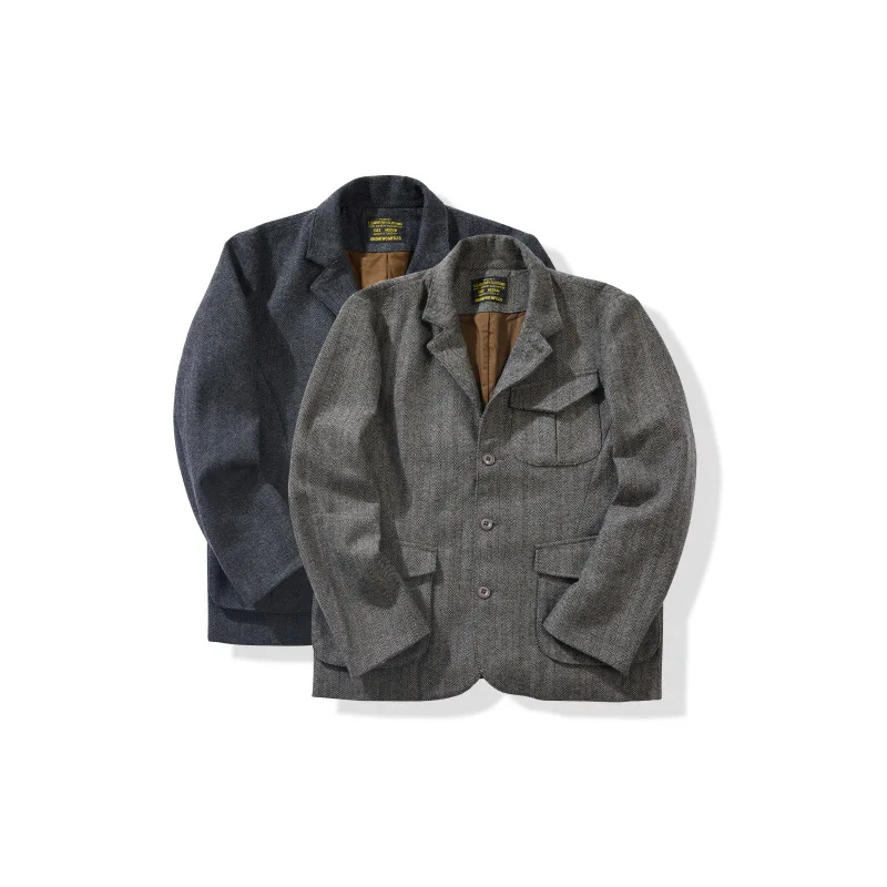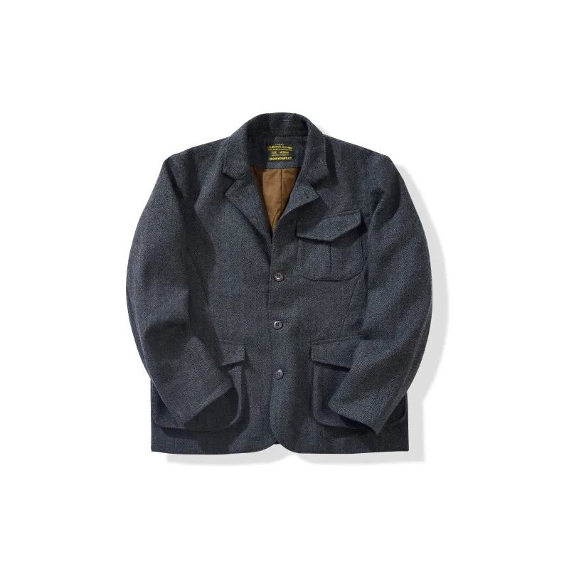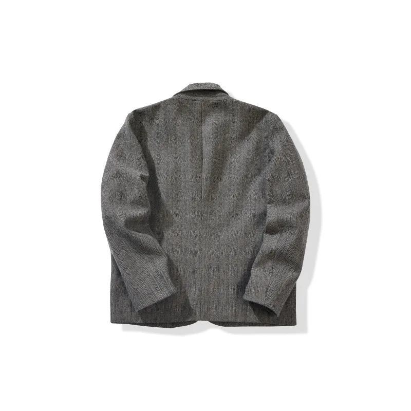 American Retro Herringbone Thick 50% Wool Jacket for Men Casual Blazer Single-Breasted Overcoat Stand Collar Heavyweight