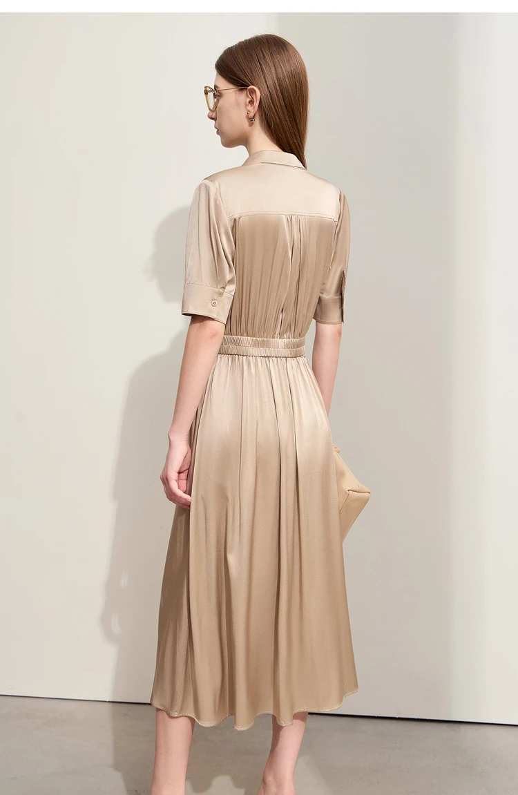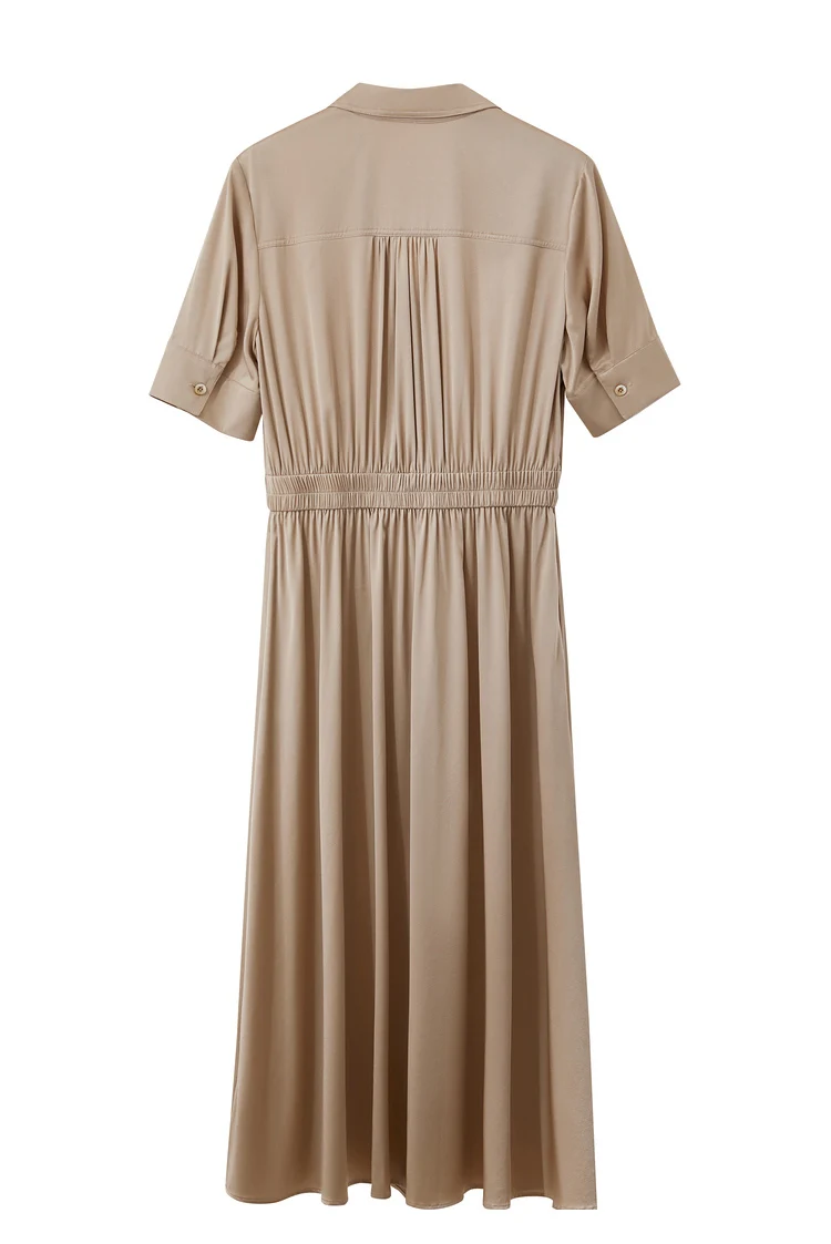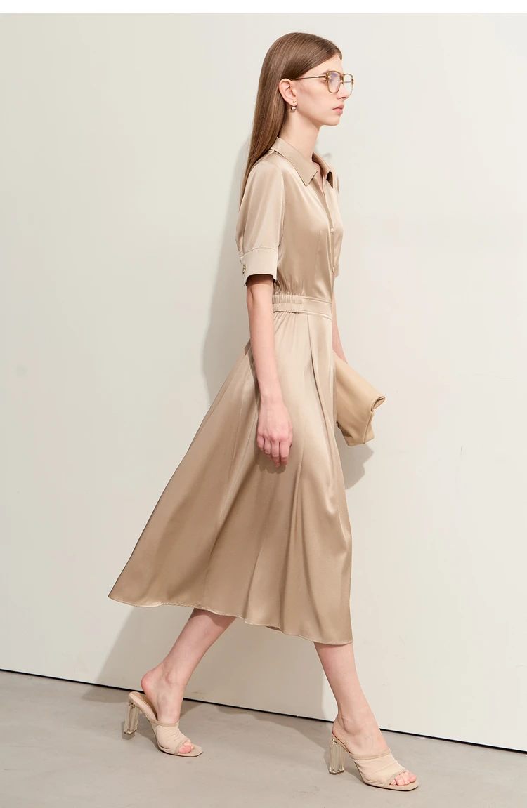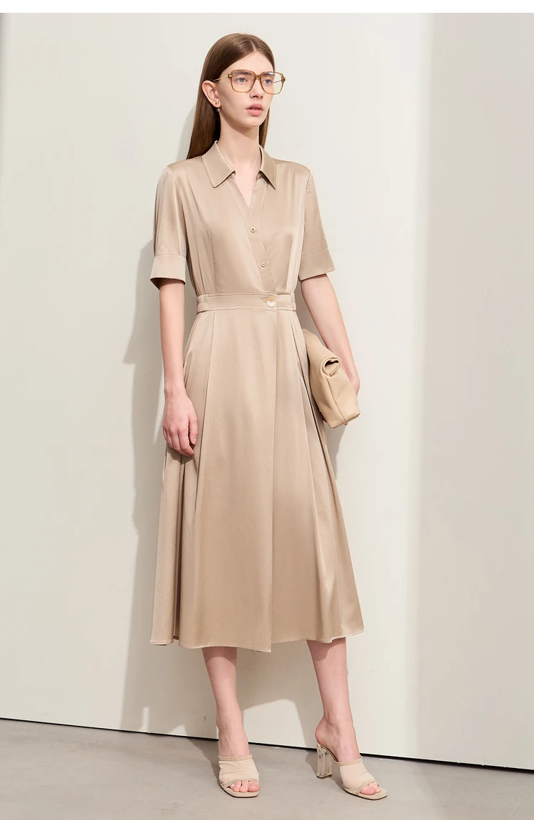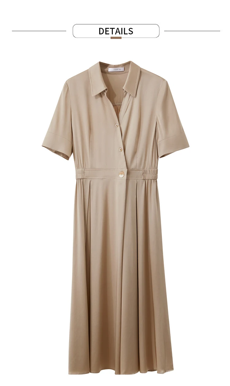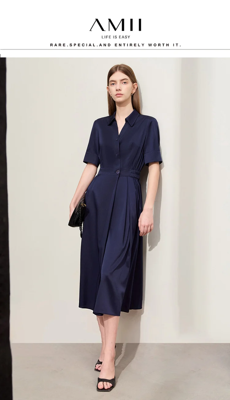 Amii Minimalism Silk Dress For Women 2025 Summer New Elegant Short Sleeve Woman Clothing Long A-Line Solid Dress Ladies 12422174