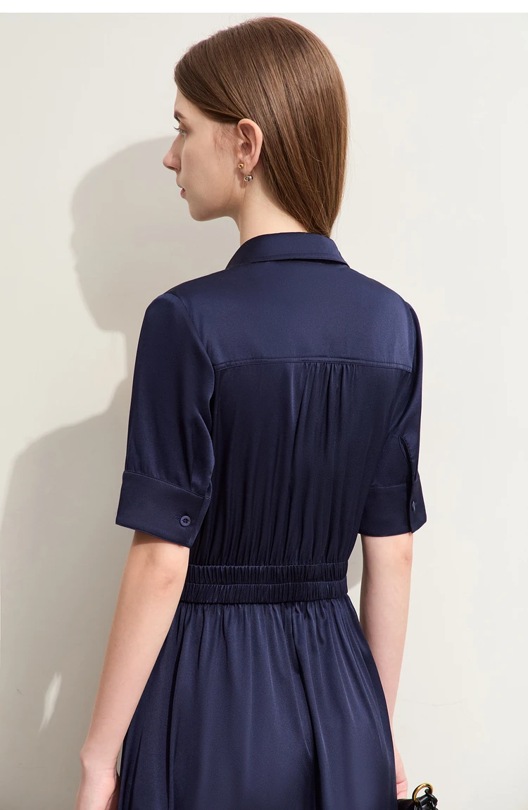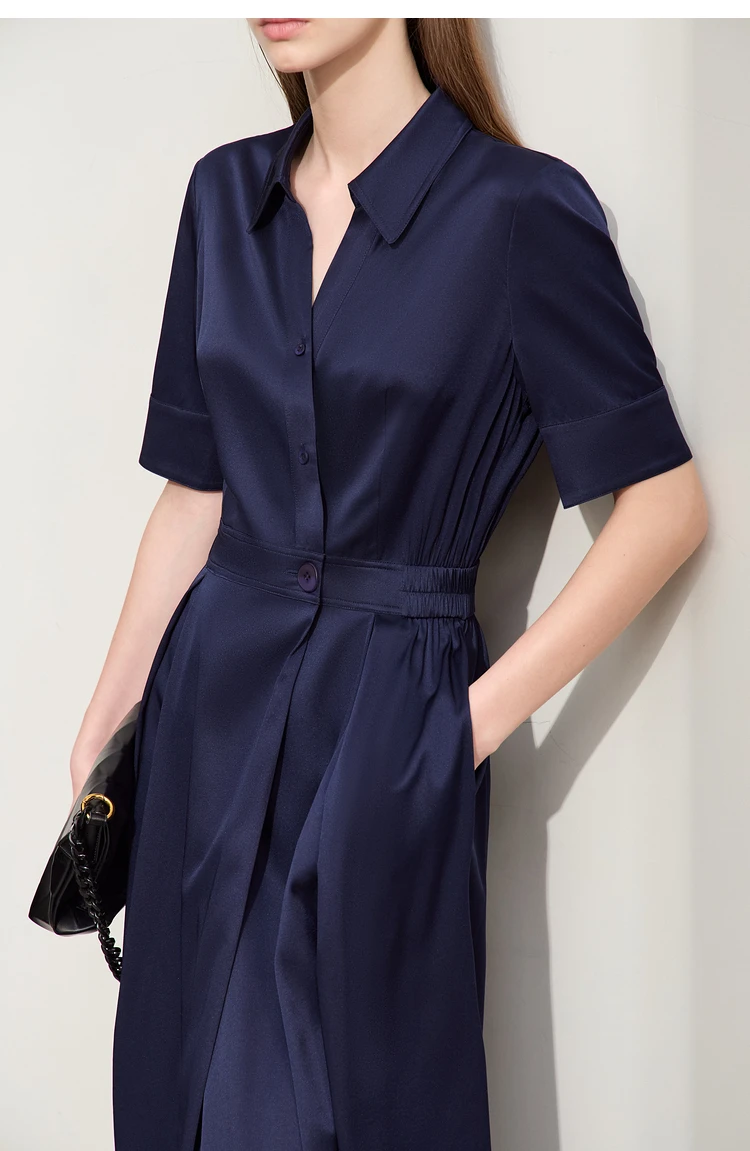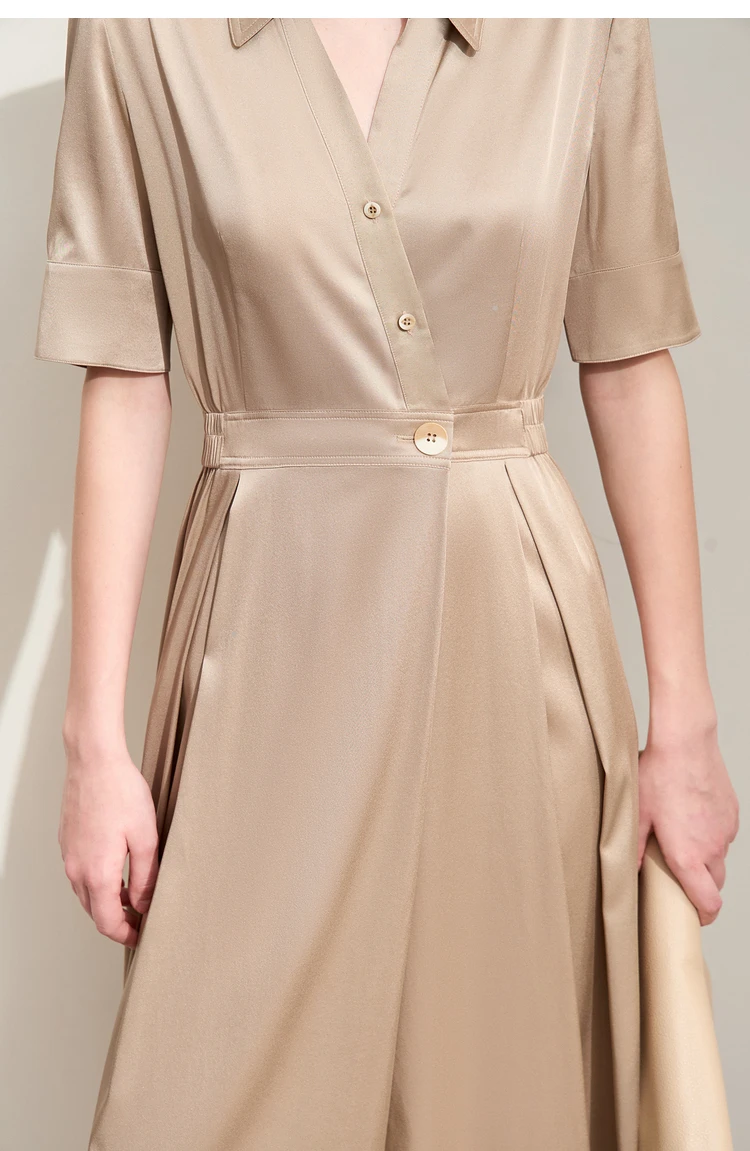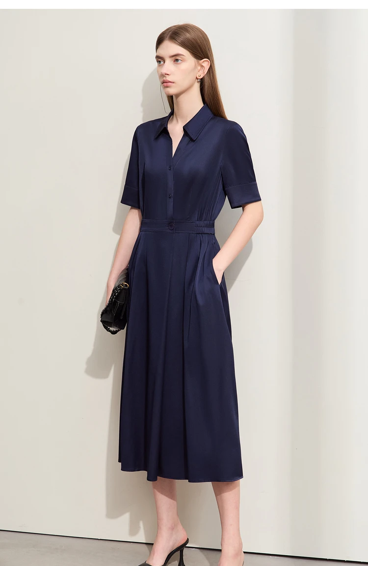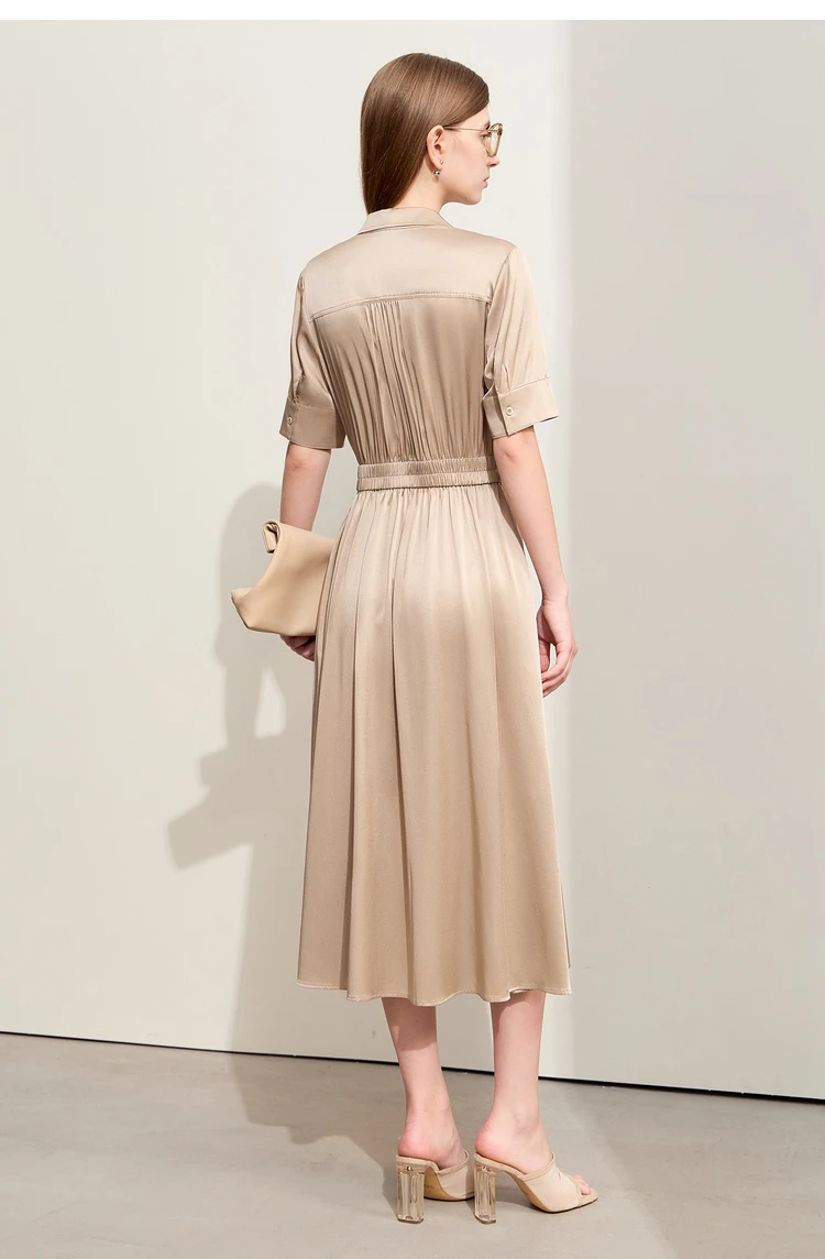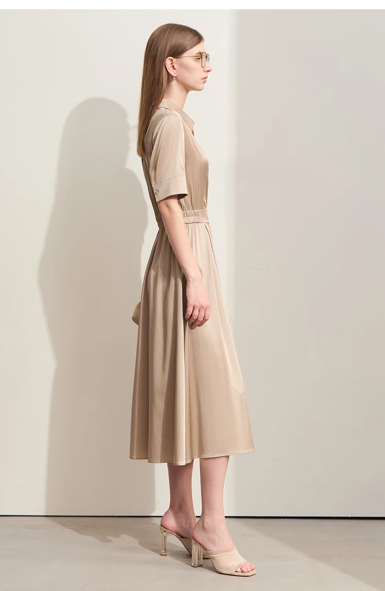 Amii Minimalism Silk Dress For Women 2025 Summer New Elegant Short Sleeve Woman Clothing Long A-Line Solid Dress Ladies 12422174
