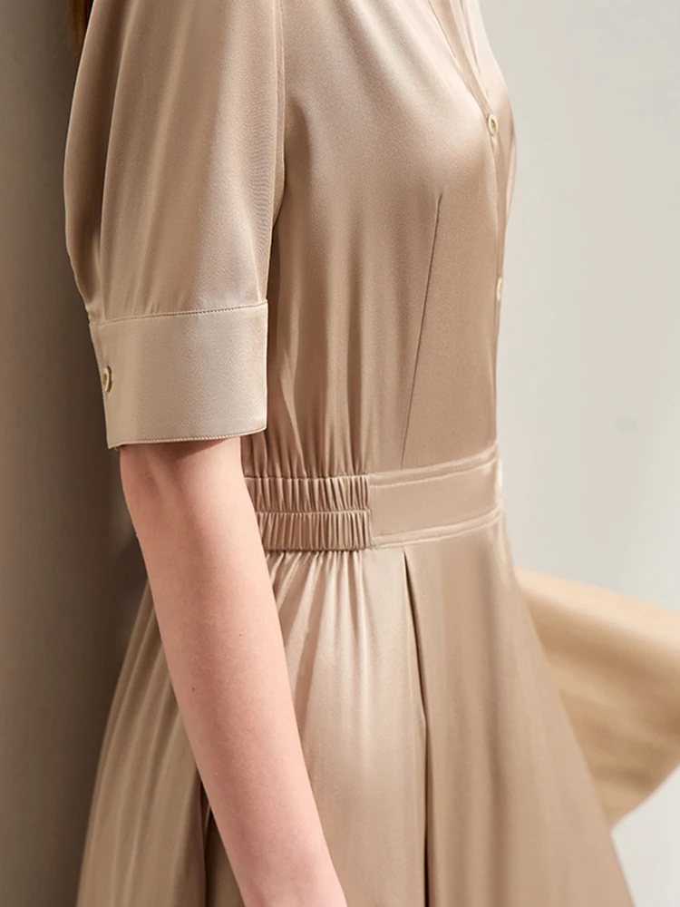 Amii Minimalism Silk Dress For Women 2025 Summer New Elegant Short Sleeve Woman Clothing Long A-Line Solid Dress Ladies 12422174