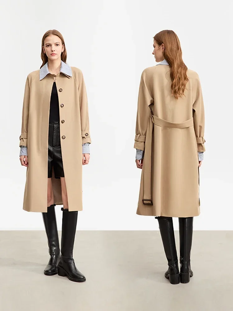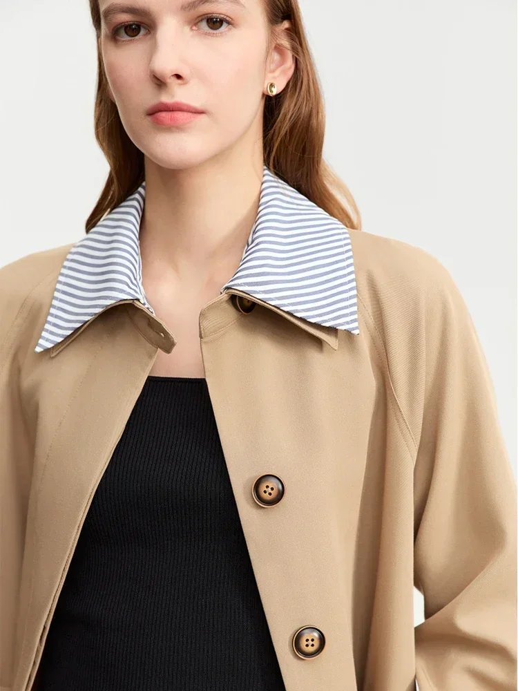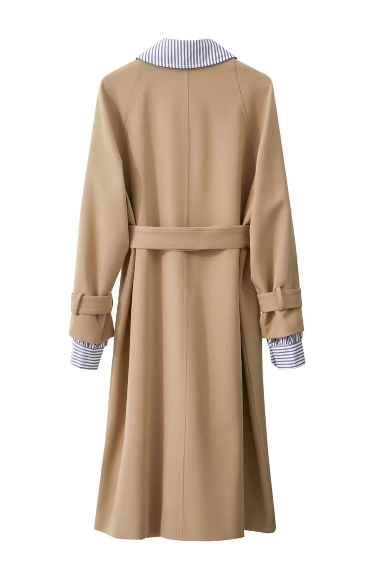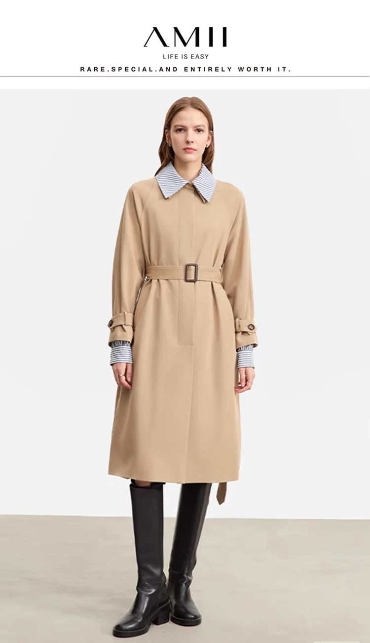 AMII Trench Coat For Women 2025 Autumn New Color Block Patchwork Striped Lapel Belt Fake Two Long Streetwear Outwear 72343009