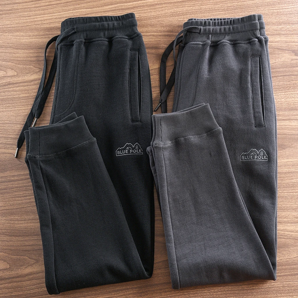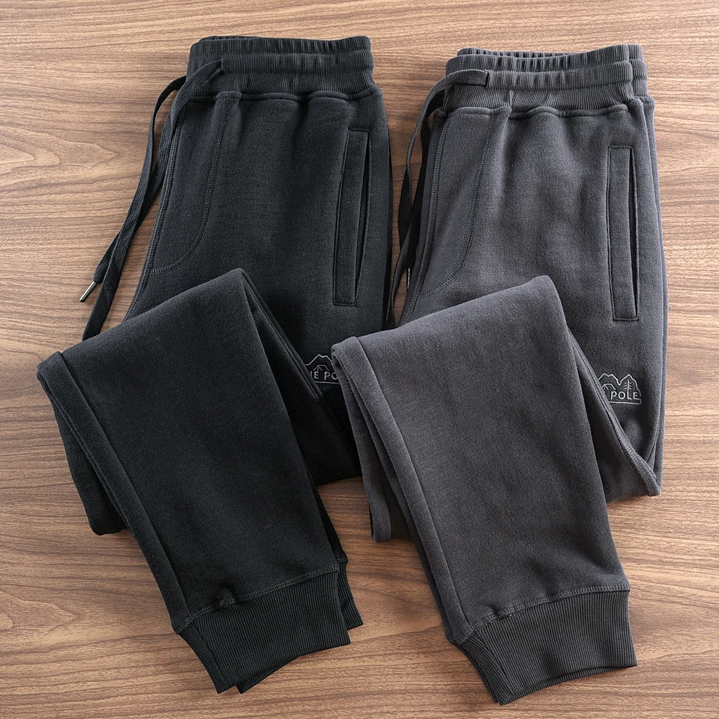 Autumn Winter New American Retro Thick Knitted Sweatpants Men’s Simple Elastic Waist Drawstring Sport Casual Ankle-tied Pants
