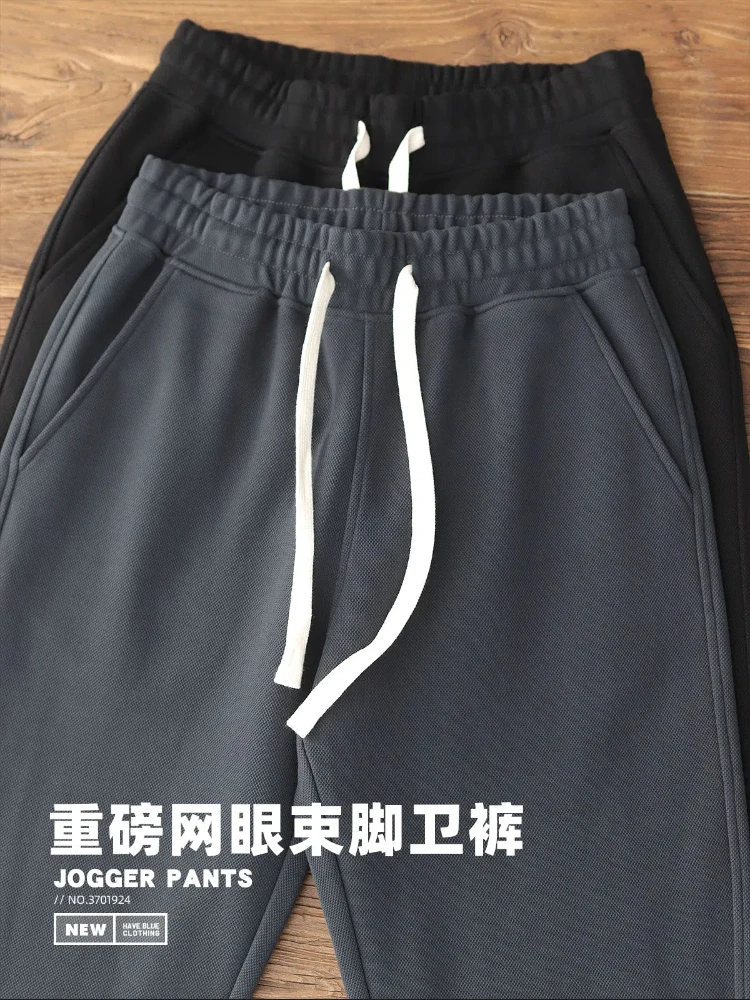Autumn Winter New American Retro Thick Knitted Sweatpants Men’s Simple Elastic Waist Drawstring Sport Casual Ankle-tied Pants