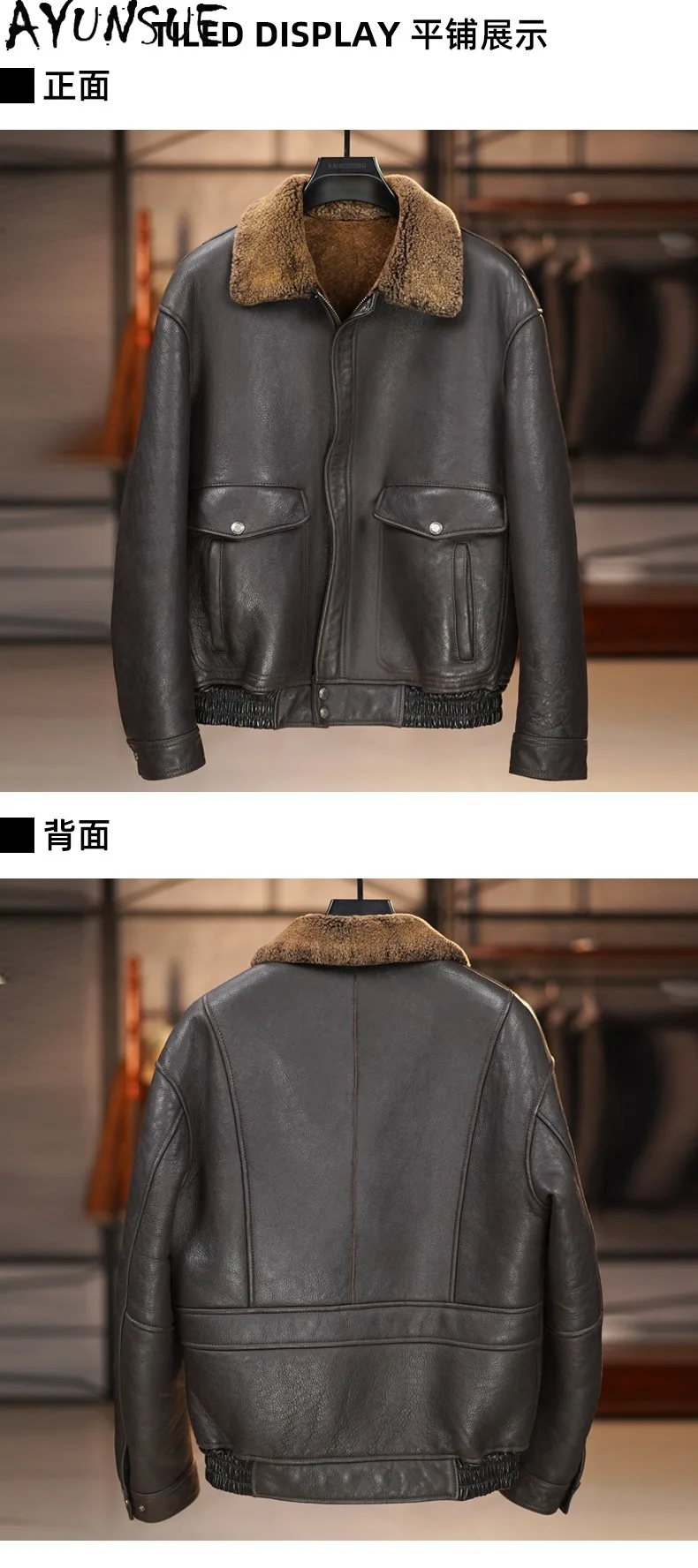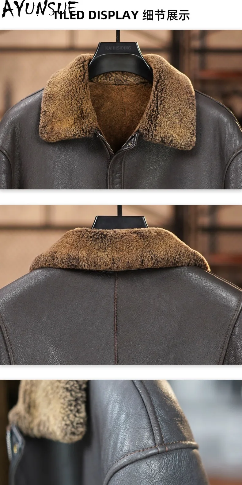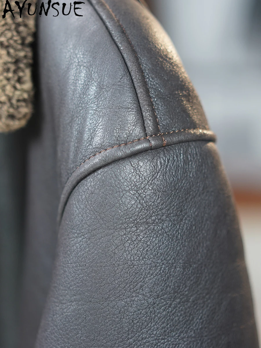 AYUNSUE 100% Genuine Sheepskin Leather Jacket Man Winter Casual Natural Fur Coat Men’s Clothes Warm Dark Brown Leather Fur Coats