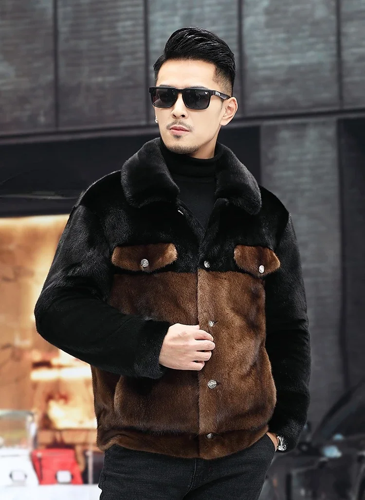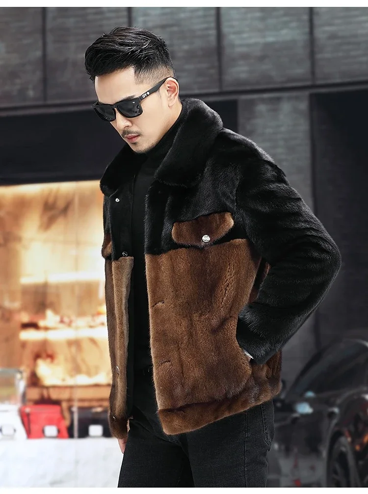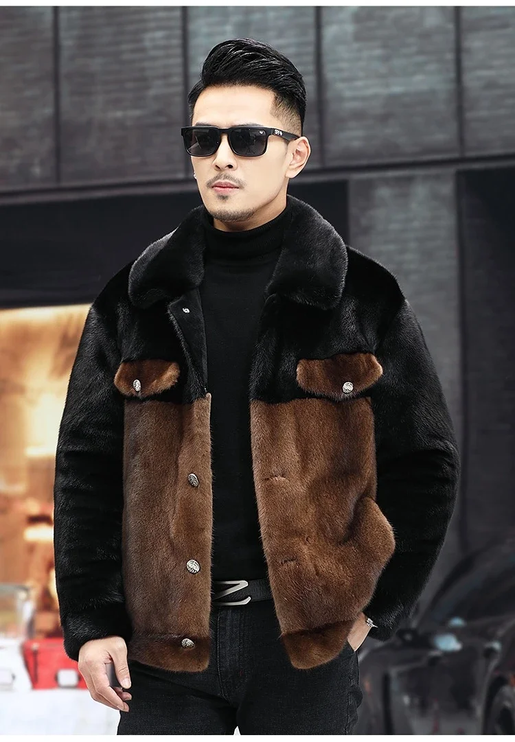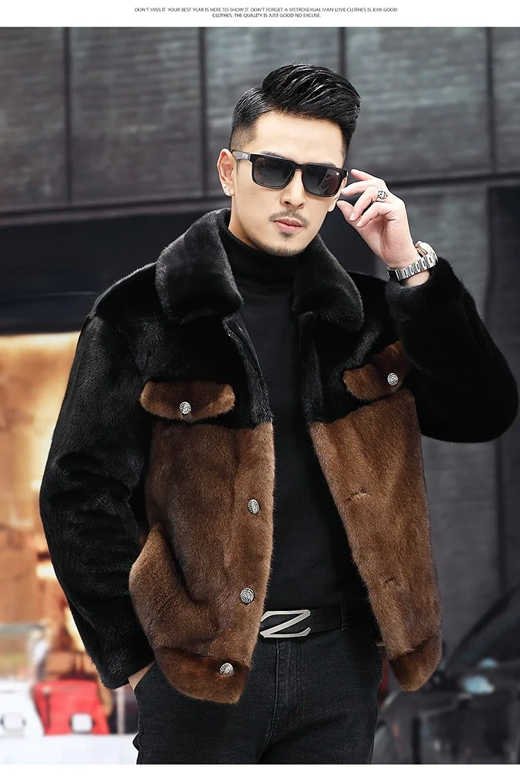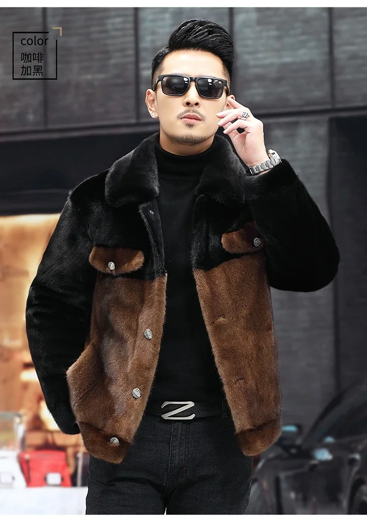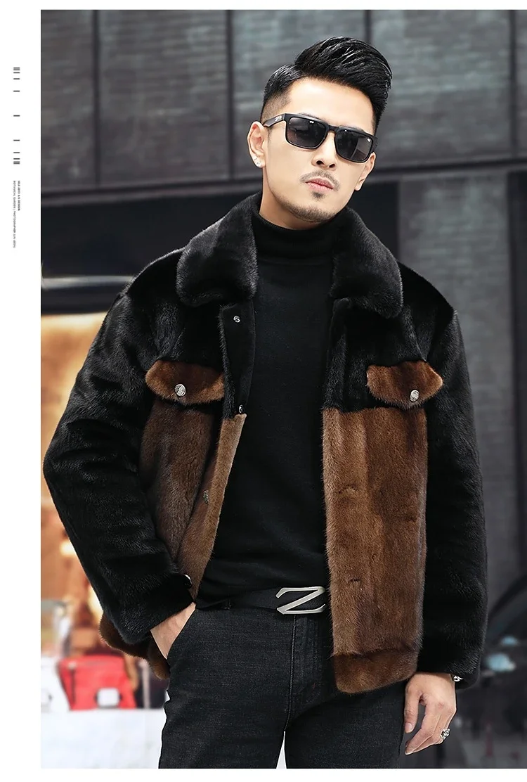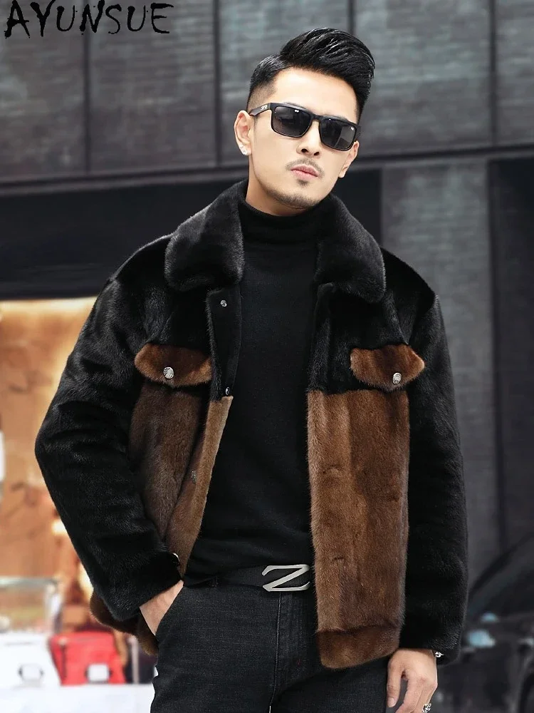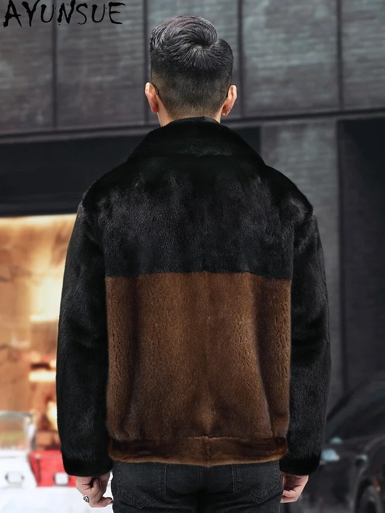 AYUNSUE Luxury Real Mink Fur Coat Men Winter Jacket 2025 Fashion Slim Mink Real Fur Coats and Jackets Fashion Casaco Masculino S