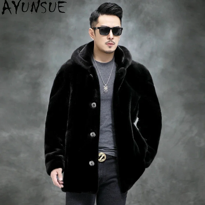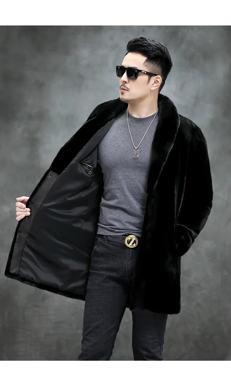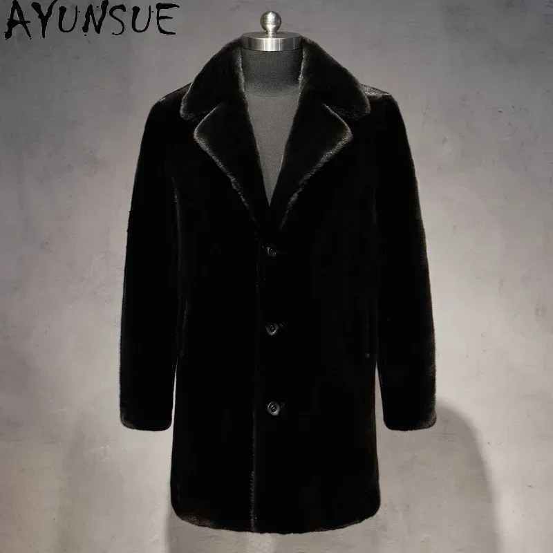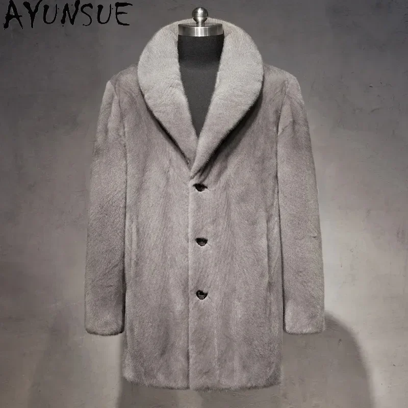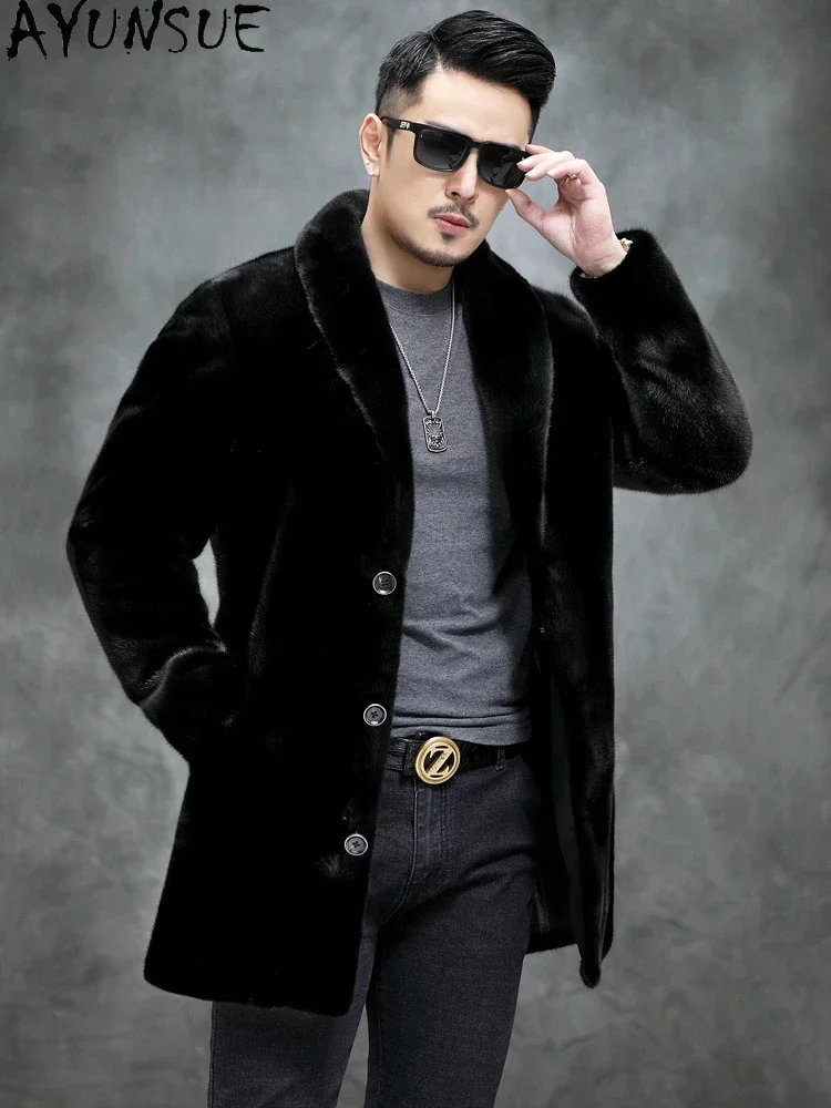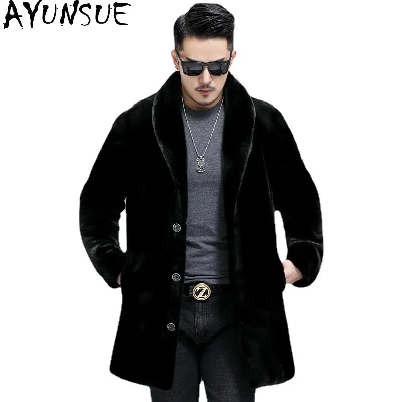 AYUNSUE Real Mink Fur Coat Mens Coats Winter Warm Parka Hombre Luxury Mid-length Mink Fur Jackets Men Manteau Homme Hiver SGG732