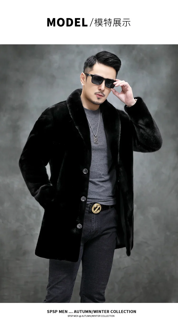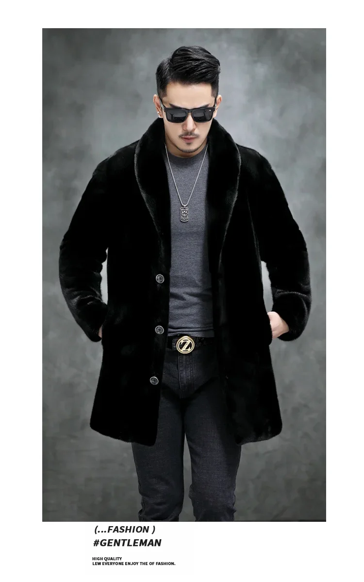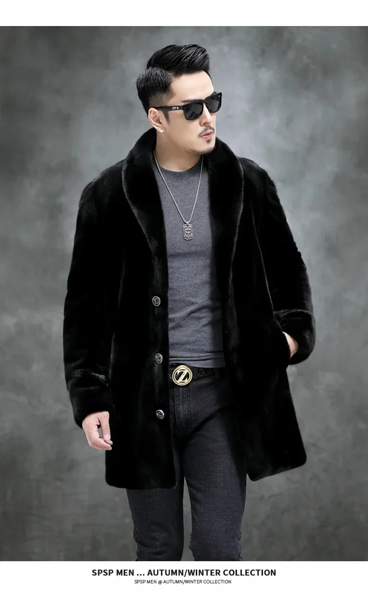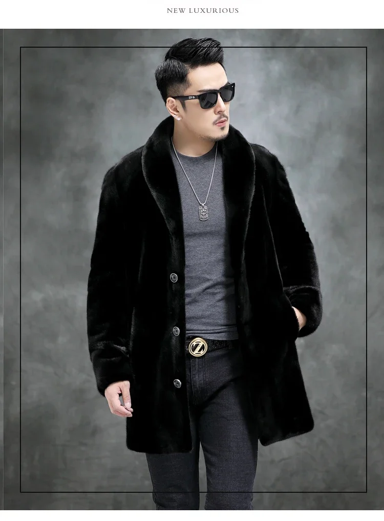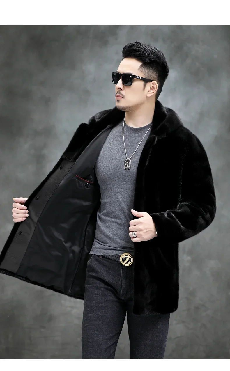 AYUNSUE Real Mink Fur Coat Mens Coats Winter Warm Parka Hombre Luxury Mid-length Mink Fur Jackets Men Manteau Homme Hiver SGG732
