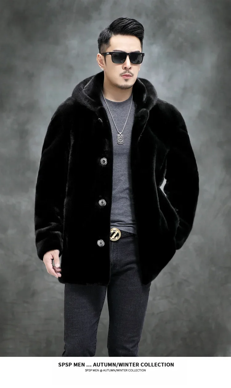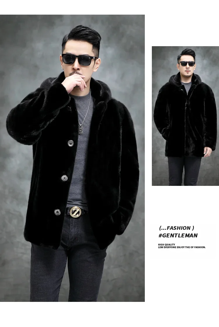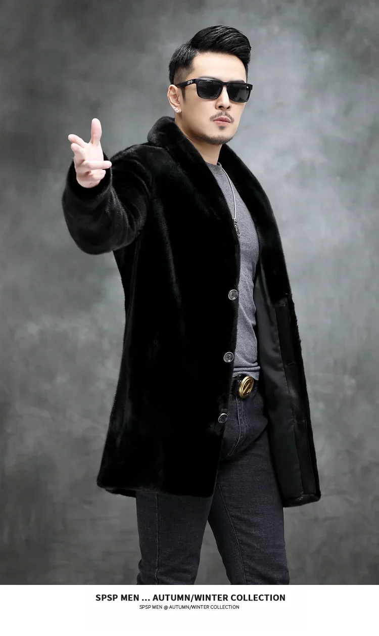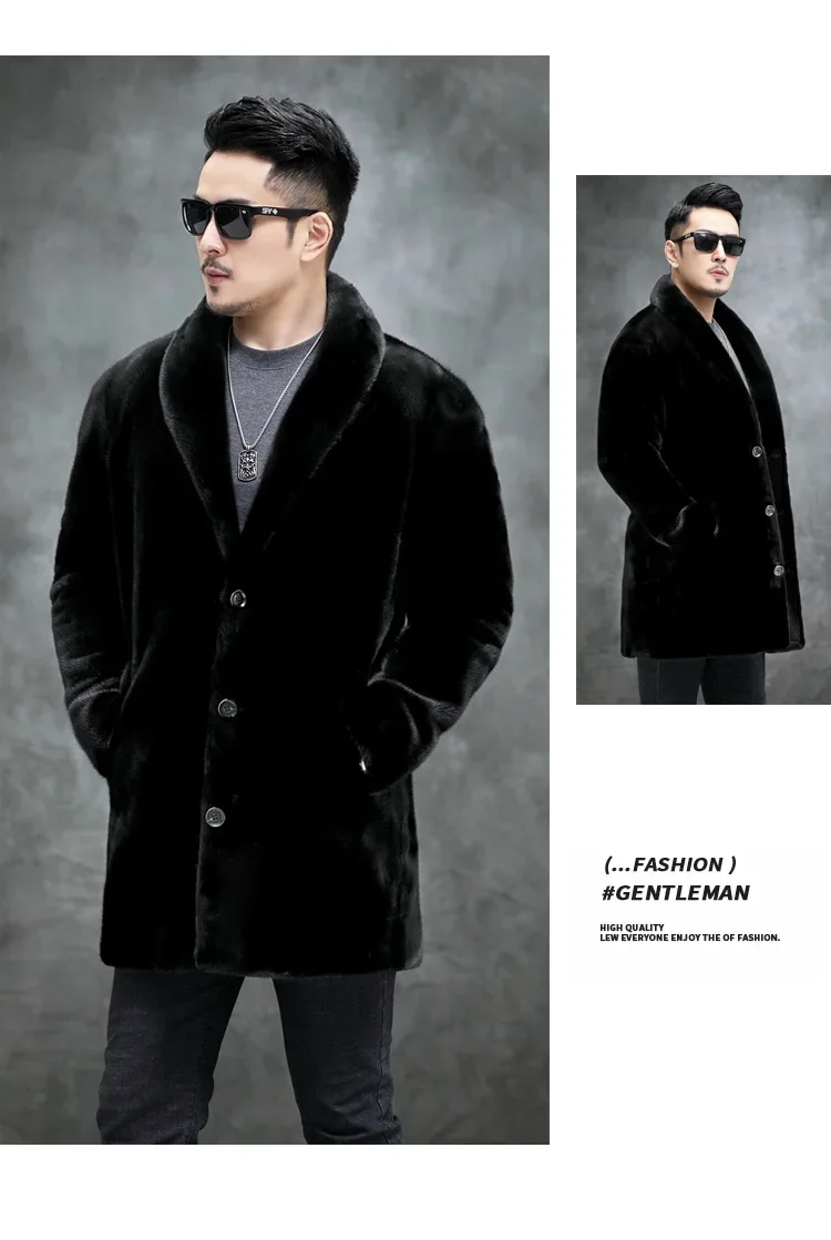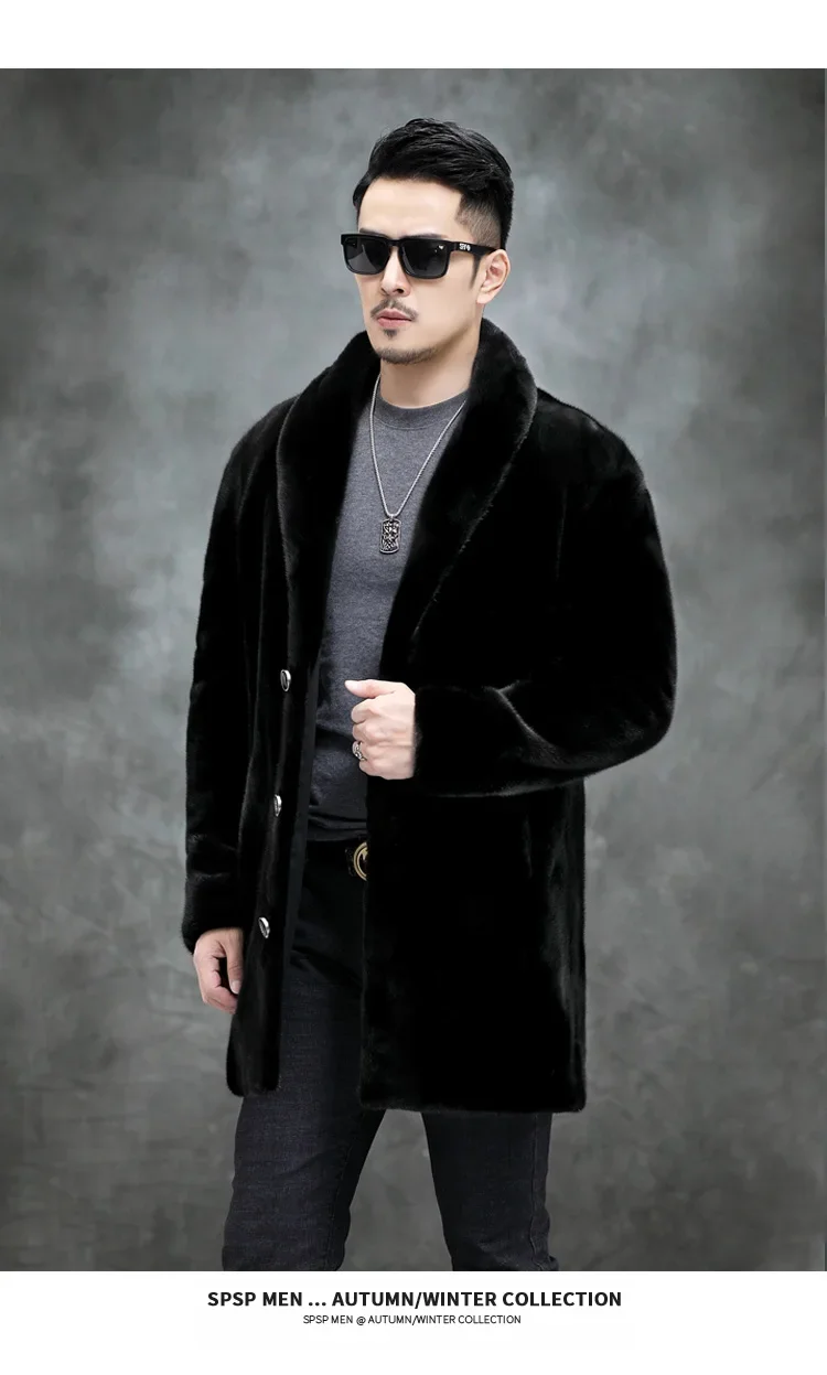 AYUNSUE Real Mink Fur Coat Mens Coats Winter Warm Parka Hombre Luxury Mid-length Mink Fur Jackets Men Manteau Homme Hiver SGG732