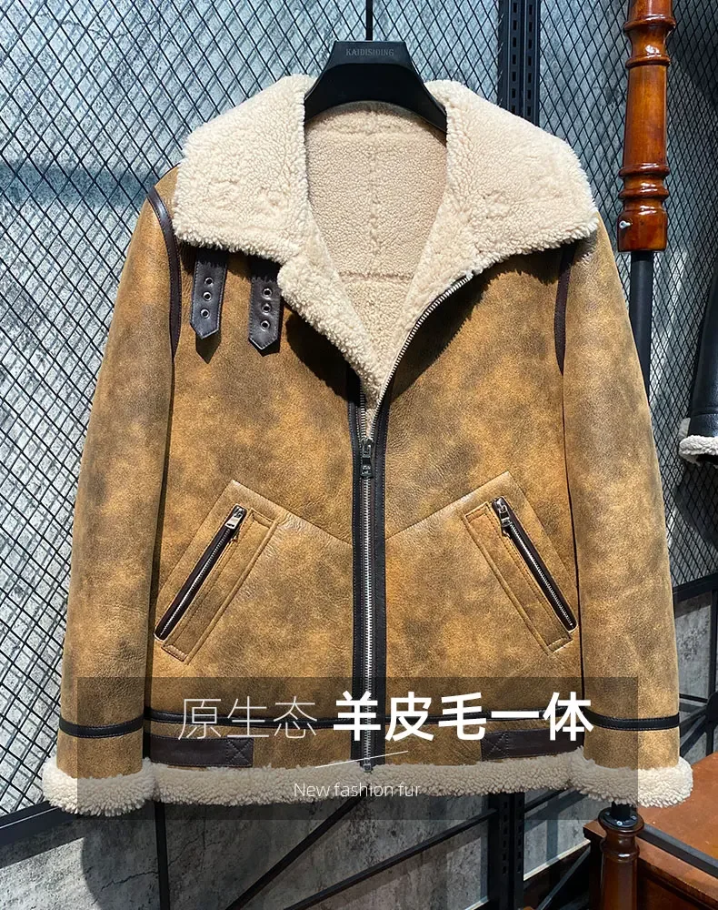AYUNSUE Winter Leather Fur Coat Men Natural Sheepskin Fur In One Fur Coat Thick Warm Male Genuine Leather Jacket Chaquetas Lq
