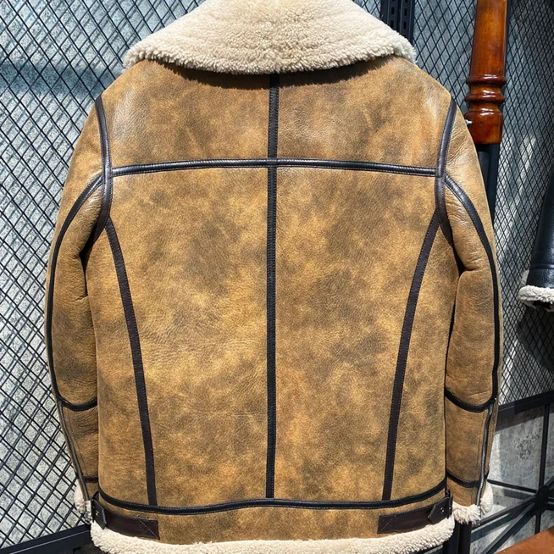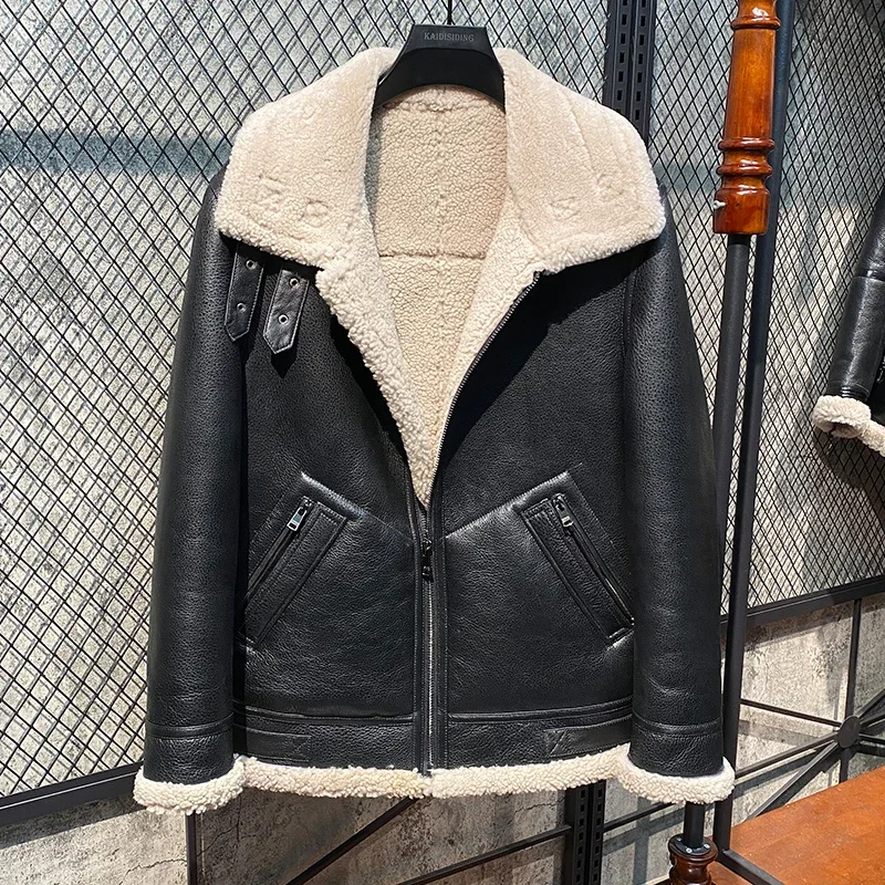 AYUNSUE Winter Leather Fur Coat Men Natural Sheepskin Fur In One Fur Coat Thick Warm Male Genuine Leather Jacket Chaquetas Lq