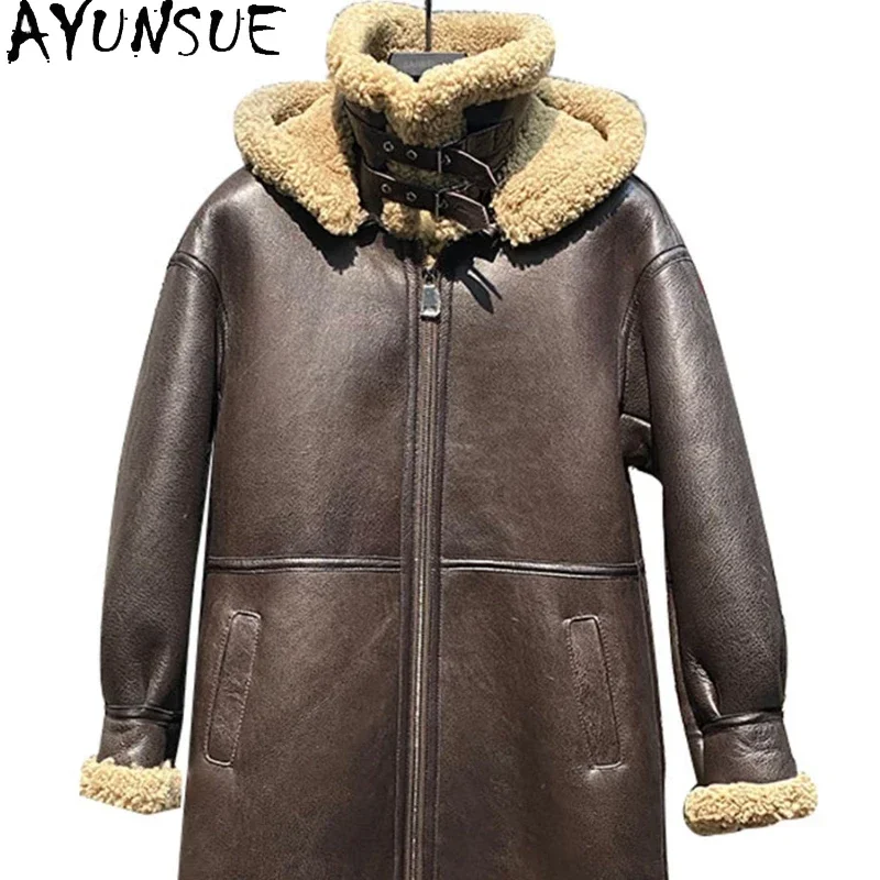 AYUNSUE Winter Sheepskin Fur Coat Men Clothing Long Leather Fur Coats Men Thick Warm Male Fur Jacket Chaquetas Zm474