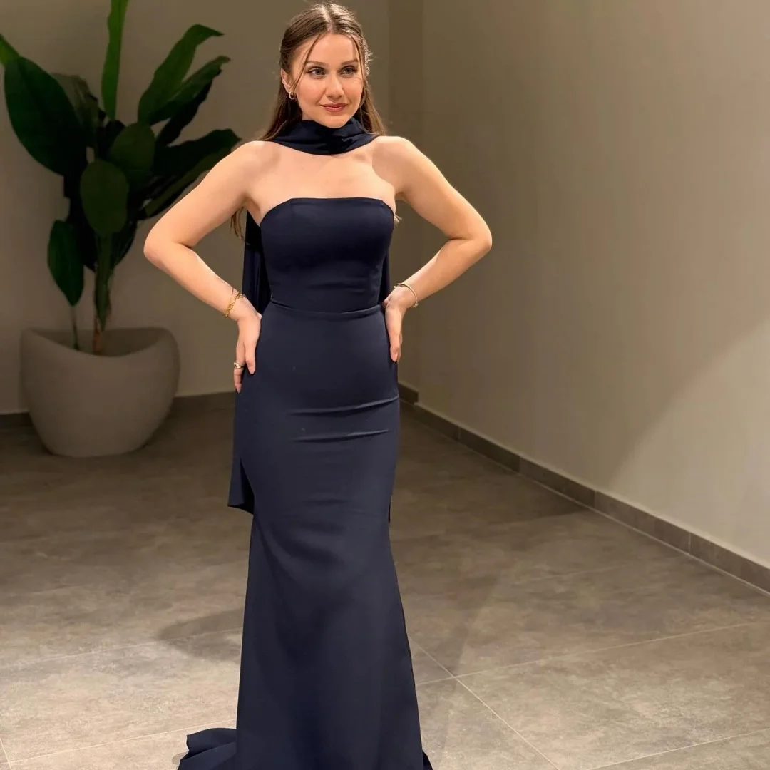 Bella Customized Light Blue Halter Neck Sleeveless robes de soirée Fitted Long Party Dresses Elegant Prom Dress Formal Evening