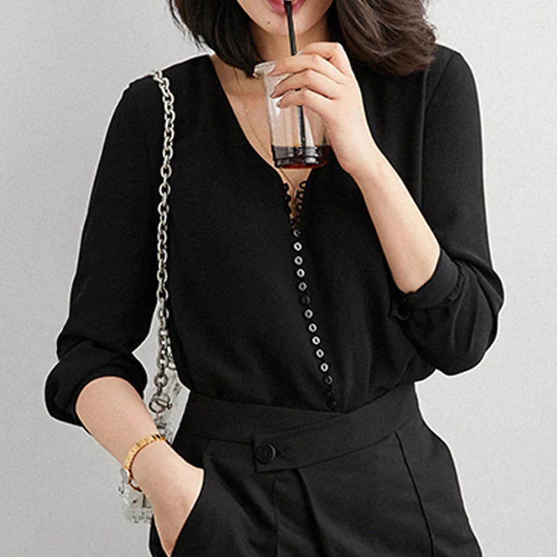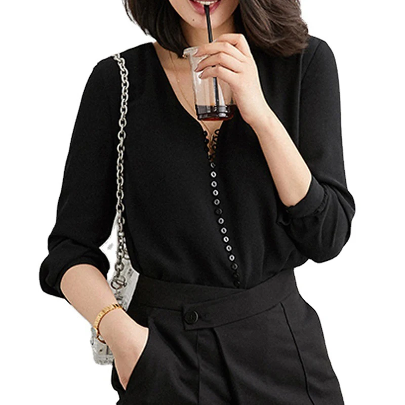 - Feature 2:Â Women Soft Button V-neck Long Sleeve Solid Shirt Tops