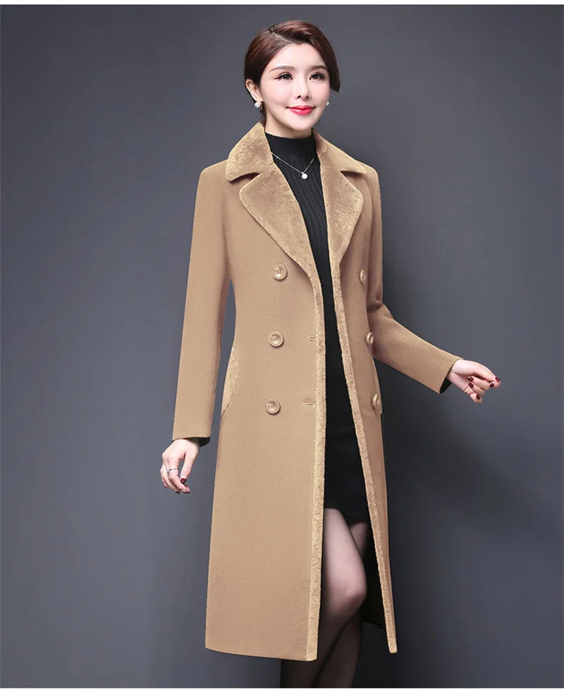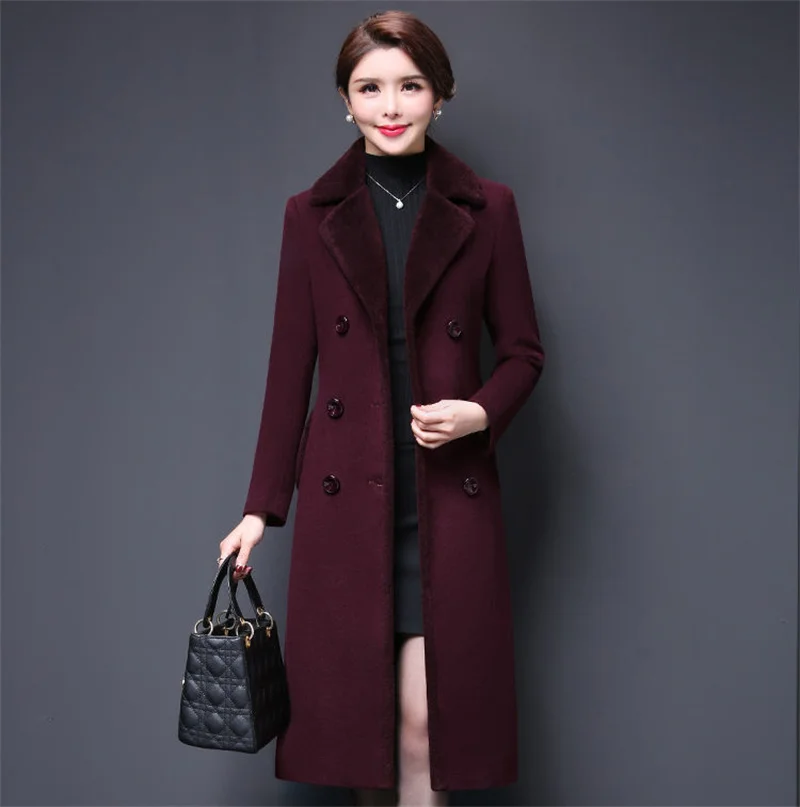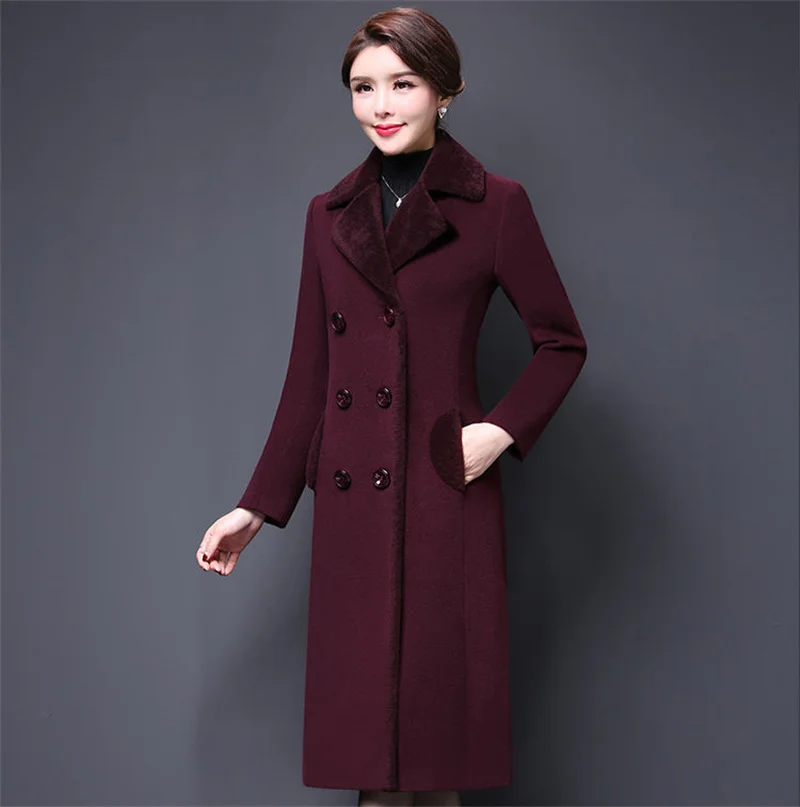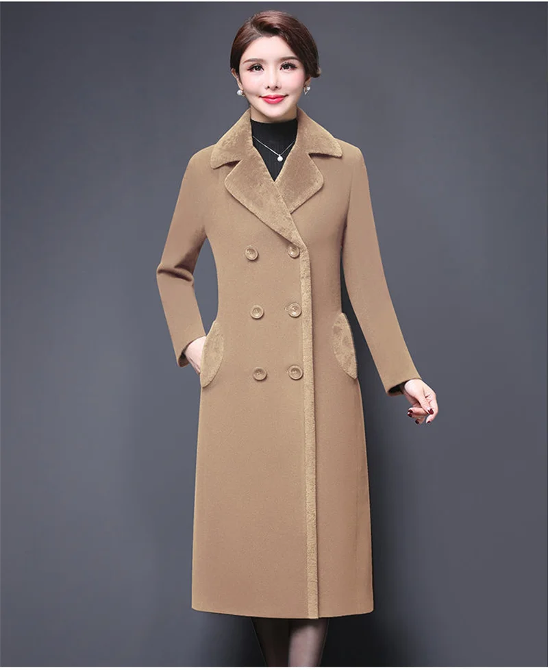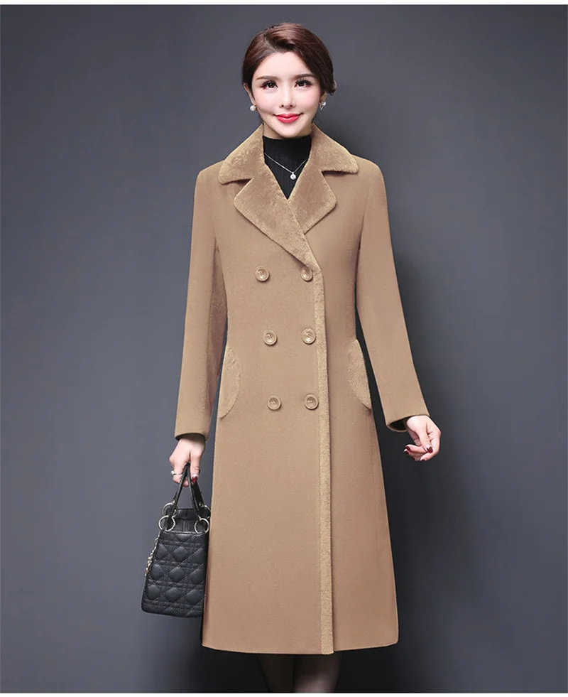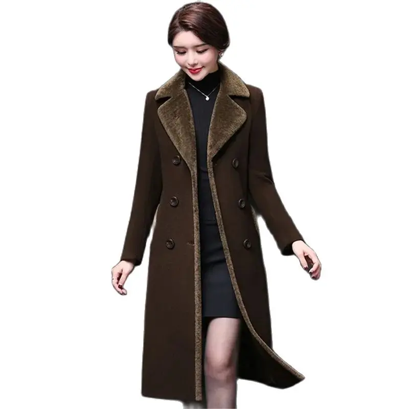 Blend Wool Coat Women’s Korean New Mother’s Woolen Coat Long Thicken OutCoat Women’s Autumn And Winter Fur Coat High-Quality