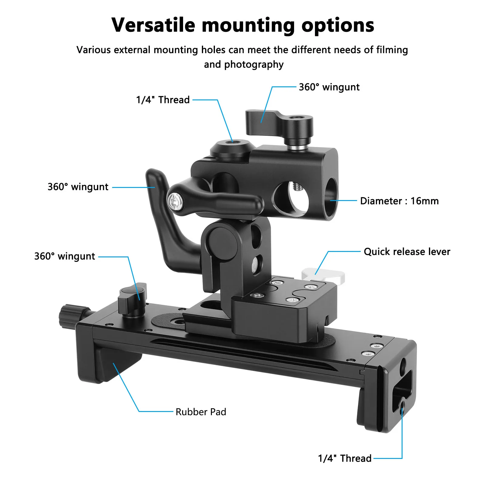 • 1/4″-20 Threads, Cold Shoe