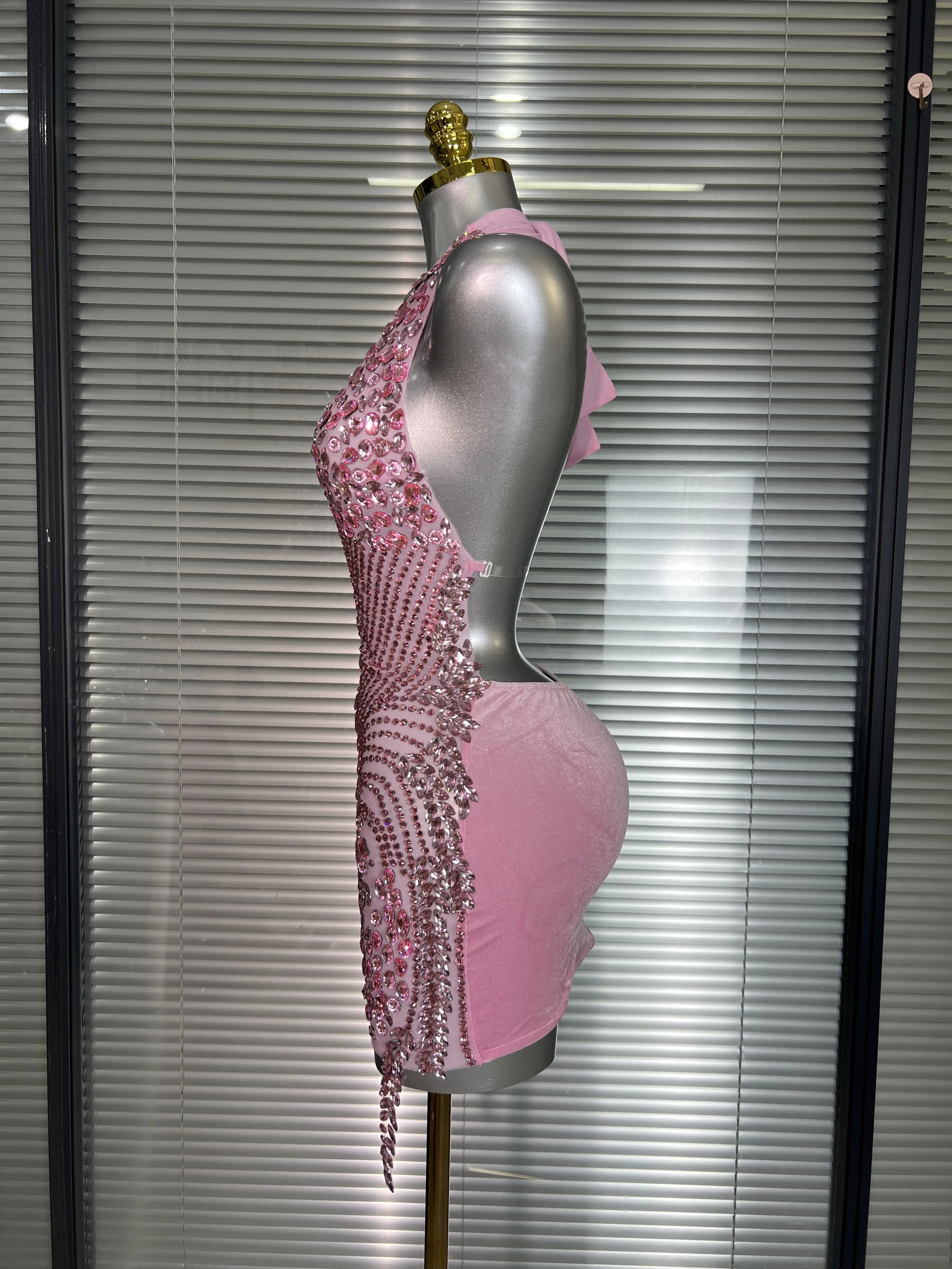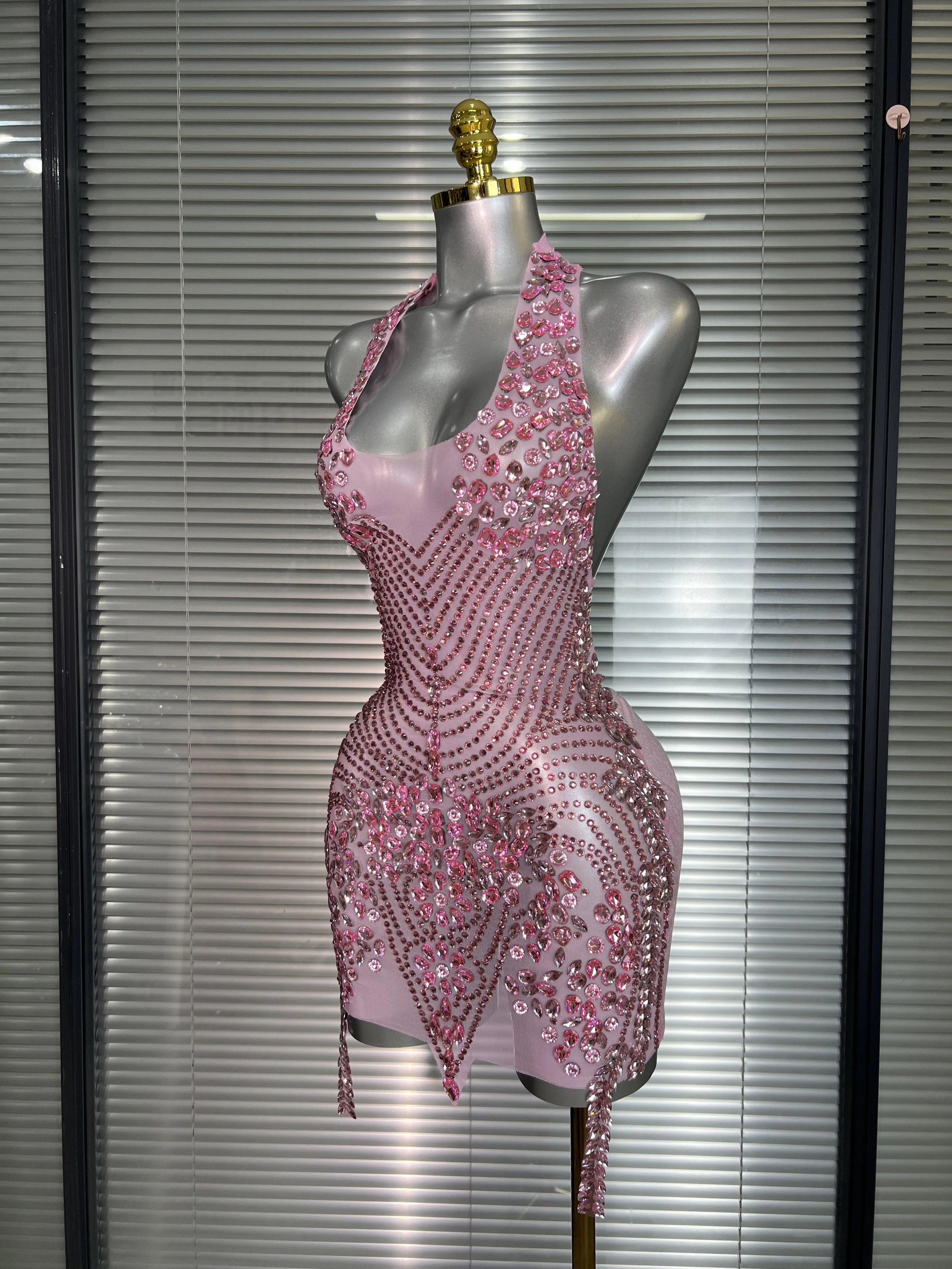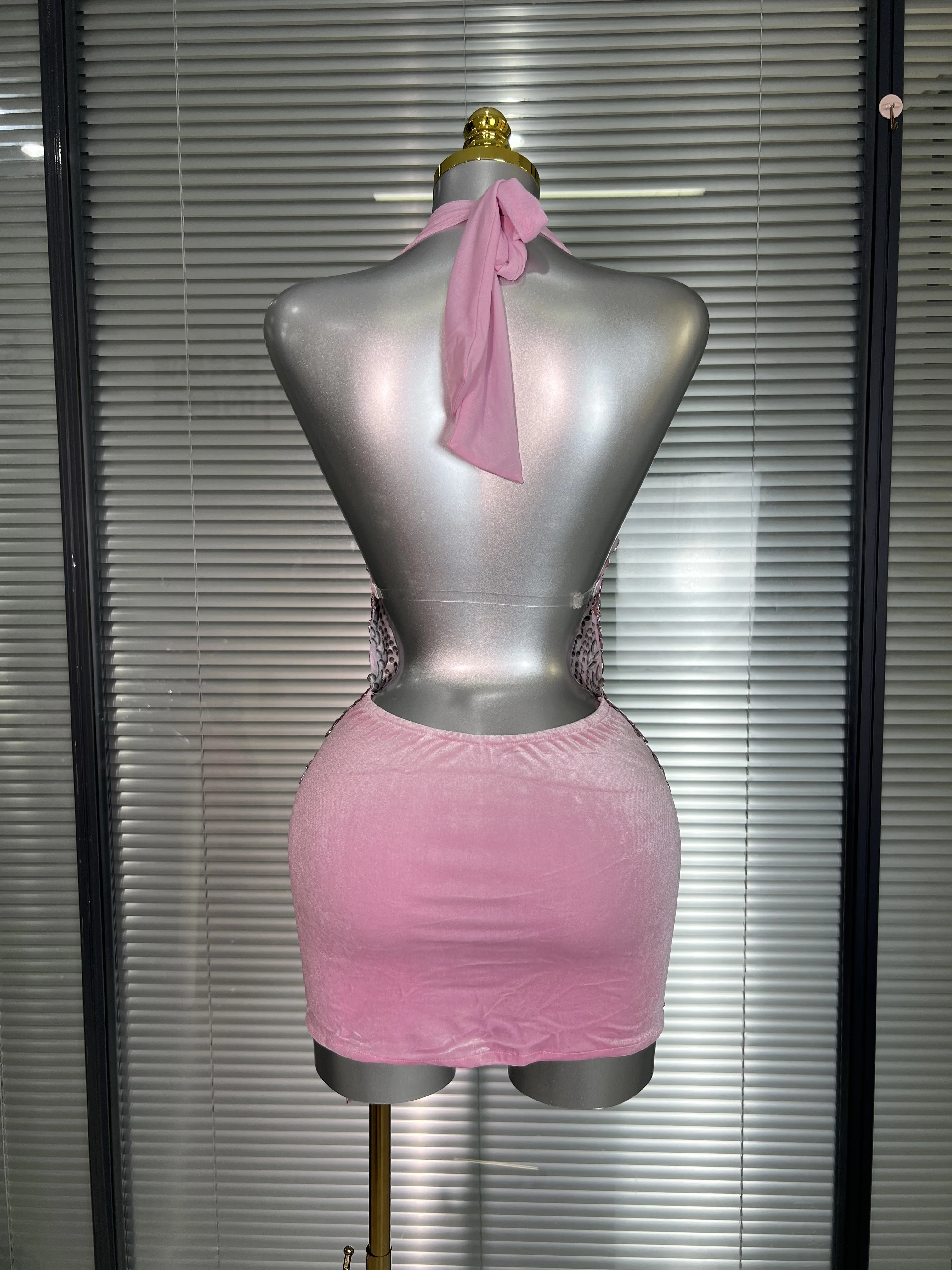 Be the first to review “Celebrity New Women Sexy Pink Mesh Halter Stage Performance Costume Dancer Singer Night Club Mini Party Dress” Cancel reply