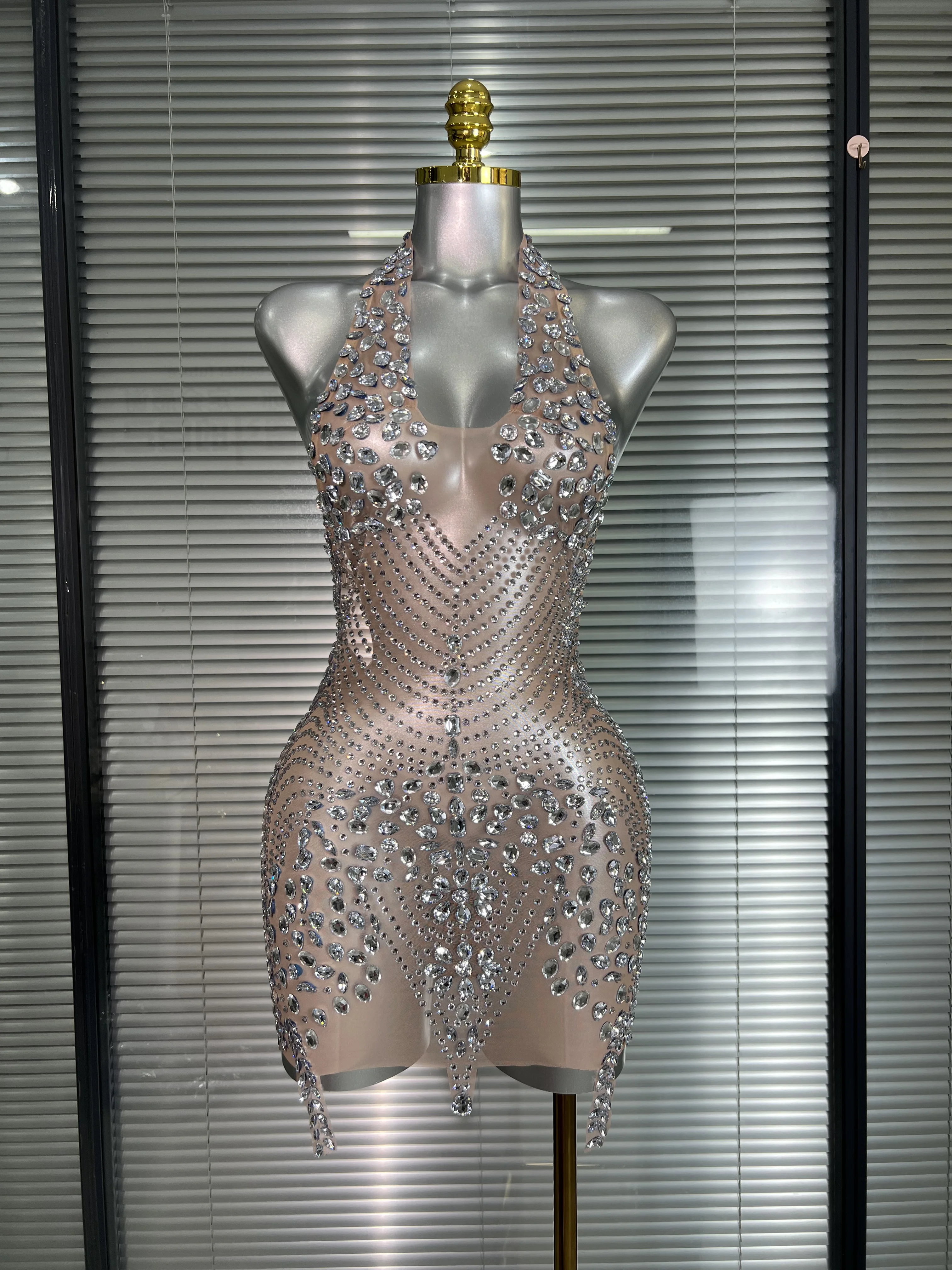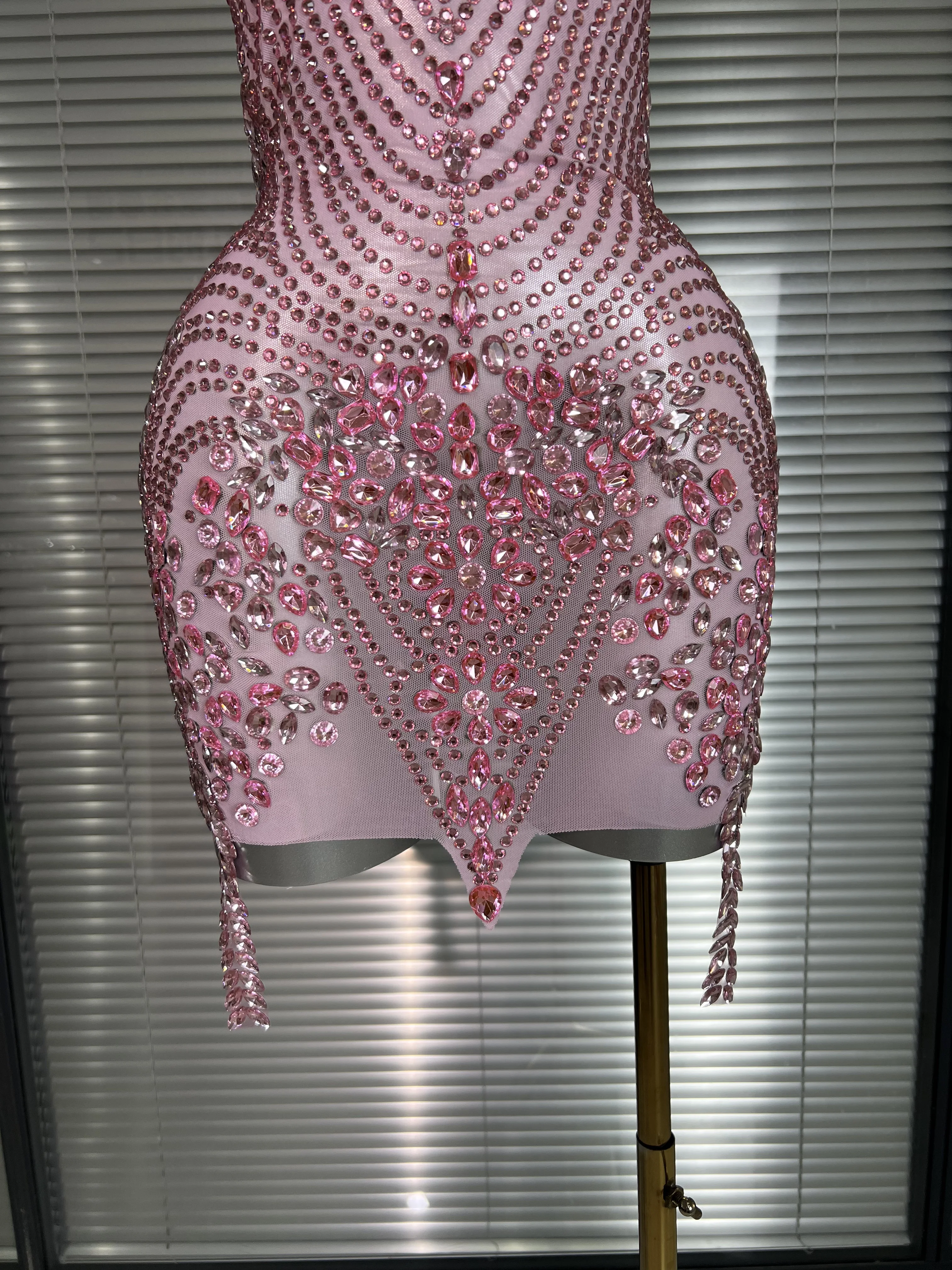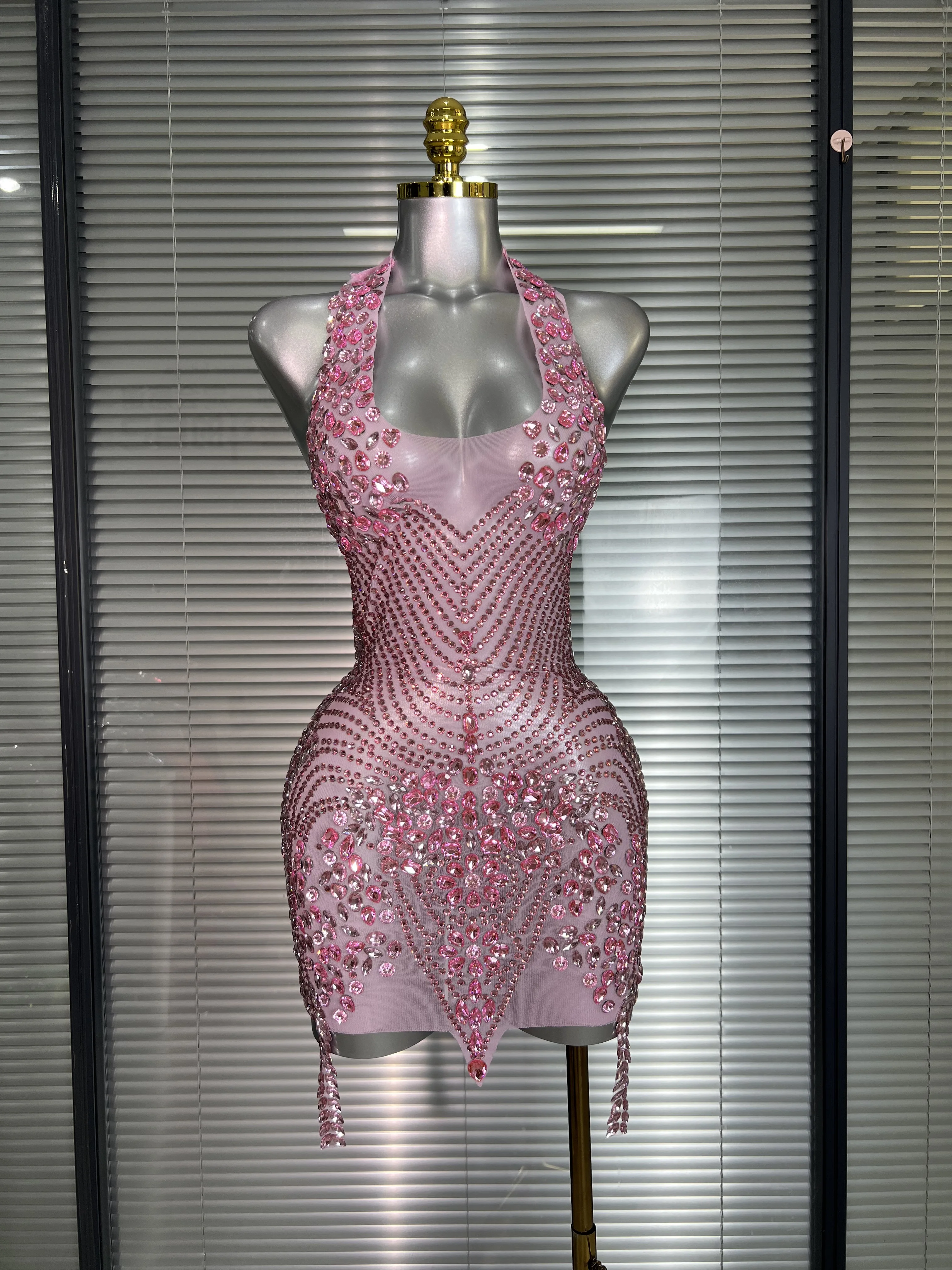 Be the first to review “Celebrity New Women Sexy Pink Mesh Halter Stage Performance Costume Dancer Singer Night Club Mini Party Dress” Cancel reply