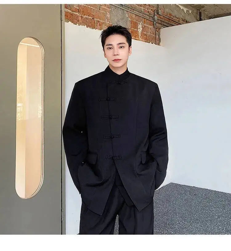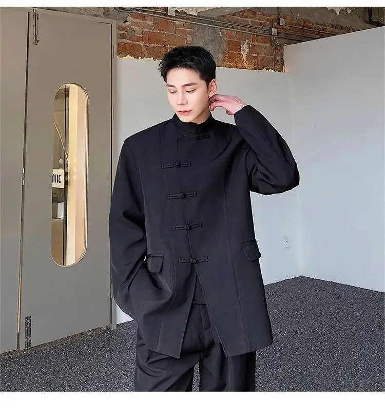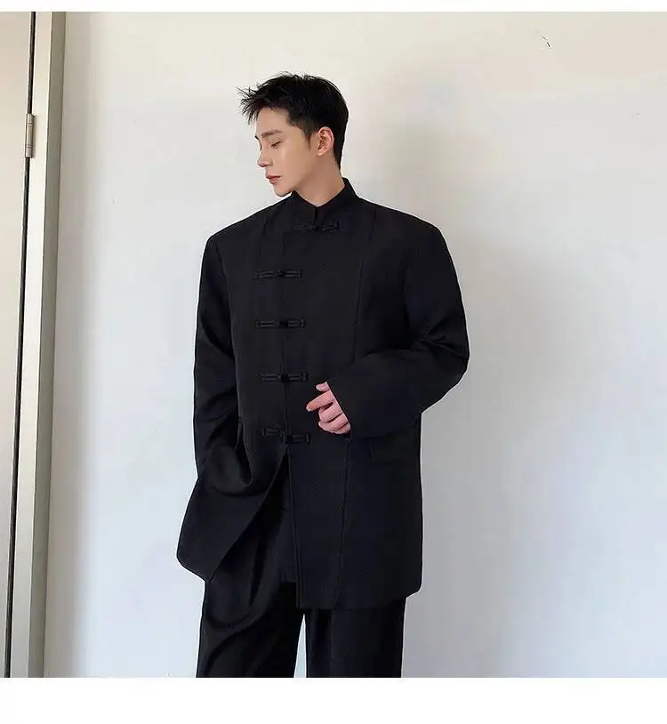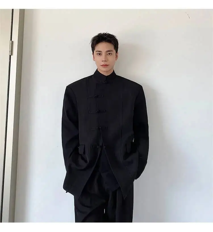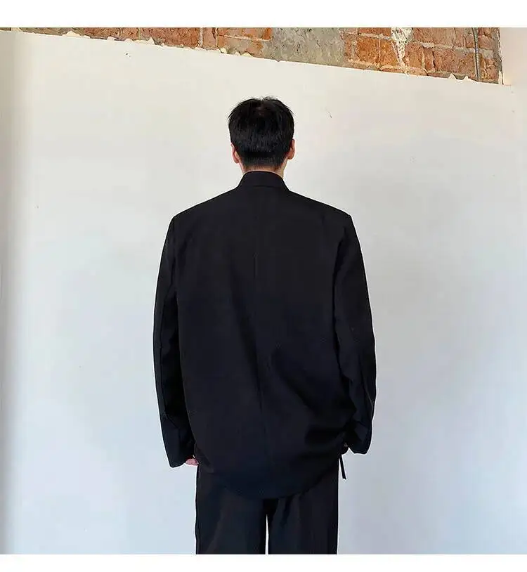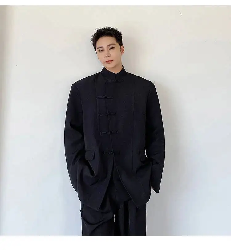 Chinese styles Men’s Blazer Stand Collar Button Suit Coat Long Sleeve Solid Streetwear Autumn Fashion Casual Blazers For Man