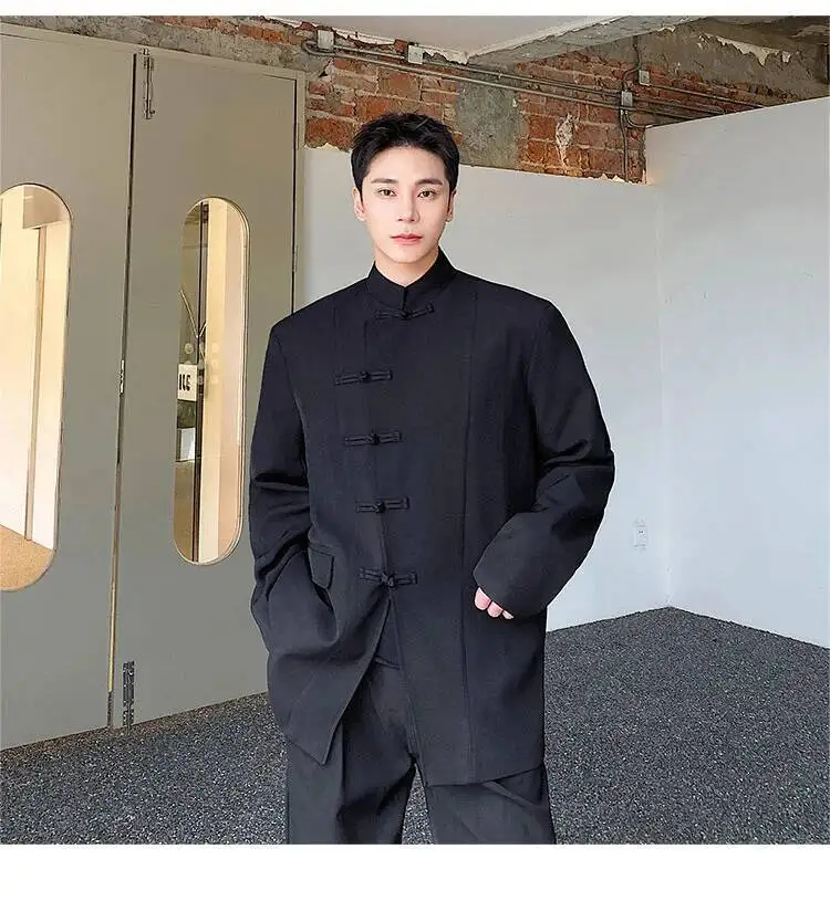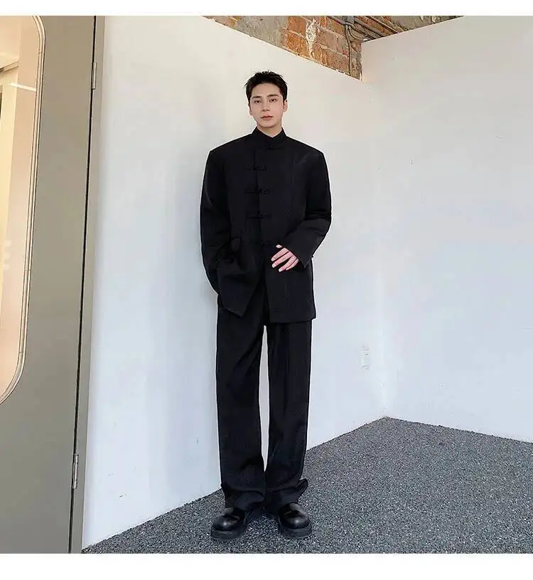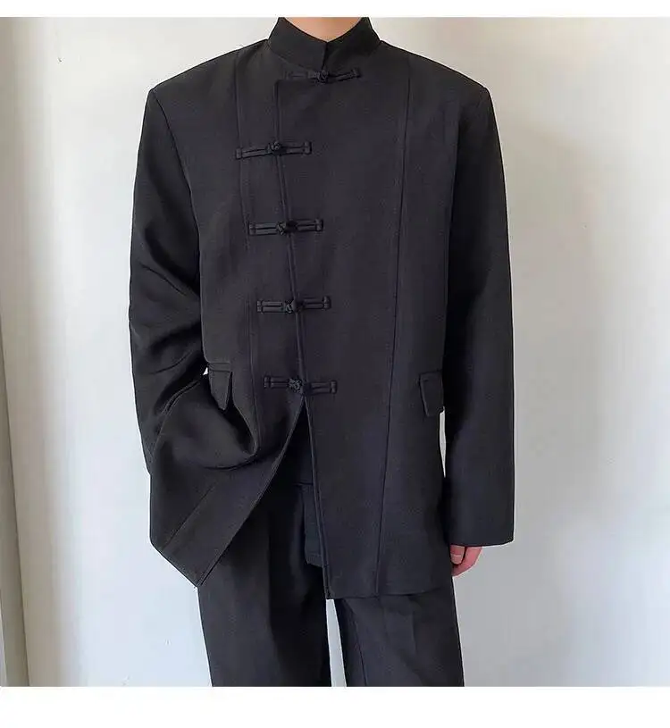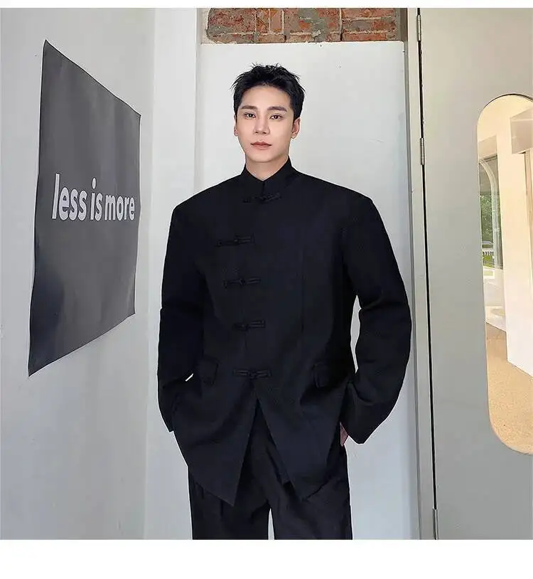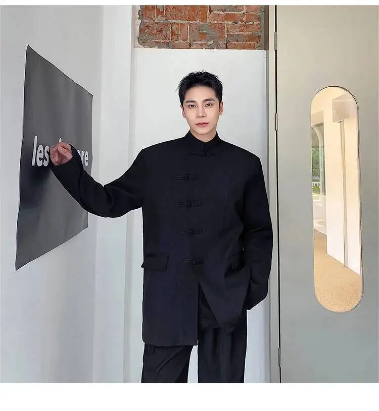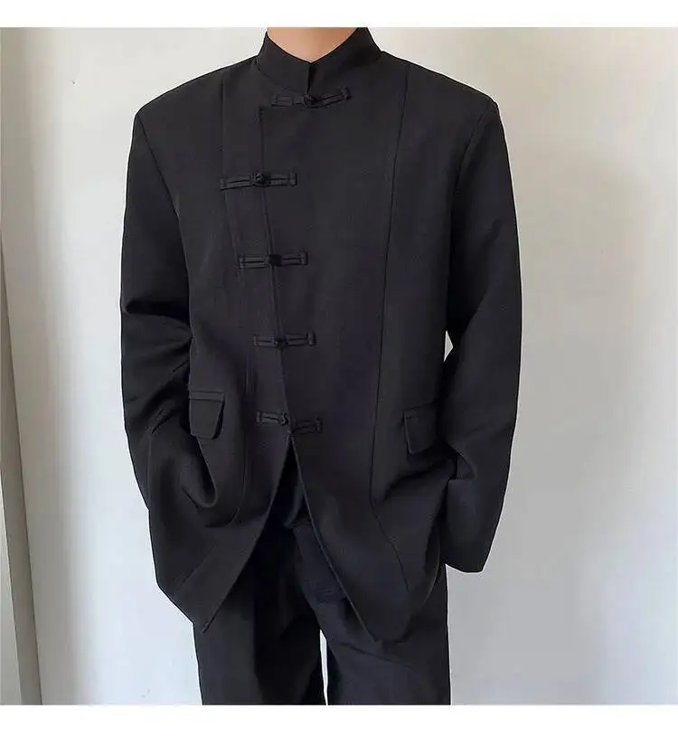 Chinese styles Men’s Blazer Stand Collar Button Suit Coat Long Sleeve Solid Streetwear Autumn Fashion Casual Blazers For Man