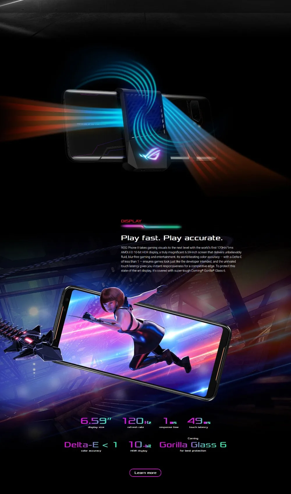 | Type | 19.5:9 120Hz/1ms AMOLED 10-bit HDR display |