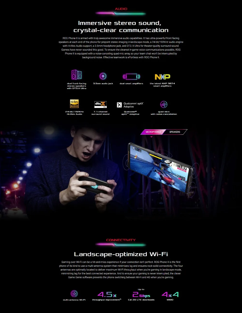 | Sensor | In-display fingerprint, Face recognition, Accelerator, E-Compass, Gyroscope, Proximity sensor, Hall sensor, Ambient light sensor, Ultrasonic sensors for AirTrigger II and grip press, Dual vibrators. |
