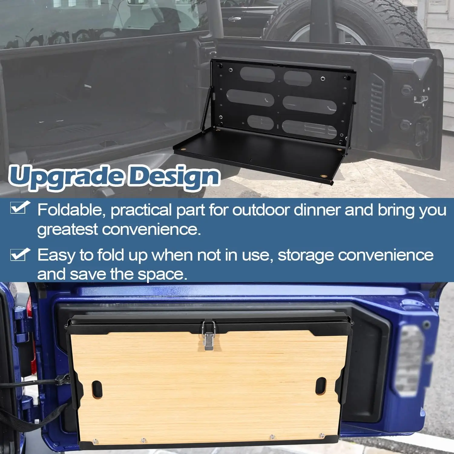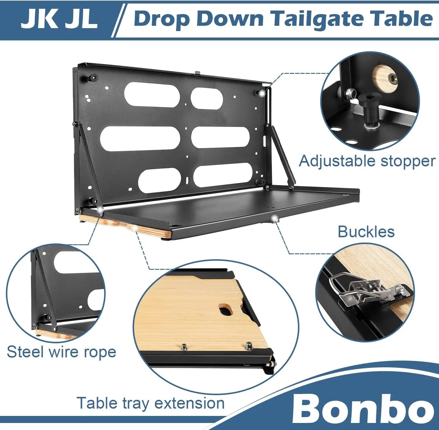 Drop Down Tailgate Table for 2007-2022 Jeep Wrangler JK JKU JL JLU Unlimited Sports Freedom Sahara Rubicon Rear Door Foldable Table Cargo Shelf Storage Cargo Luggage Holder Carrier