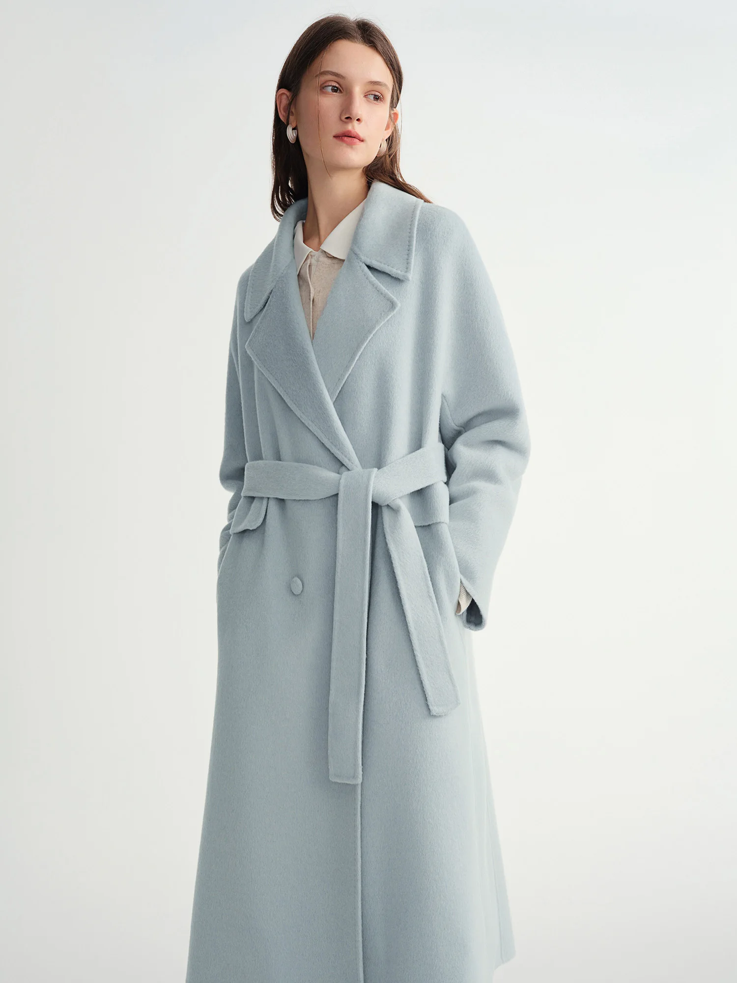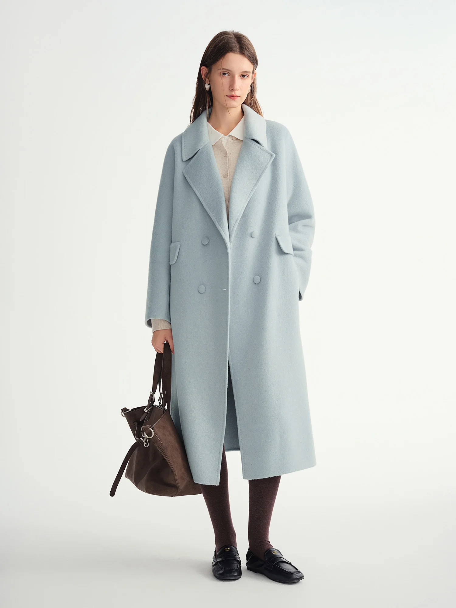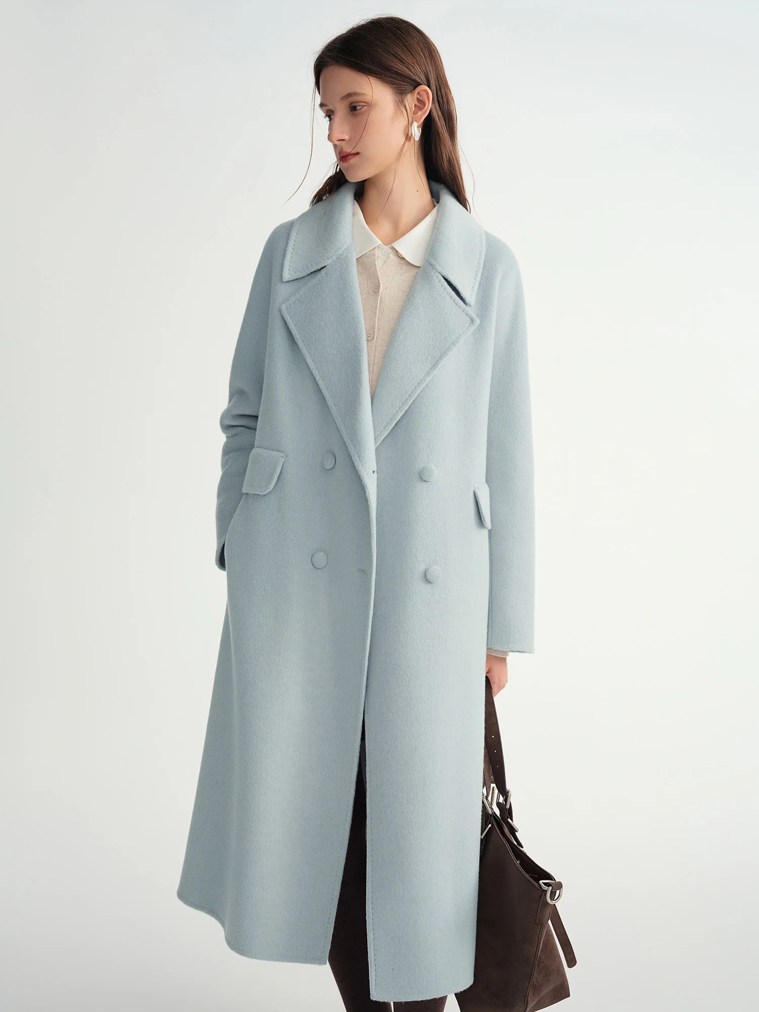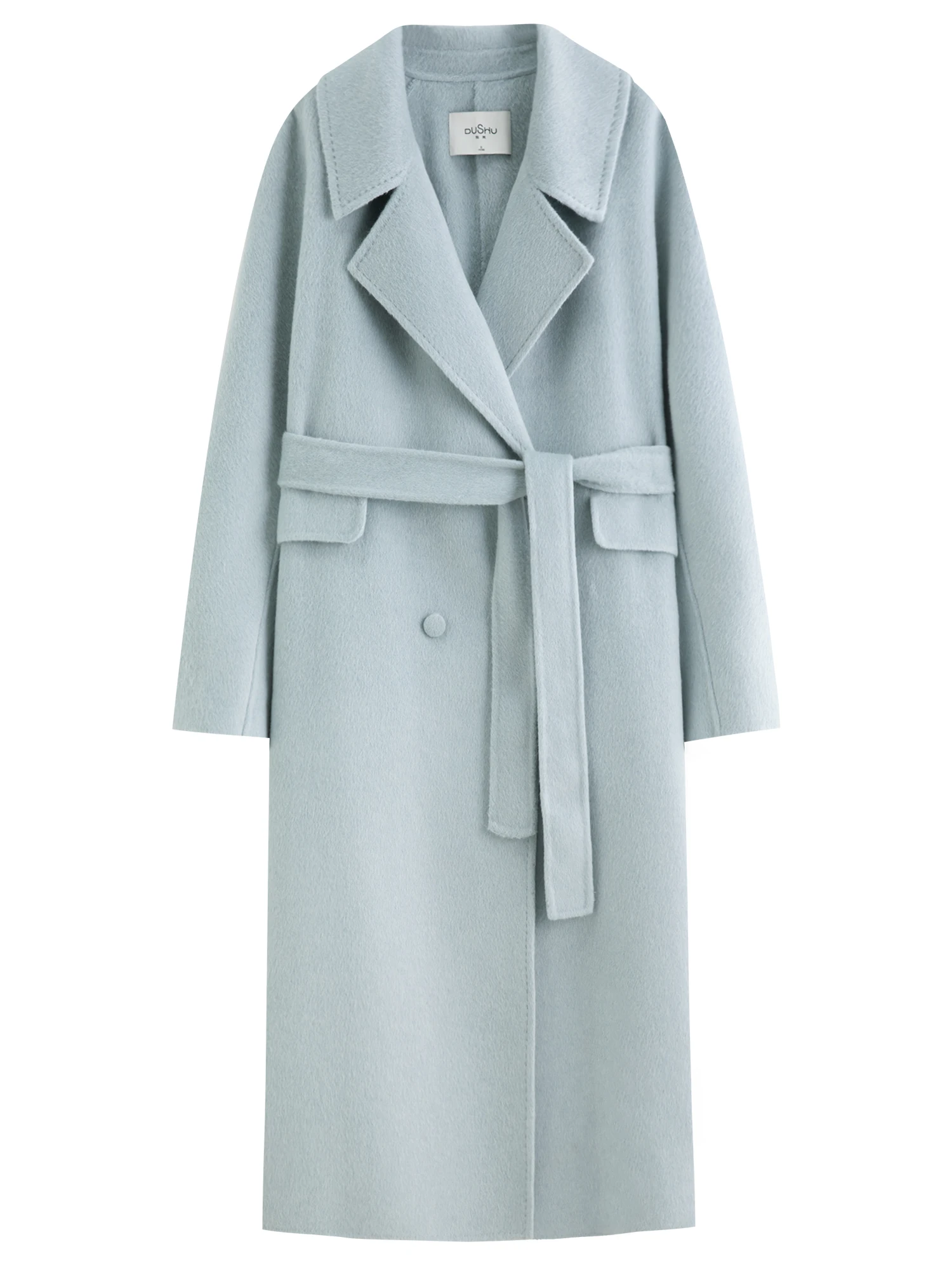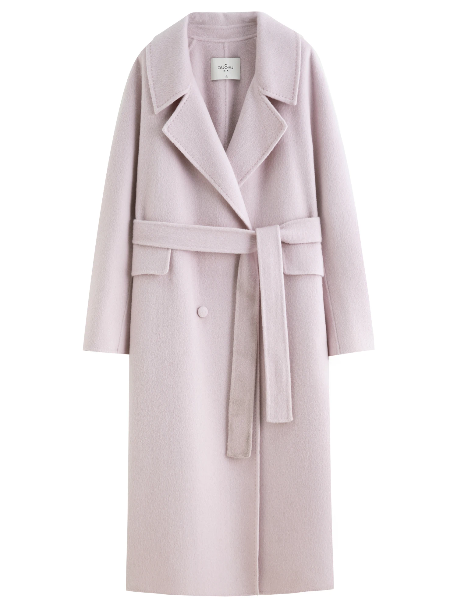 DUSHU Double-breasted Cashmere Wool Coat Elegant Ladies Women Commuting Simple Temperament Mid-calf Length British Style