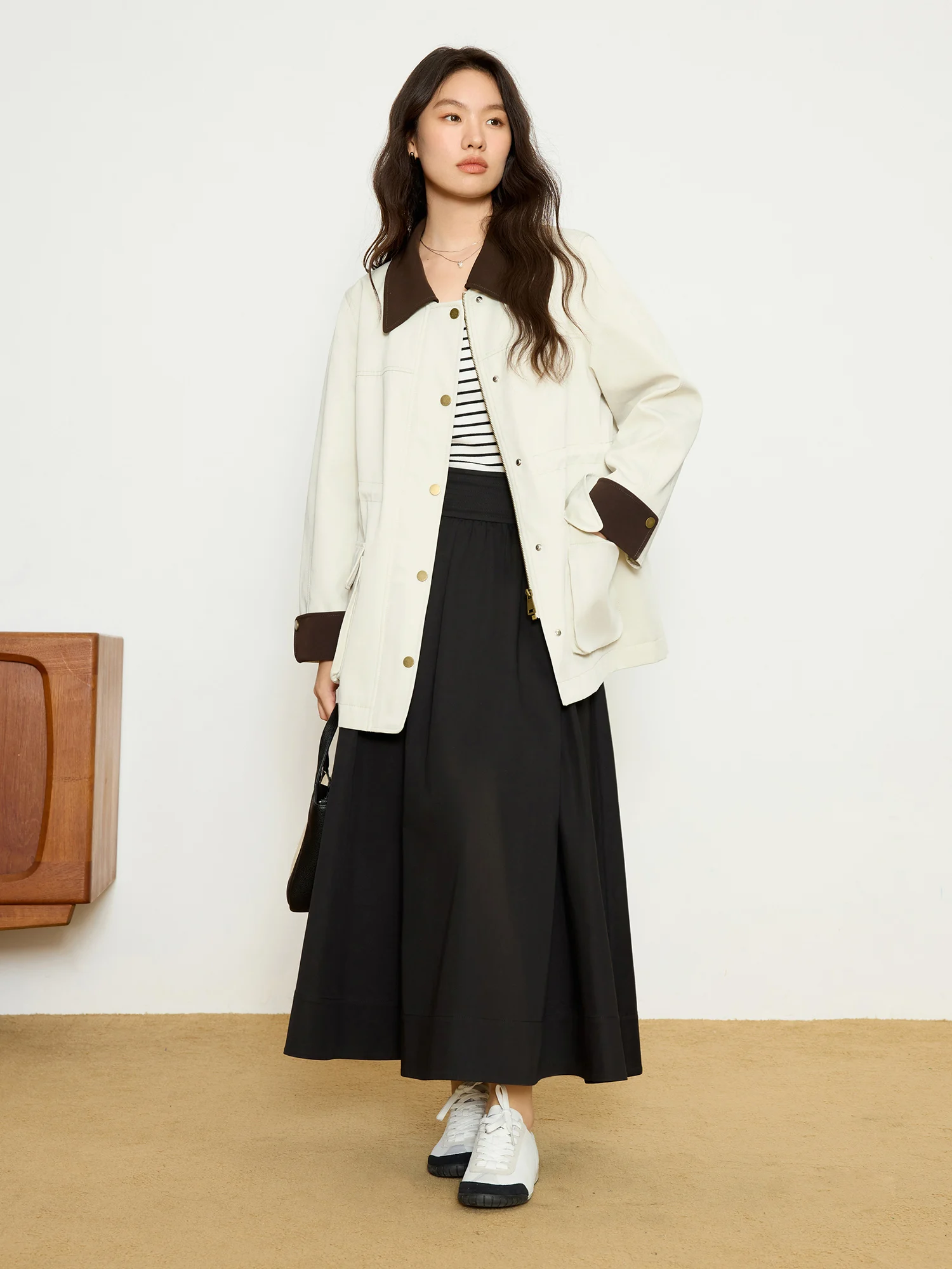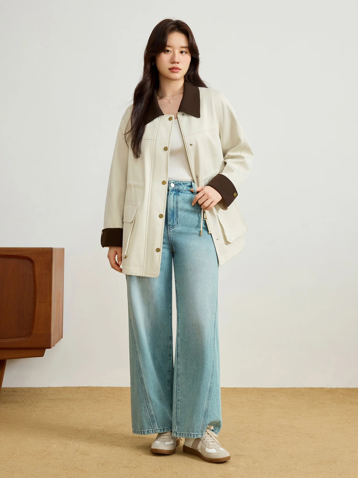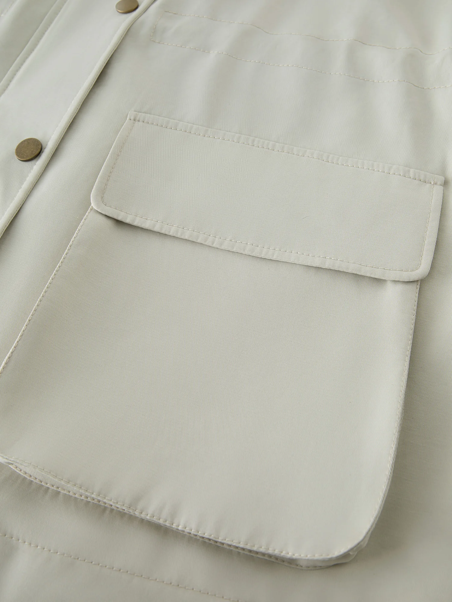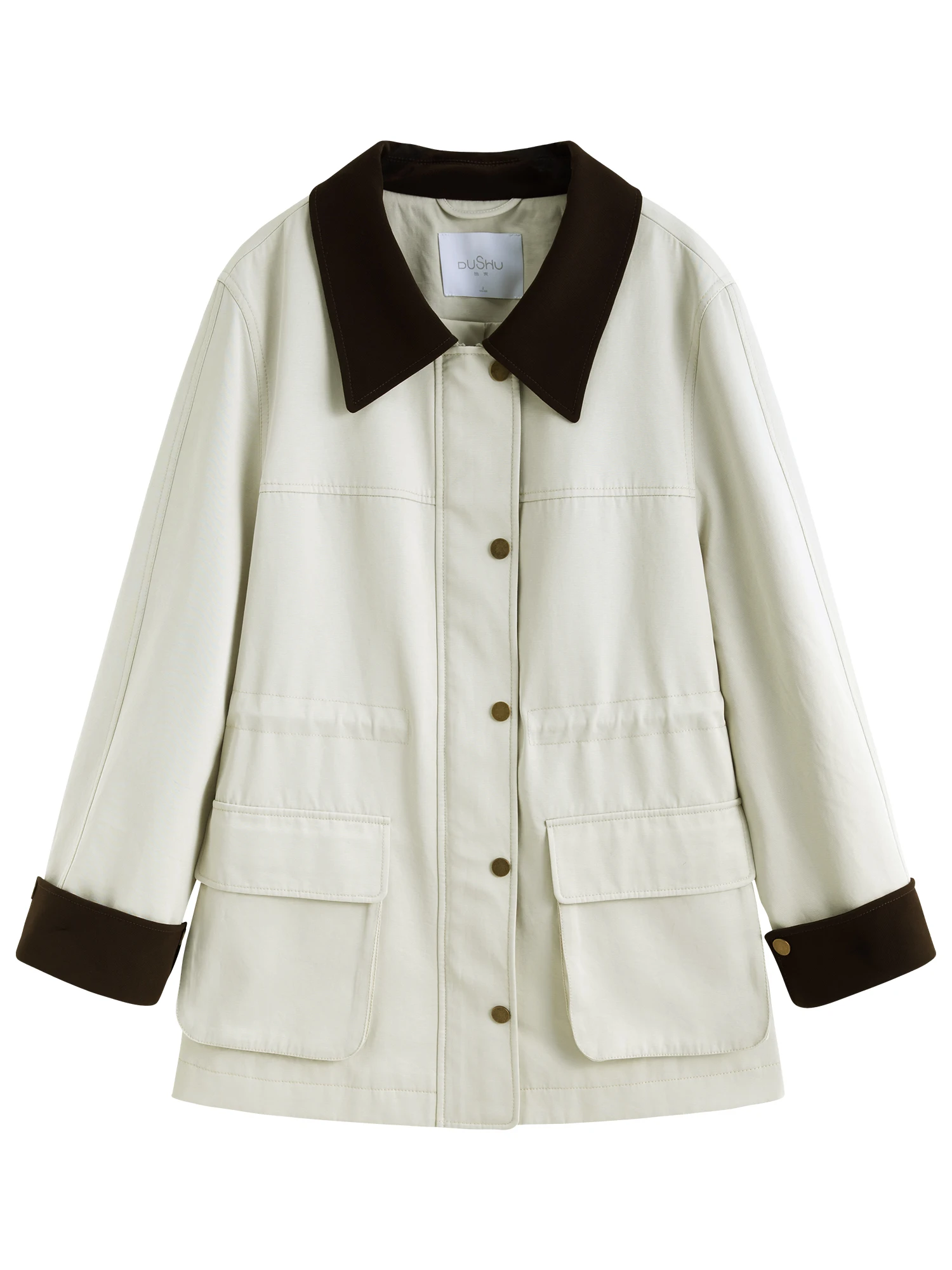 DUSHU Women Spring Casual Trench One Hand Length Turn-down Collar Trenches Drawstring Women Beige Grey Coats 25DS81201