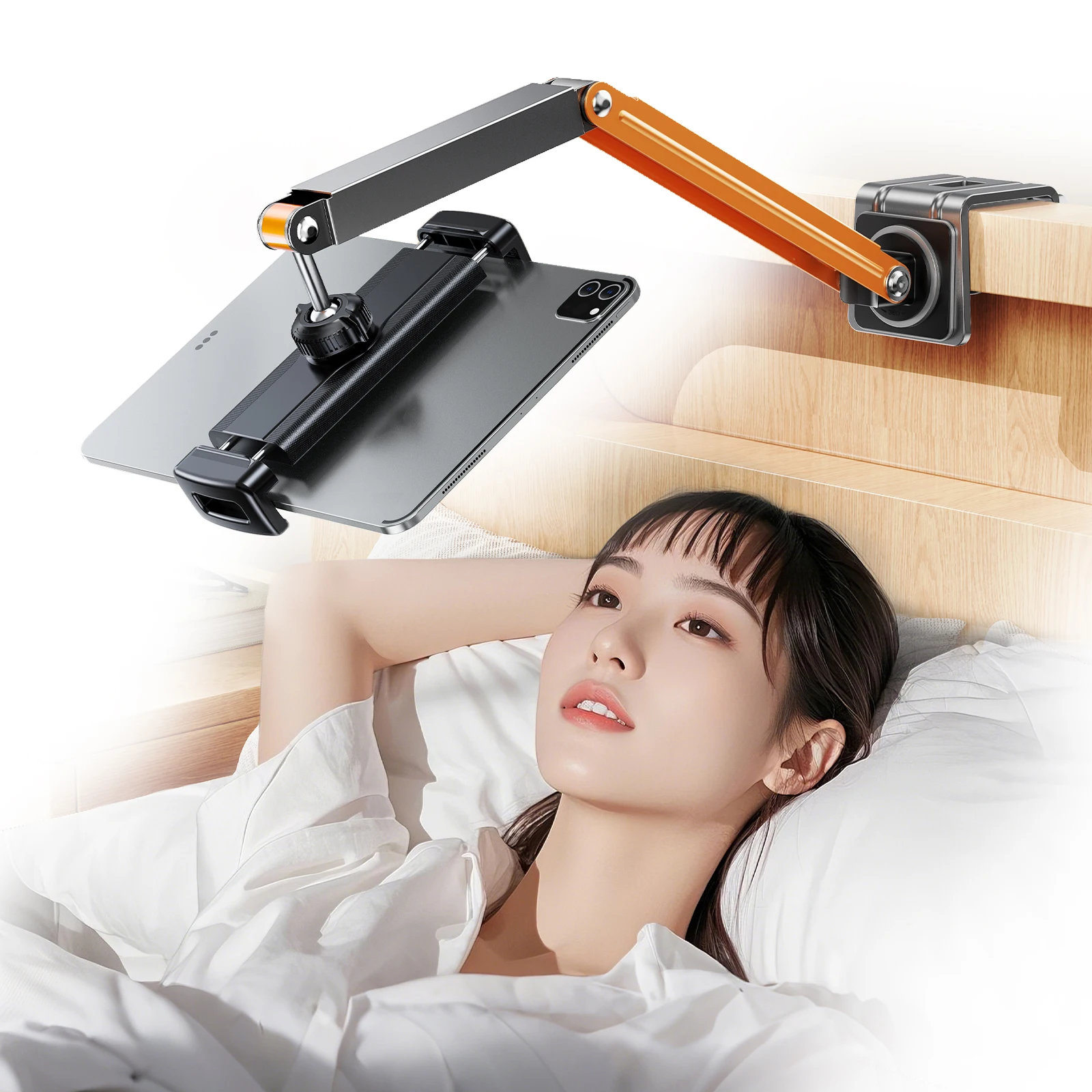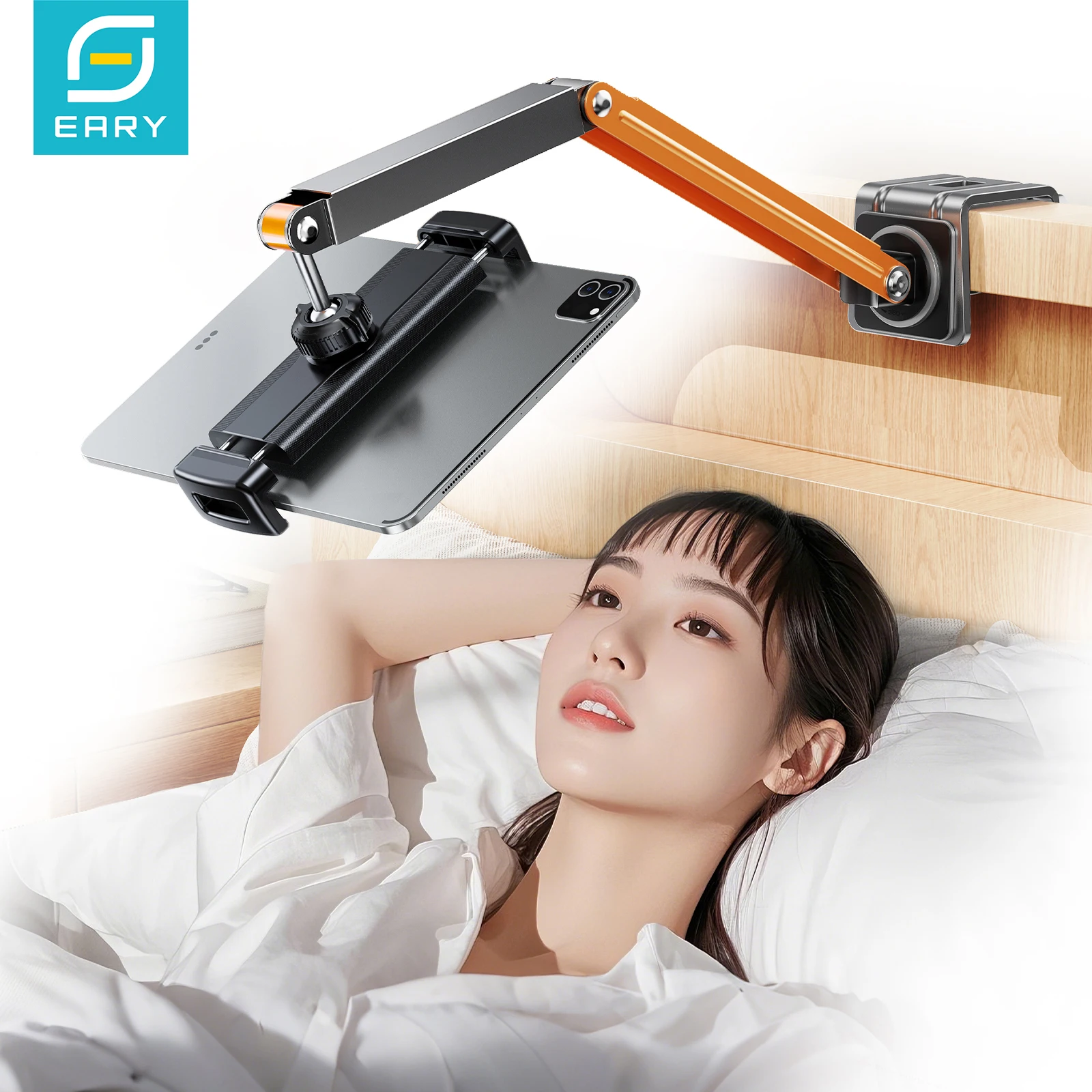 Eary Phone Holder Tablet Stand Mount For Desktop Bedside Three-Stage Telescopic Foldable Rotatable With Metal Clamp Lazy Bracket