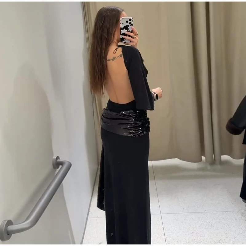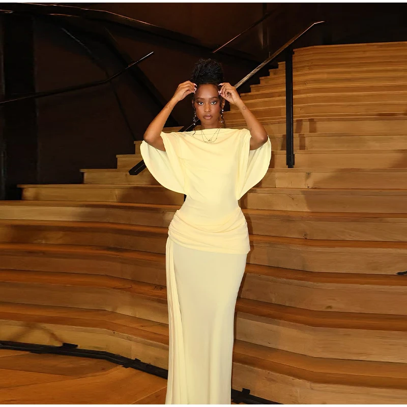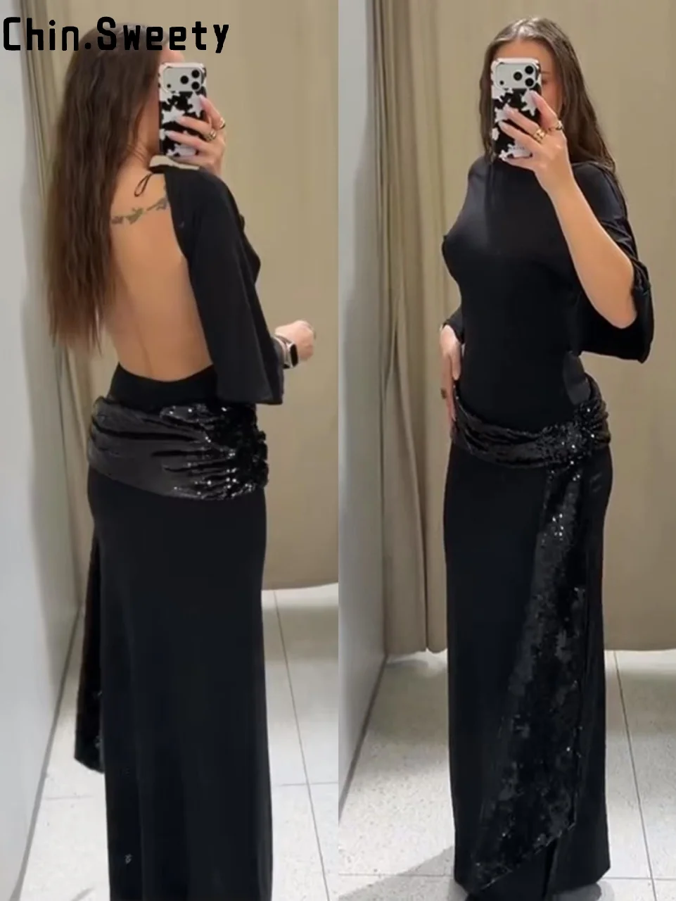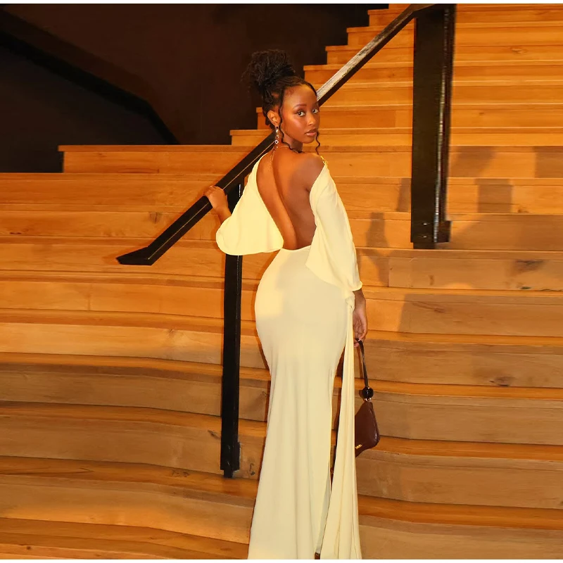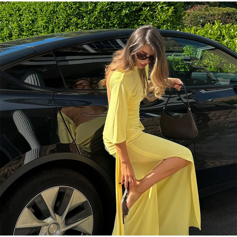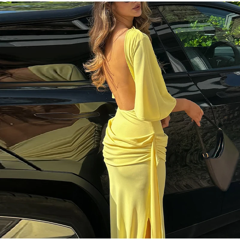 - Model Number:Â Elegant Backless Pleated Long Dress Women