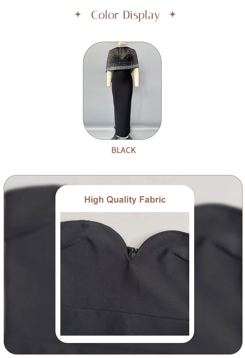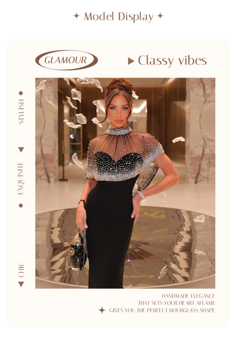 Be the first to review “Elegant Black Evening Gown with Sheer Beaded Cape High-Neck Formal Maxi Dress for Women Rhinestone – Embellished Party Dresses”
