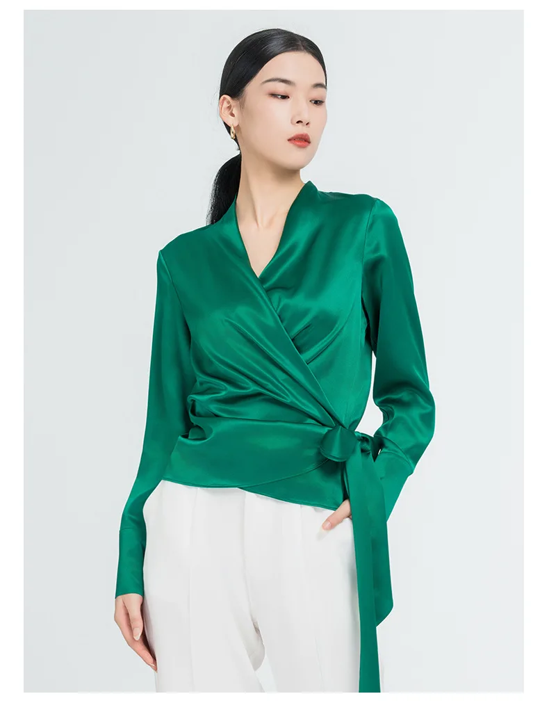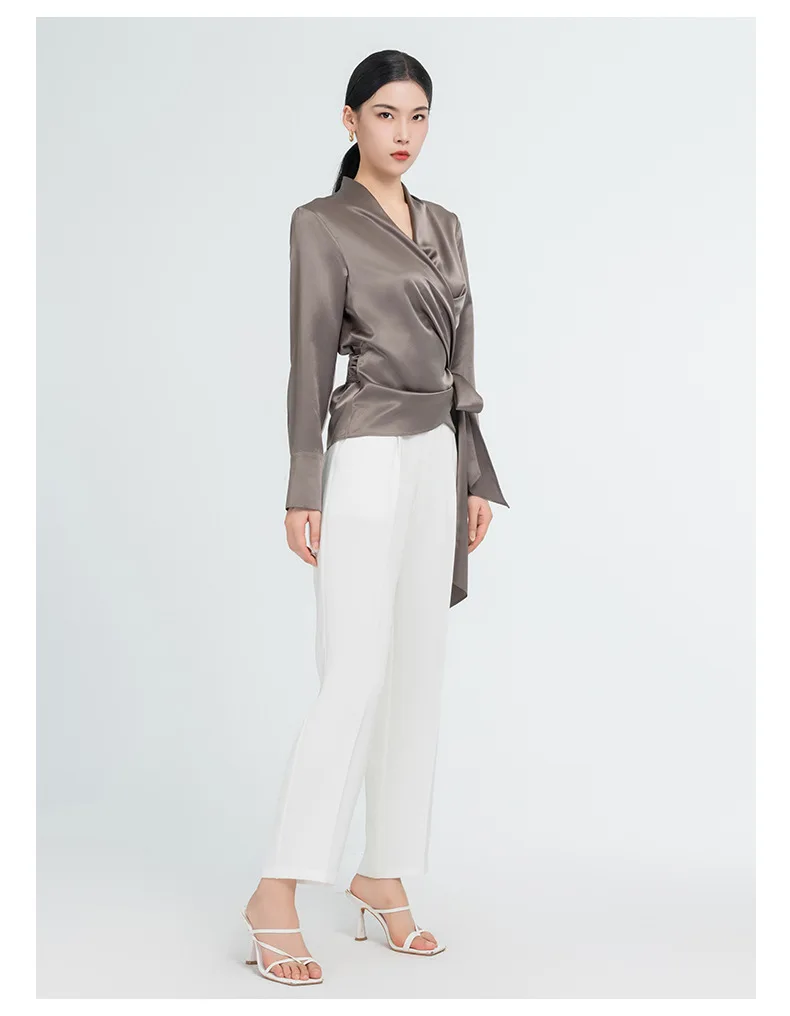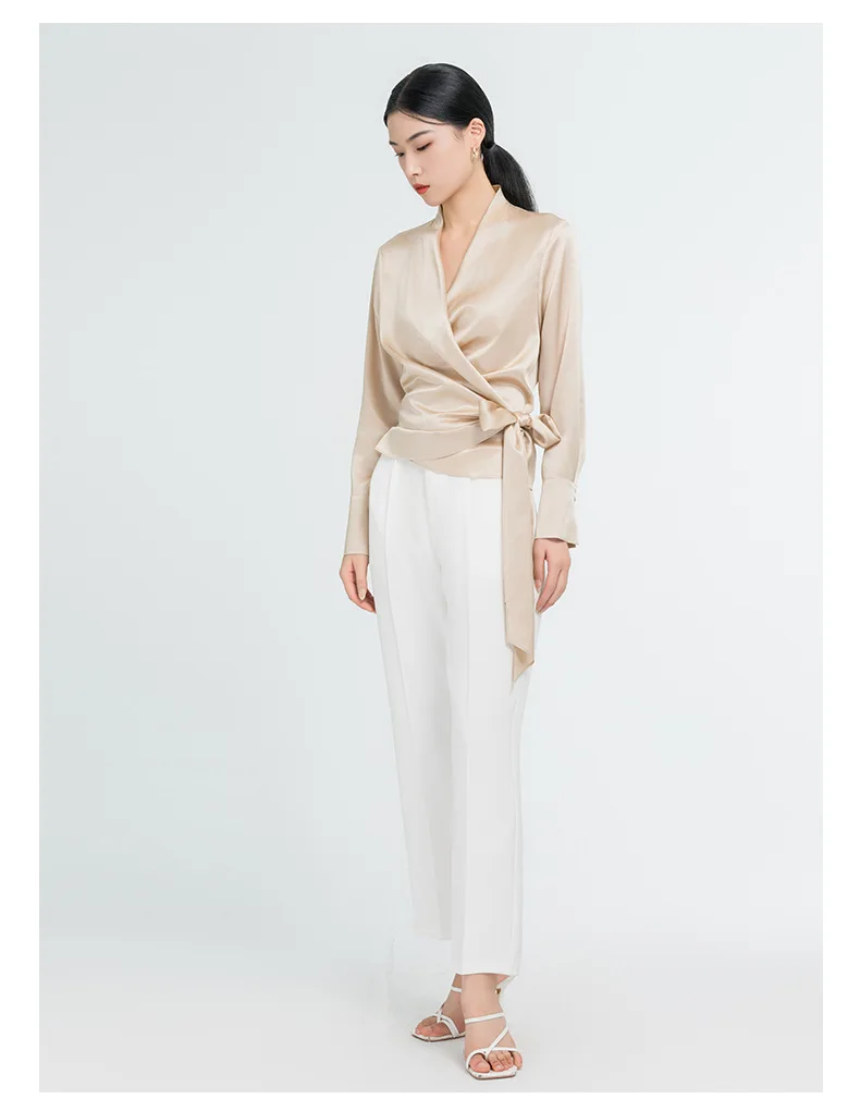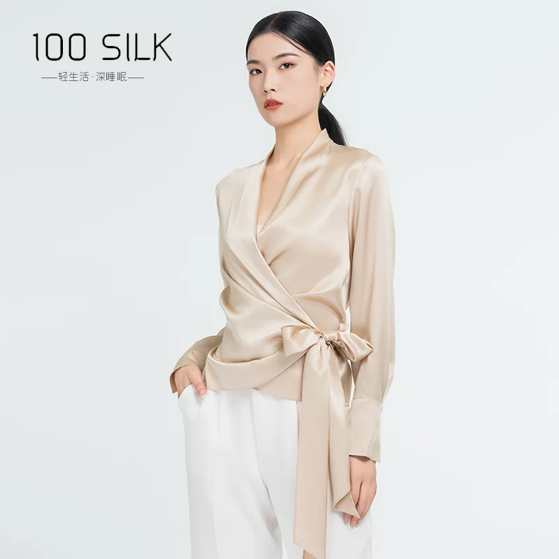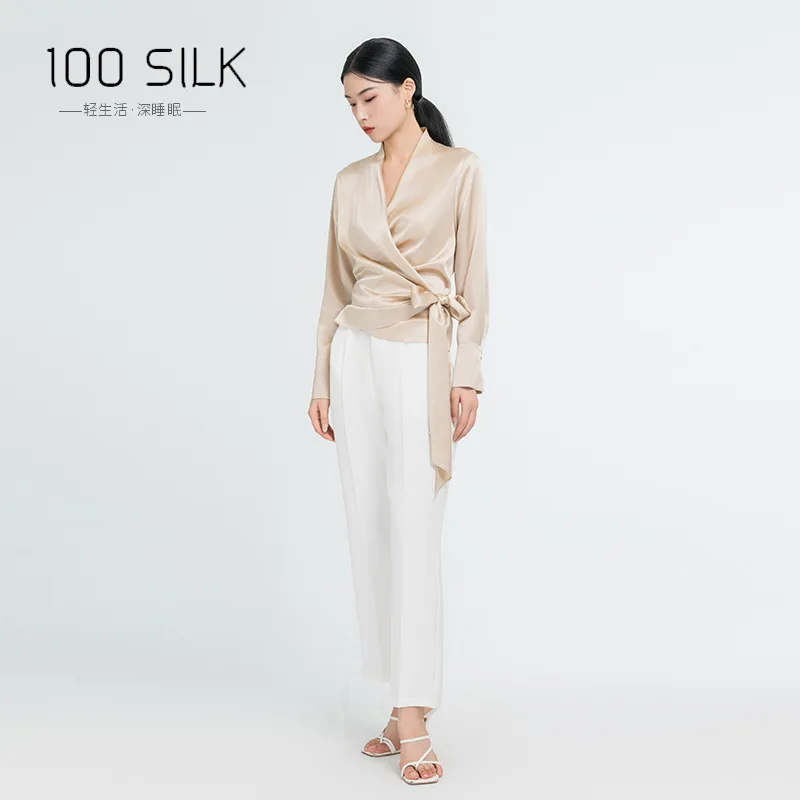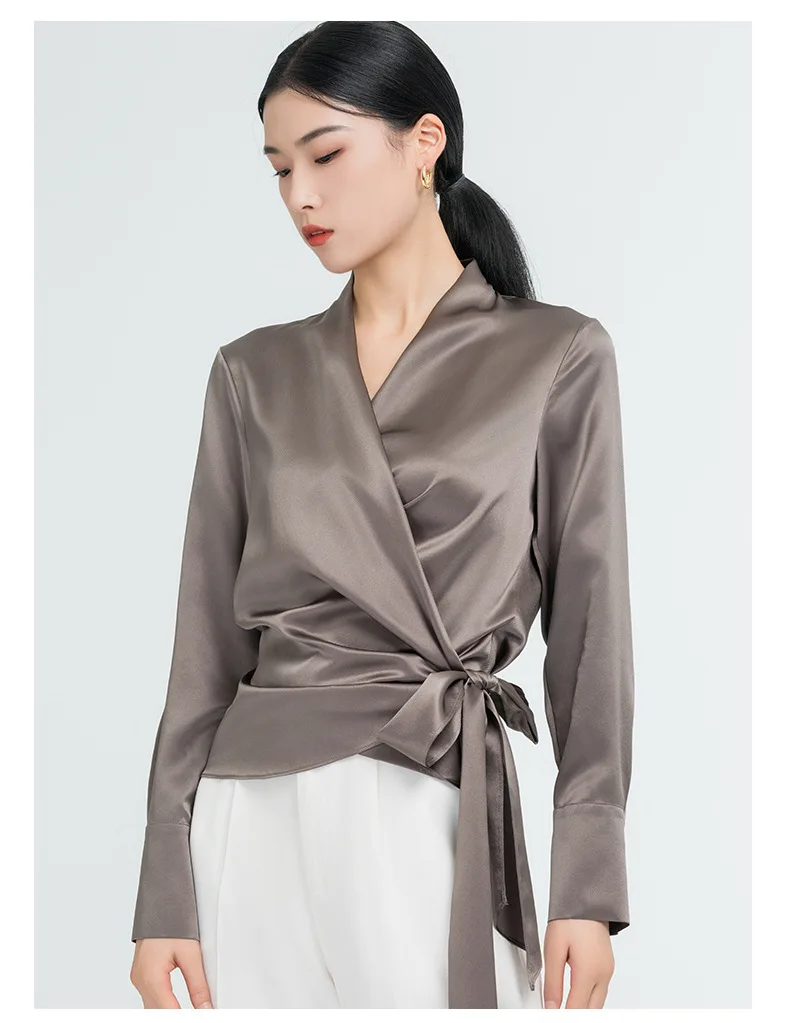 Elegant Mulberry Silk Long Sleeve Blouse Office Commute Shirt with Waist-Defining Tie Sophisticated Workwear Casual Chic Top