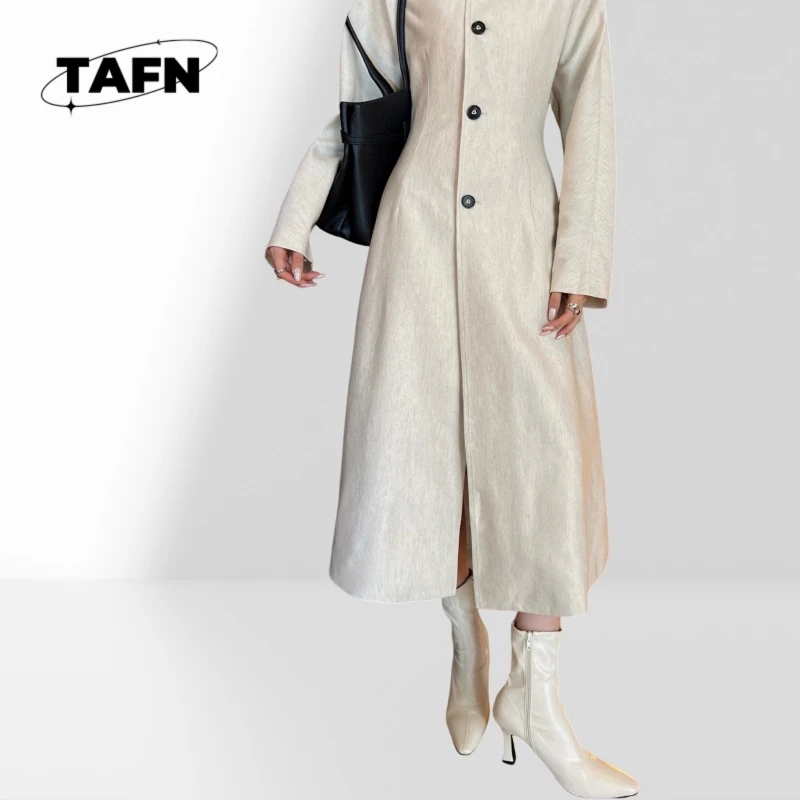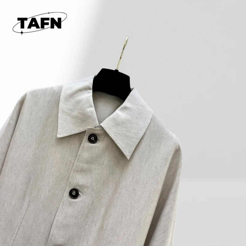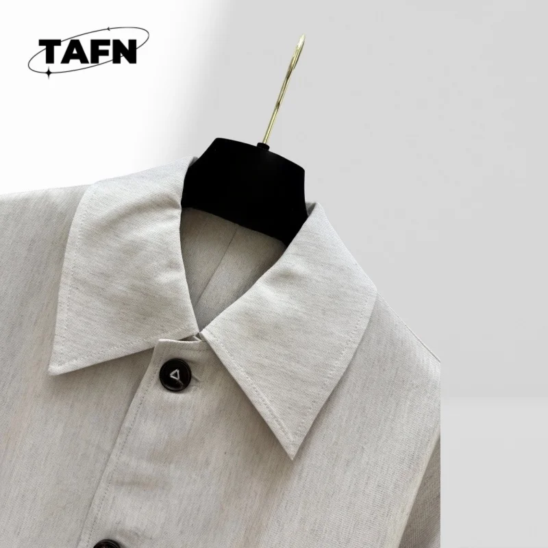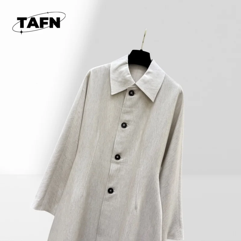 Elegant Notched Collar Trench Coat for Ladies Button Closure Windbreaker Coat Women Jacket with Large Pockets for Women AI1203