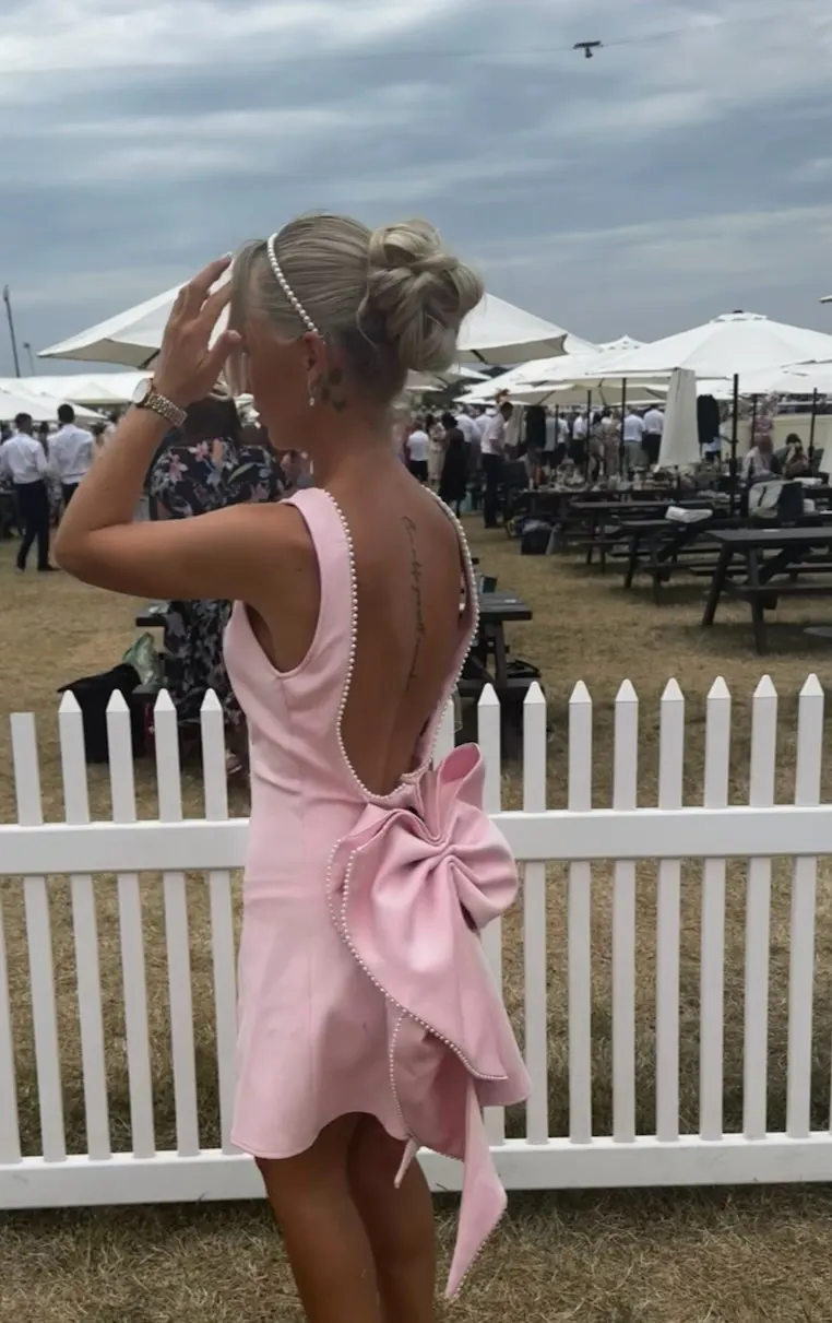 Elegant Pearl Bow Backless Sexy Mini Dress Women’s Luxury Party Short Dresses White Black Pink Birthday Evening Wedding Summer – AliExpress 200000345