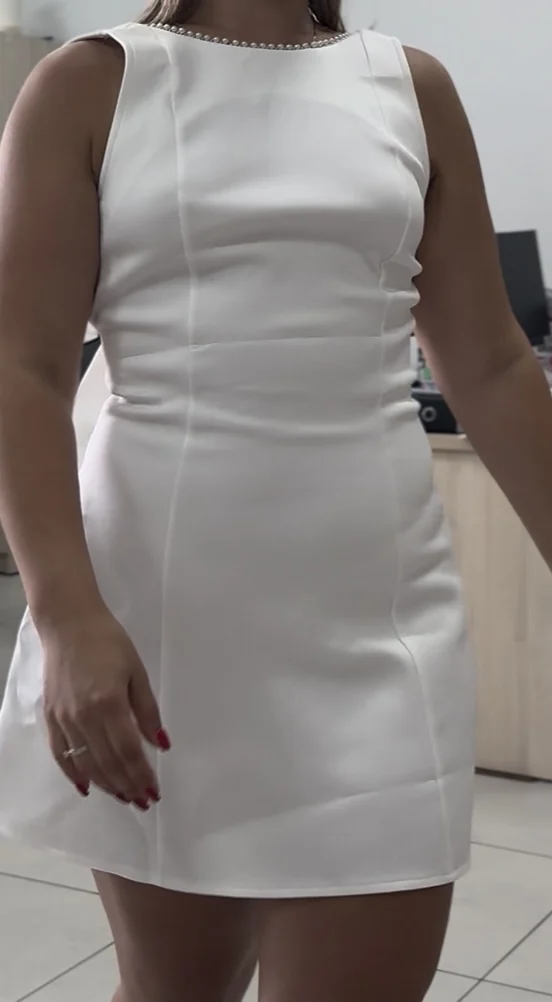 The dress did not fit, the size chart does not match. The fabric is not as thick as in the photo, the sides don’t stand up, it looks more like half the sun. The belly button with the earring stands out. Actually, another unnecessary thing. The package was late.