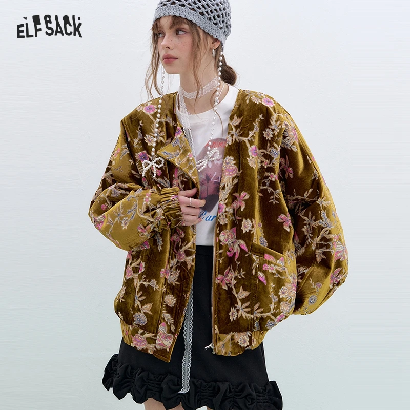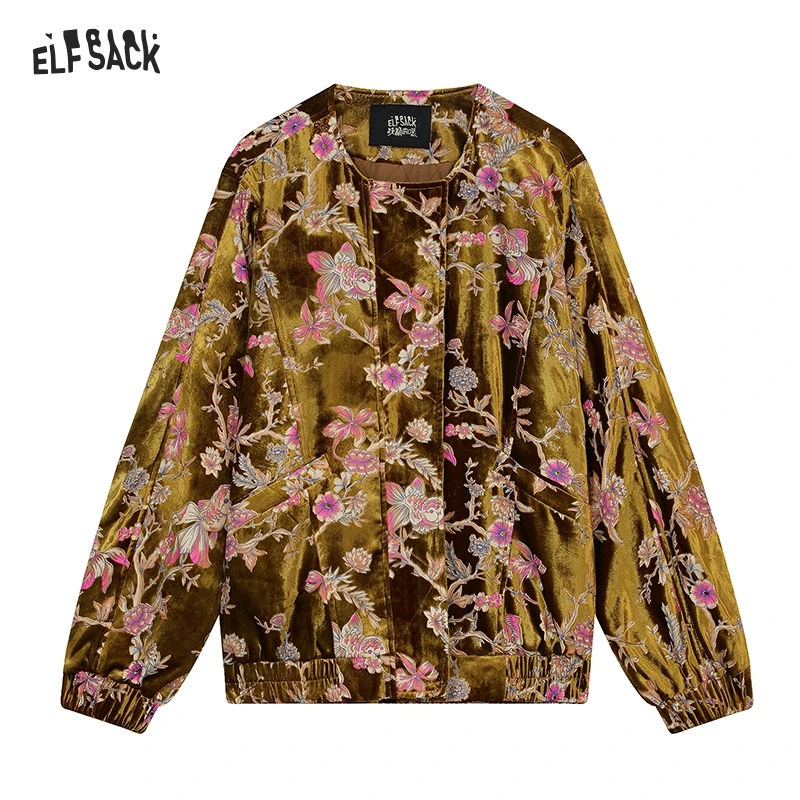 ELFSACK 2025 Spring New Arrivals Retro Elegant Velvet Short Jacket Neo-Chinese Style Goldfish Top
