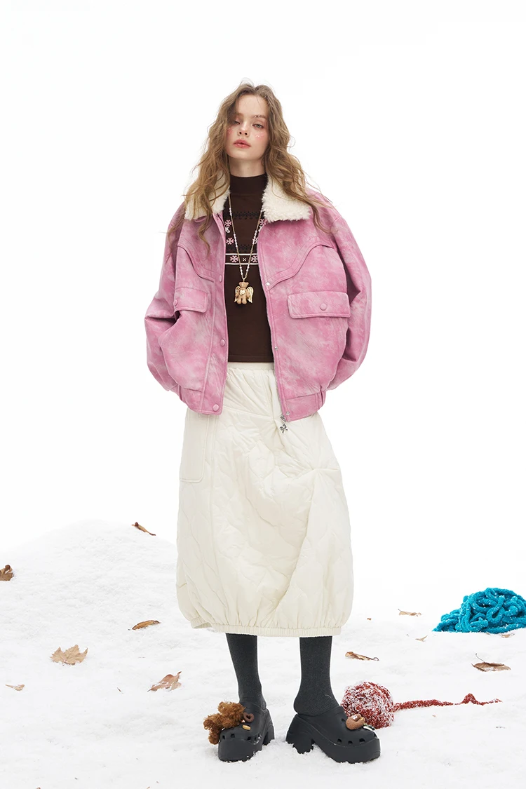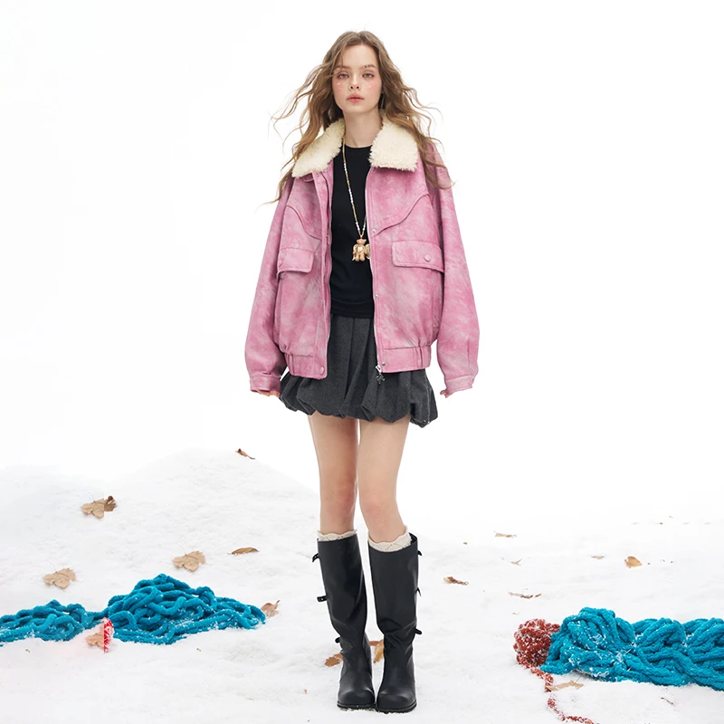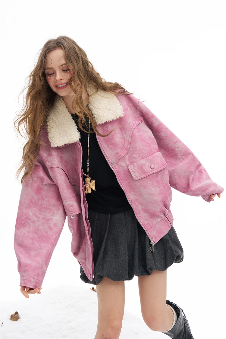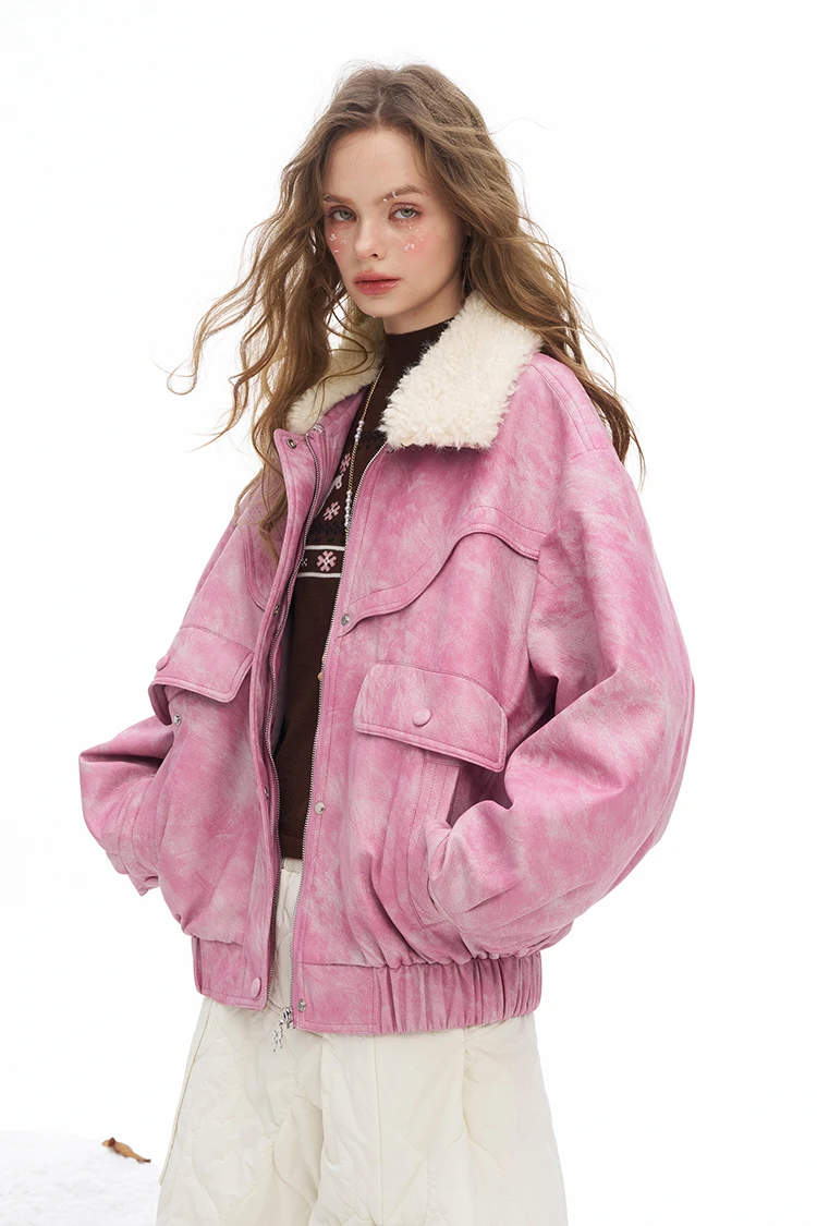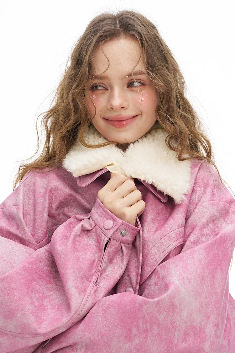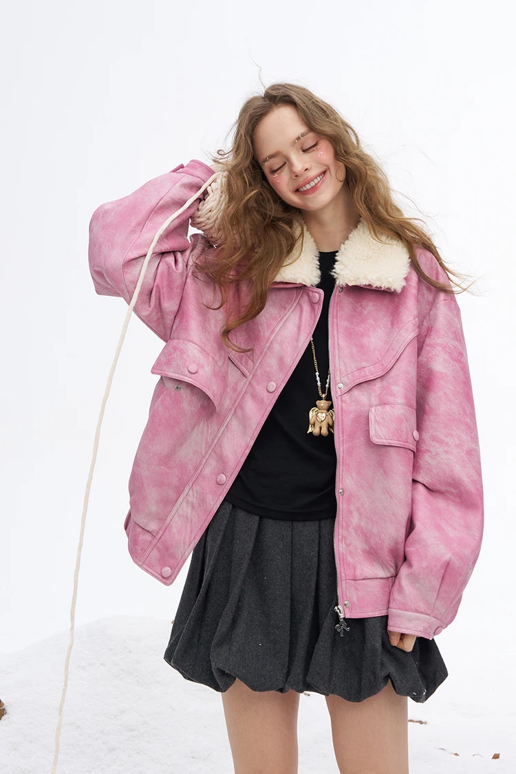 Be the first to review “ELFSACK 2025 Winter New Arrivals Y2K Bright Solid Ombre Effect Plush Lapel Faux Leather Jacket For Women” Cancel reply