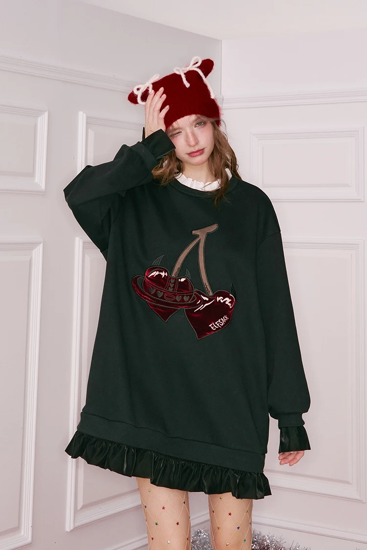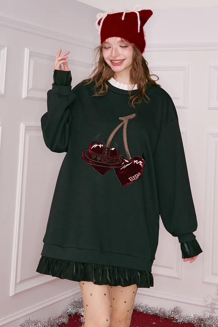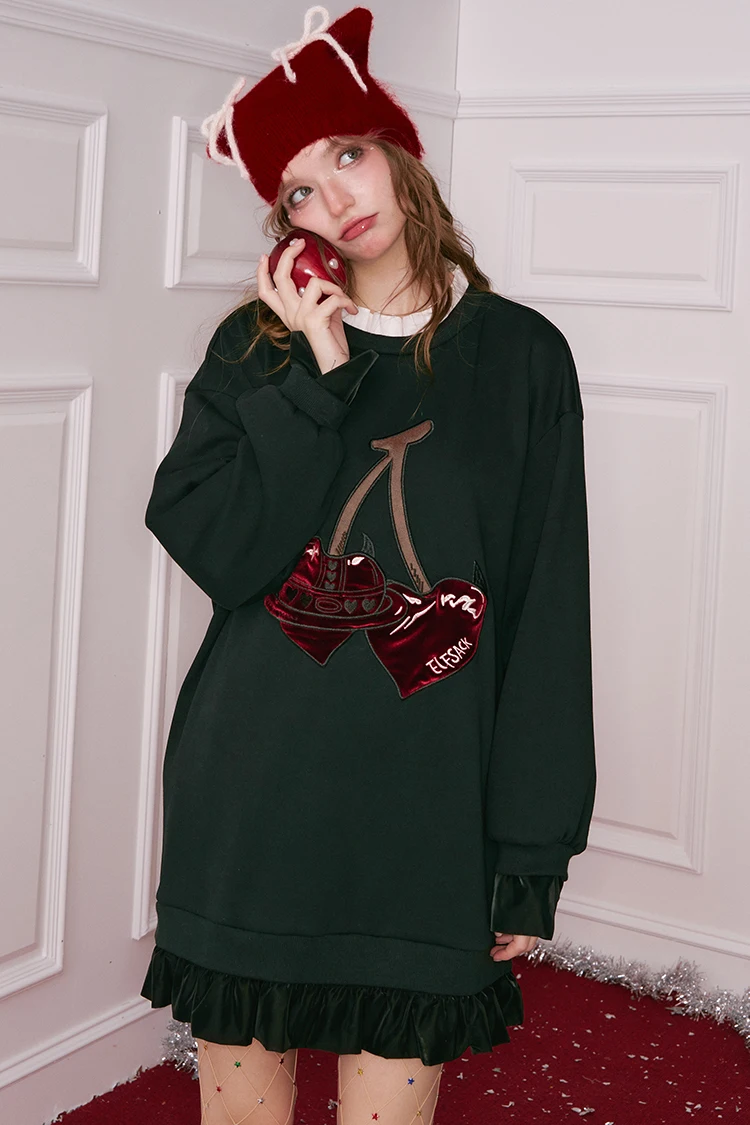 Be the first to review “ELFSACK Y2K Sweet Loose Cherry Embroidery Faux Collar Ruffle Hem Short Dress For Women” Cancel reply