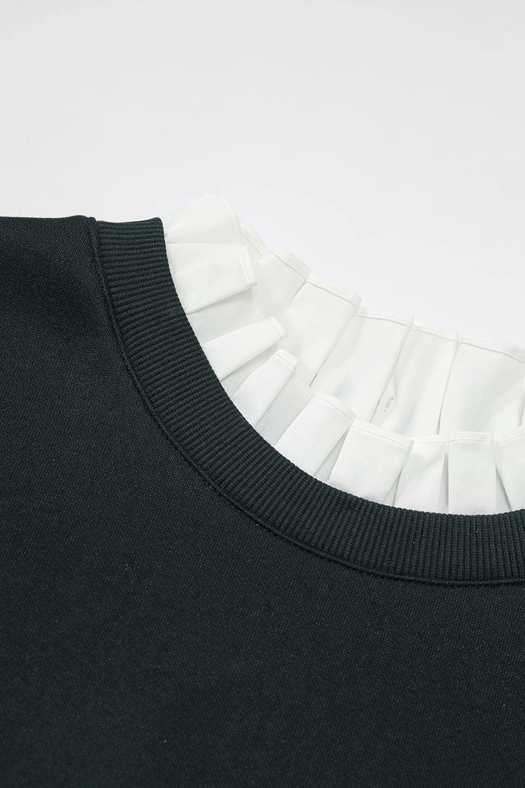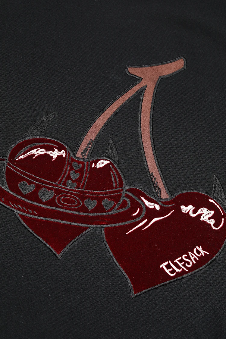 ELFSACK Y2K Sweet Loose Cherry Embroidery Faux Collar Ruffle Hem Short Dress For Women